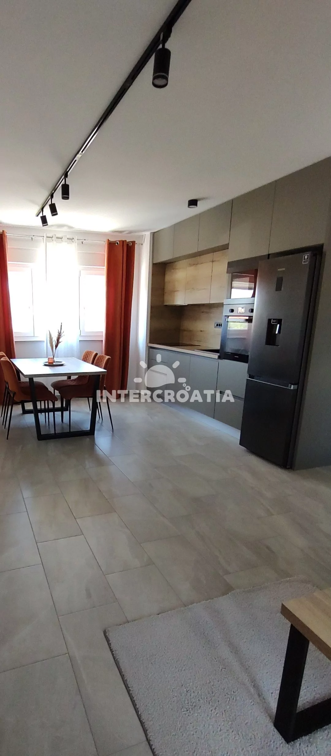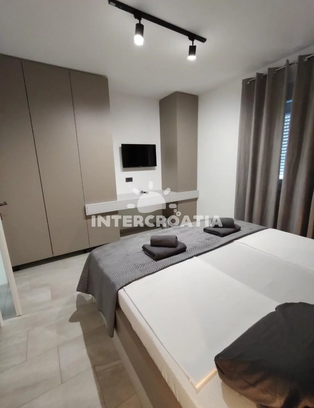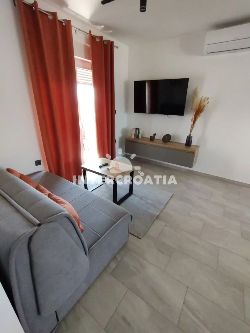 Apartmán (45 m2) s balkonem, výhledem do dvora a na moře se nachází v 1. patře domu. Apartmán má 1 ložnici a je vhodný pro 2 až 4 osoby. Obývací pokoj je spojený s kuchyní. Kuchyňská linka je vybavena sklokeramickou varnou deskou, vestavěnou troubou, myčkou na nádobí, mikrovlnnou troubou, rychlovarnou konvicí, nádobím a lednicí s mrazákem. Obývací pokoj s jídelním stolem, pohovkou (rozložitelná na extra lůžko pro 2 osoby), televizí, klimatizací a vstupem na balkon. Ložnice s jedním dvoulůžkem a sejfem. Koupelna se sprchovým koutem, umyvadlem, pračkou, fénem a wc. Hostům je k dispozici parkování u objektu zdarma.