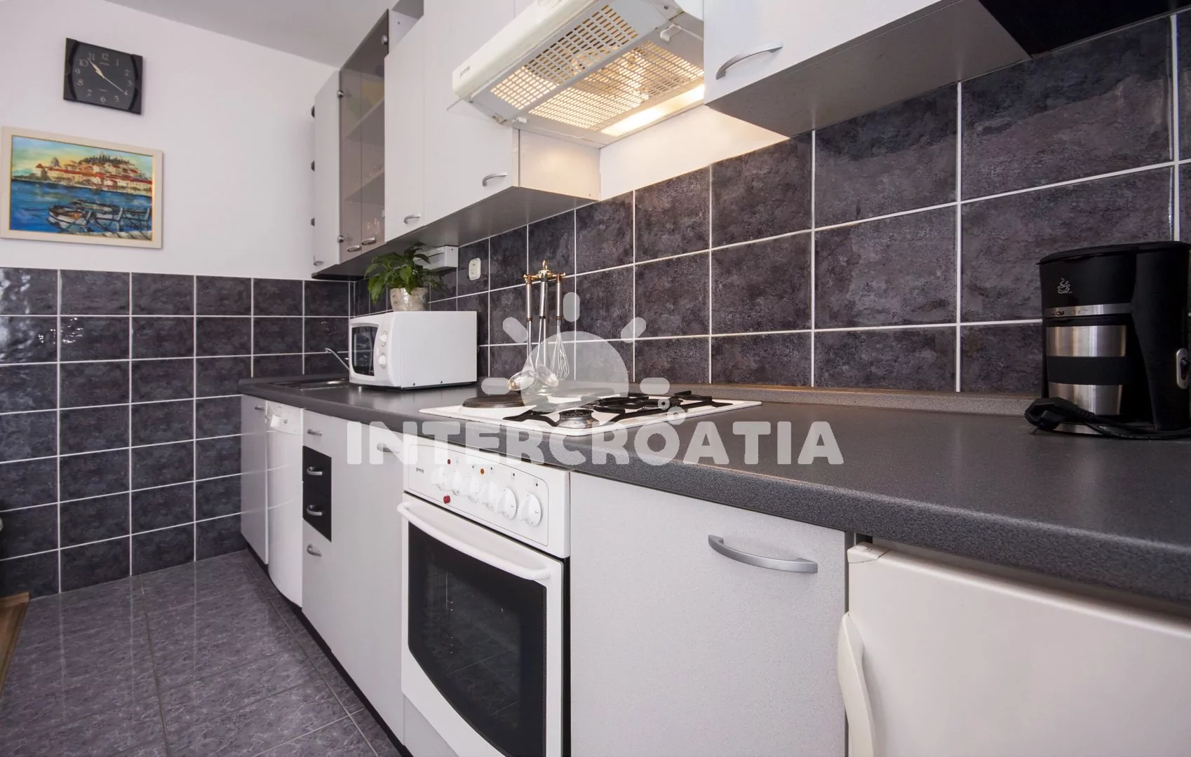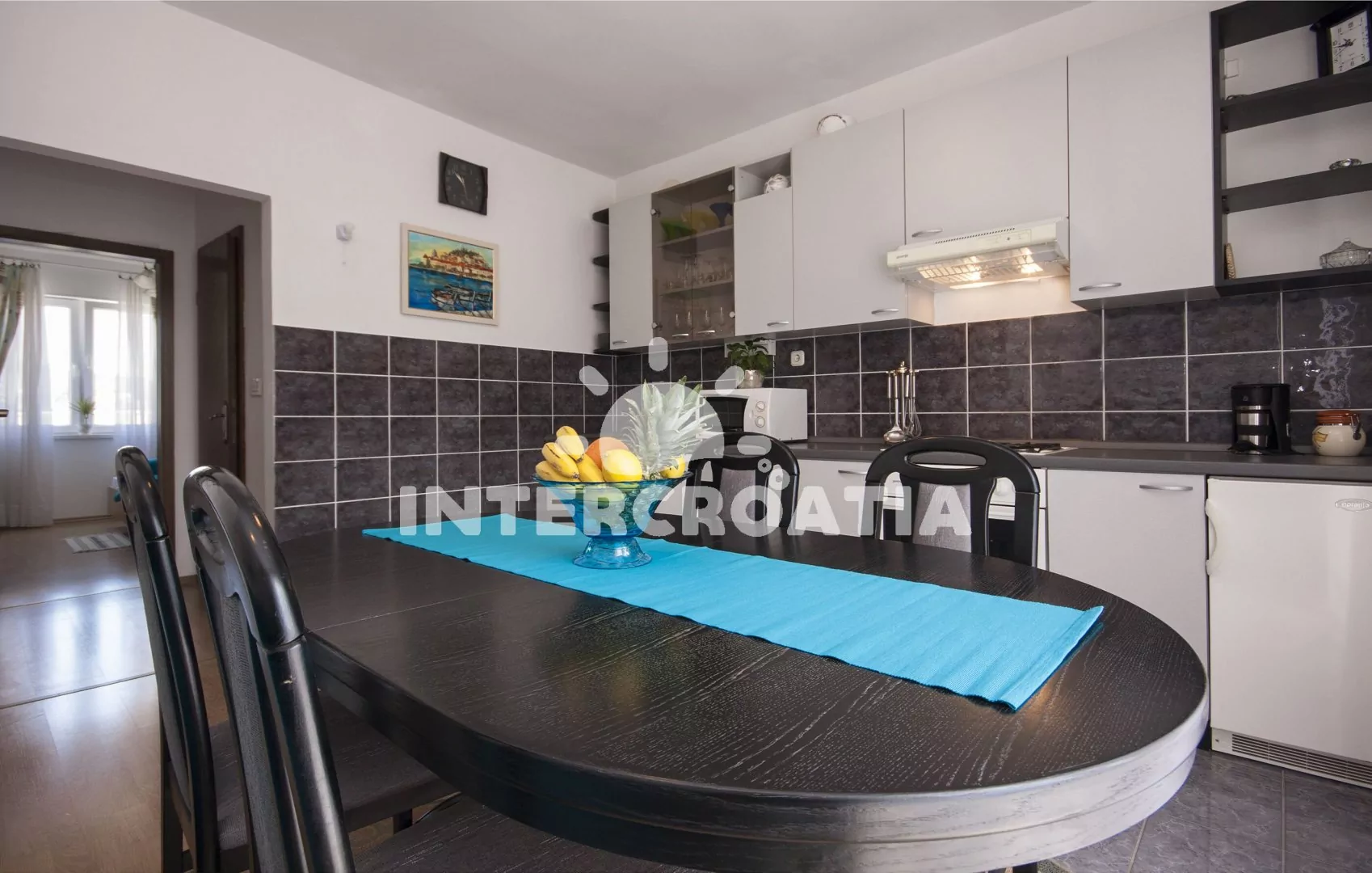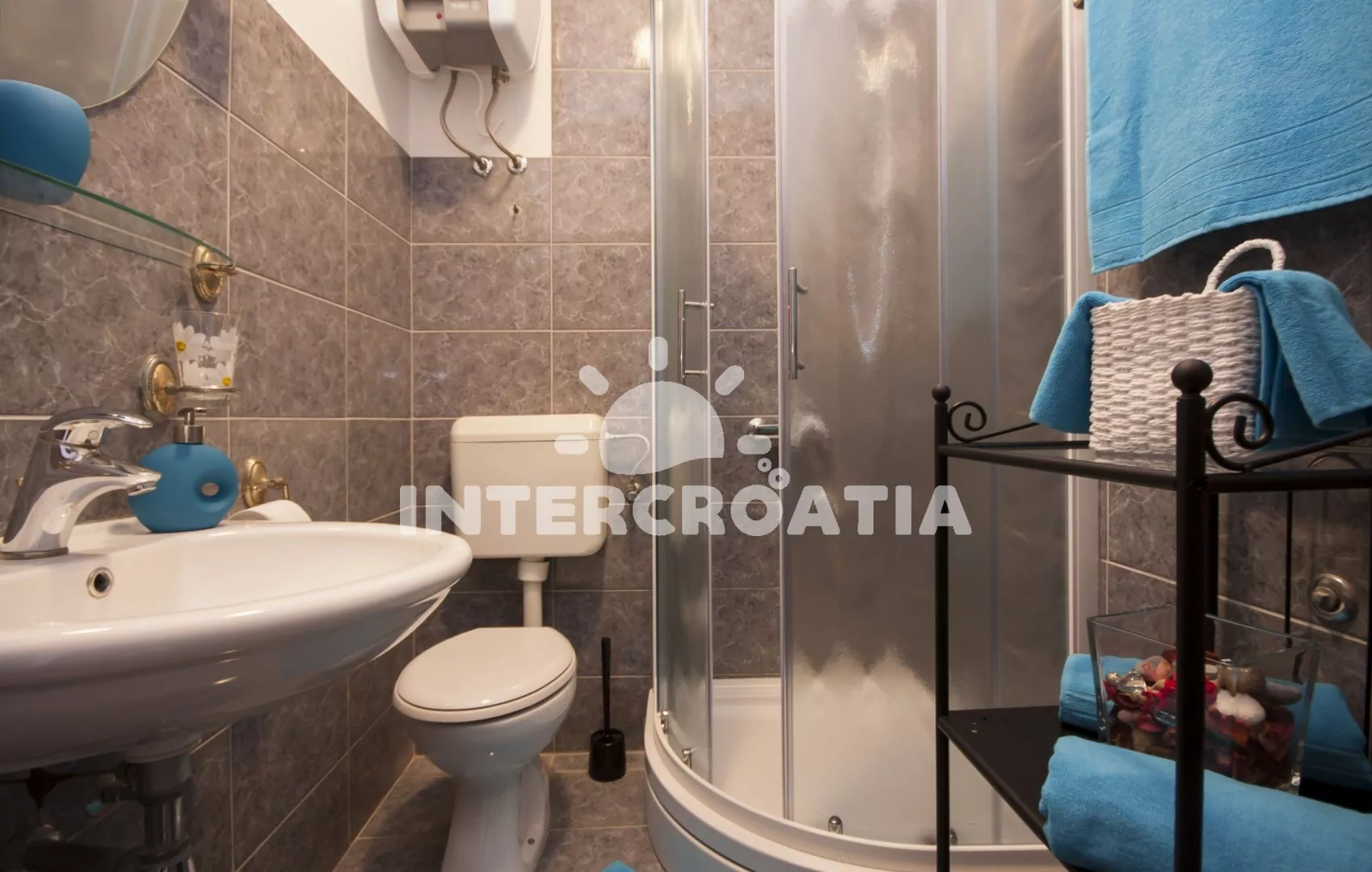 Vzdálenosti: Moře a pláž 60 m (kotviště s loďkami), betonová pláž 210 m, oblázková pláž s betonovými deskami "Zamalin" 400 m, centrum, obchod, banka, restaurace, bar, ambulance, směnárna a veřejná doprava 50 m, pošta a potápění 20 m, lékárna a přístav 500 m, čerpací stanice 4 km, park Plitvice 37 km, muzeum 19 km, letiště (Zadar) 49 km, trajekt (Split) 60 km.
