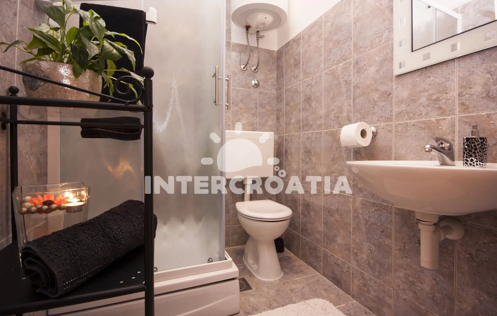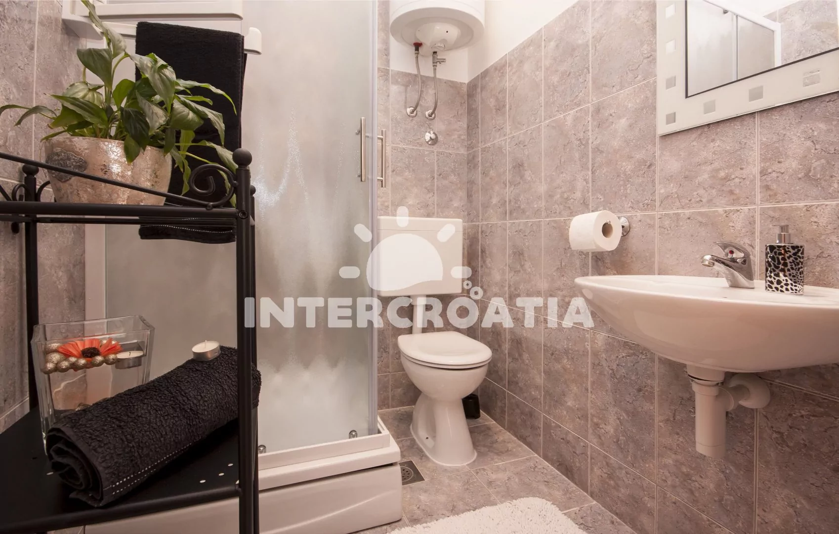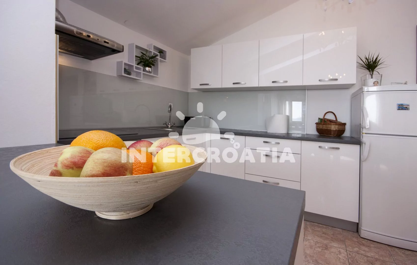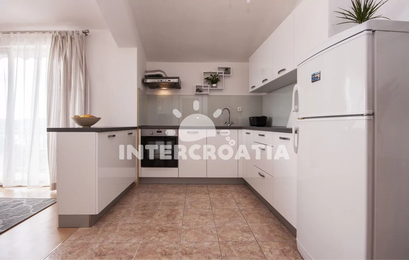 Vzdálenosti: Moře a pláž 60 m (kotviště s loďkami), betonová pláž 210 m, oblázková pláž s betonovými deskami "Zamalin" 400 m, centrum, obchod, banka, restaurace, bar, ambulance, směnárna a veřejná doprava 50 m, pošta a potápění 20 m, lékárna a přístav 500 m, čerpací stanice 4 km, park Plitvice 37 km, muzeum 19 km, letiště (Zadar) 49 km, trajekt (Split) 60 km.