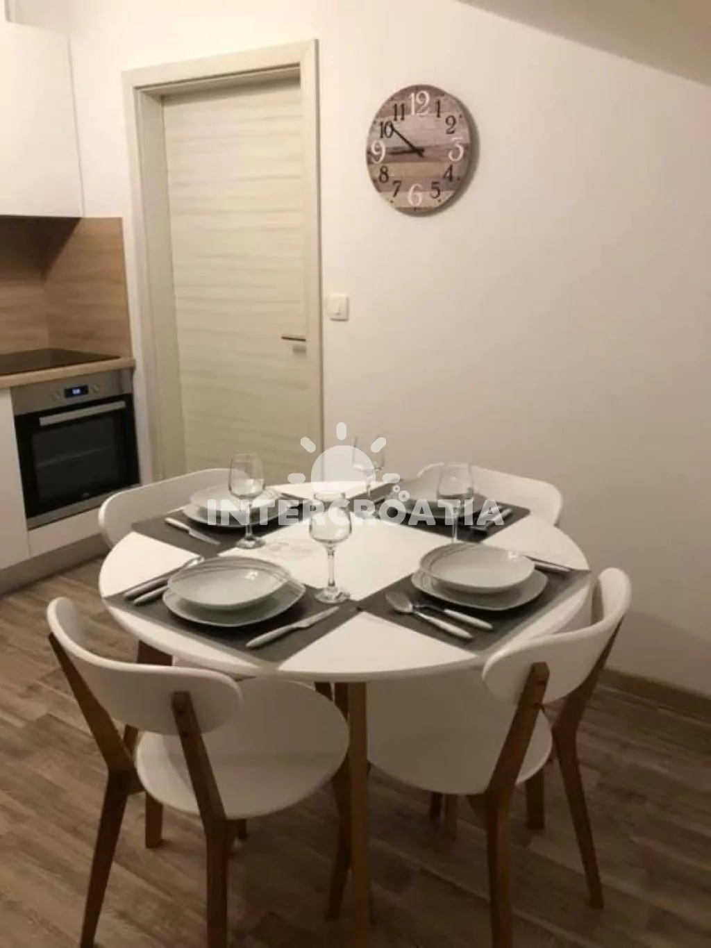 Apartmán (38 m2) s balkonem a venkovním posezením se nachází ve 2. patře domu. Apartmán má 1 ložnici a je vhodný pro 2 až 4 osoby. Obývací pokoj je spojený s kuchyní. Kuchyňská linka je vybavena varnou deskou, vestavěnou troubou, myčkou na nádobí, mikrovlnnou troubou, rychlovarnou konvicí, kávovarem, toustovačem, nádobím a lednicí s mrazákem. Obývací pokoj s jídelním stolem, pohovkou (rozložitelná na extra lůžko pro 2 osoby), televizí se satelitním programem, klimatizací a vstupem na balkon. Ložnice s dvoulůžkem a klimatizací. Koupelna se sprchovým koutem, umyvadlem, fénem a wc. Hostům je k dispozici parkování u domu zdarma.