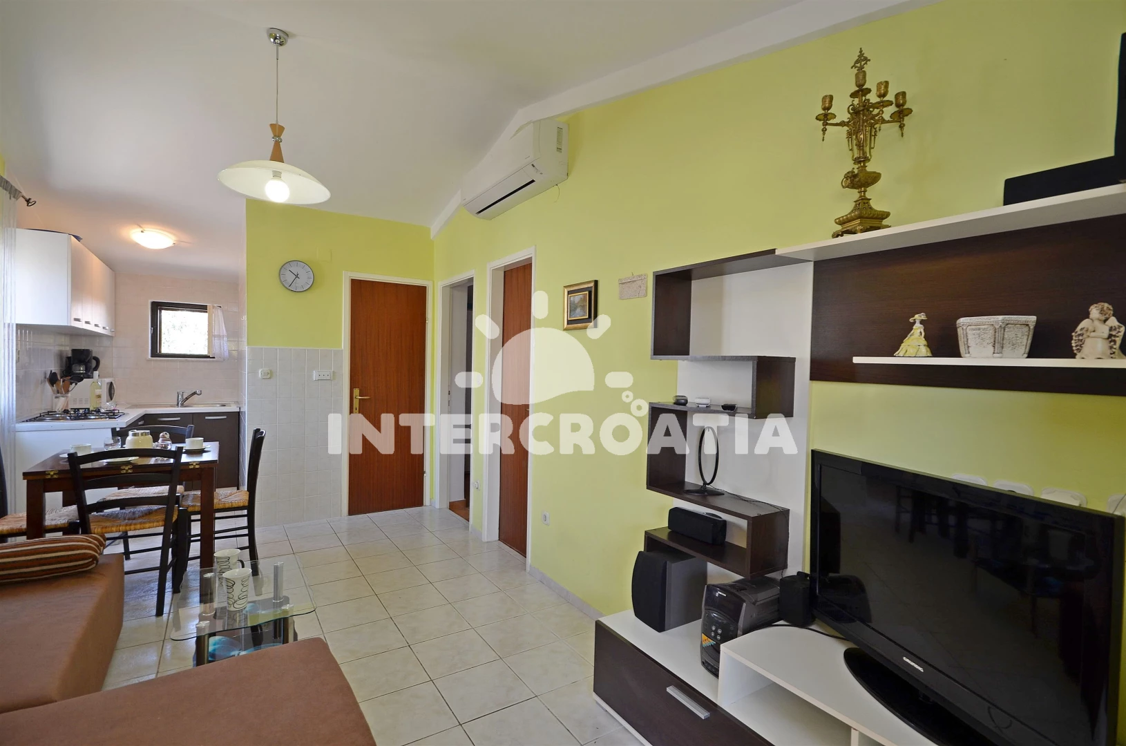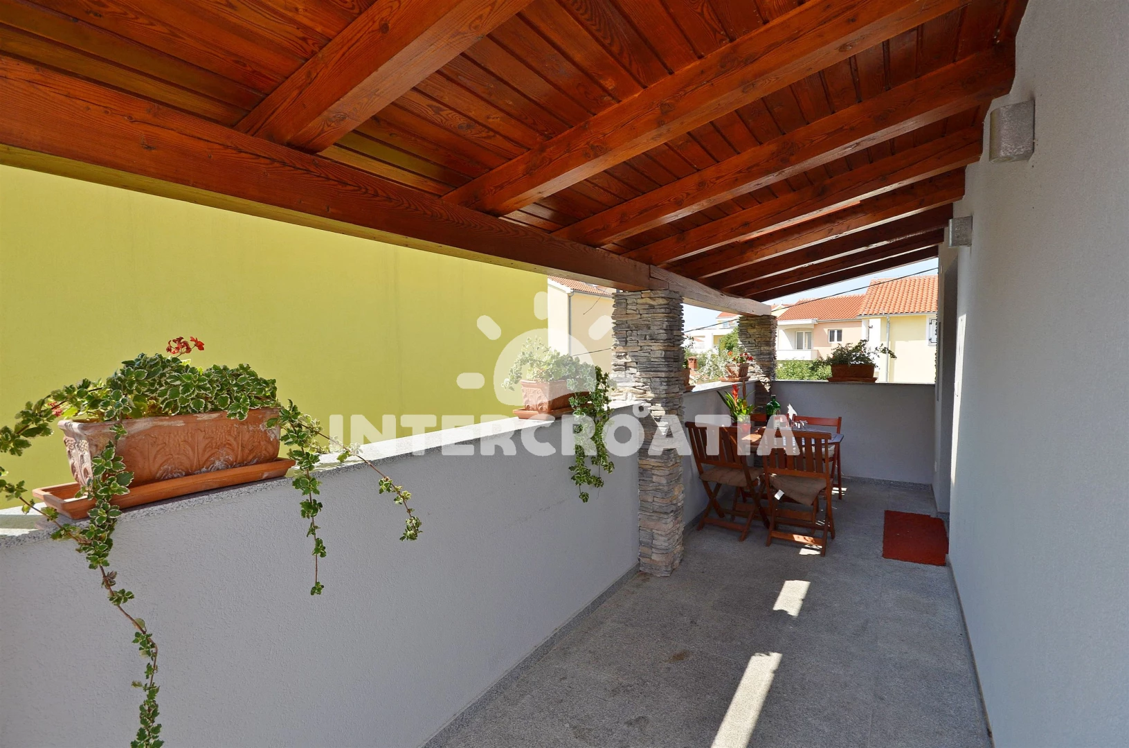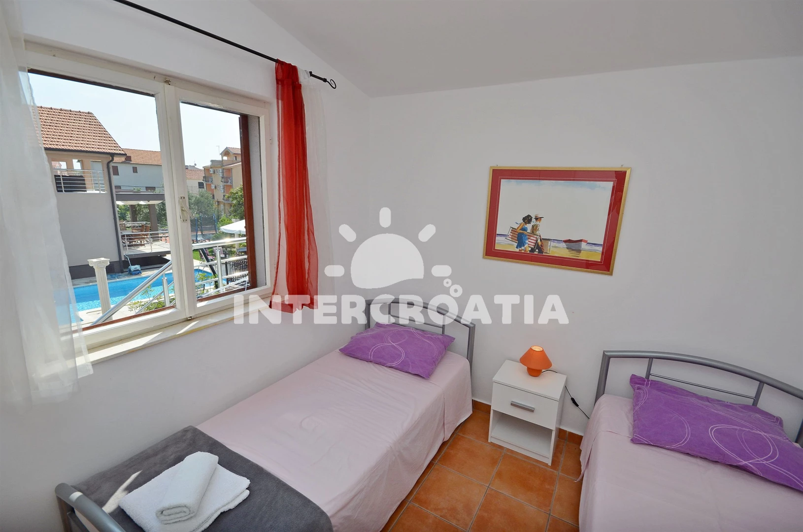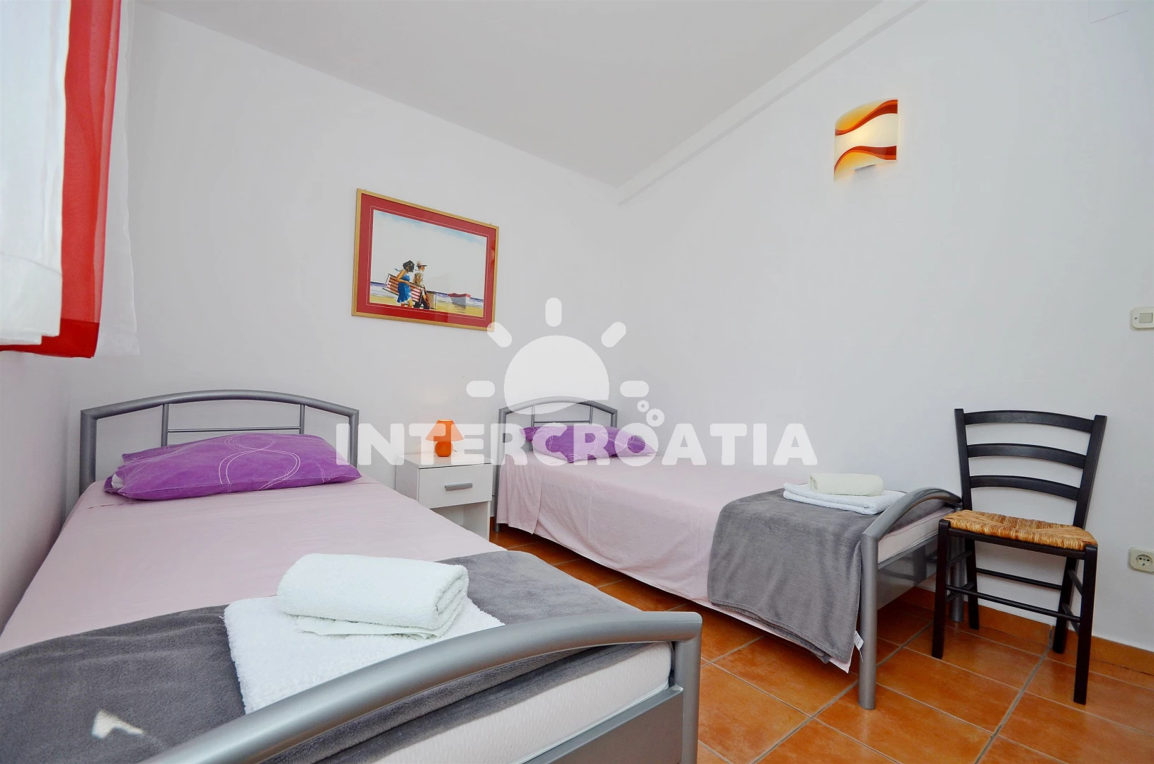 Vzdálenosti: Moře 400 m, pláž 900 m (oblázková a betonové desky), centrum 400 m, supermarket 400 m, bar 500 m, restaurace 500 m, banka 500 m, pošta 500 m, lékárna 500 m, ambulance 500 m, směnárna 500 m, veřejná doprava 500 m, čerpací stanice 3,5 km, letiště (Zadar) 60 km,