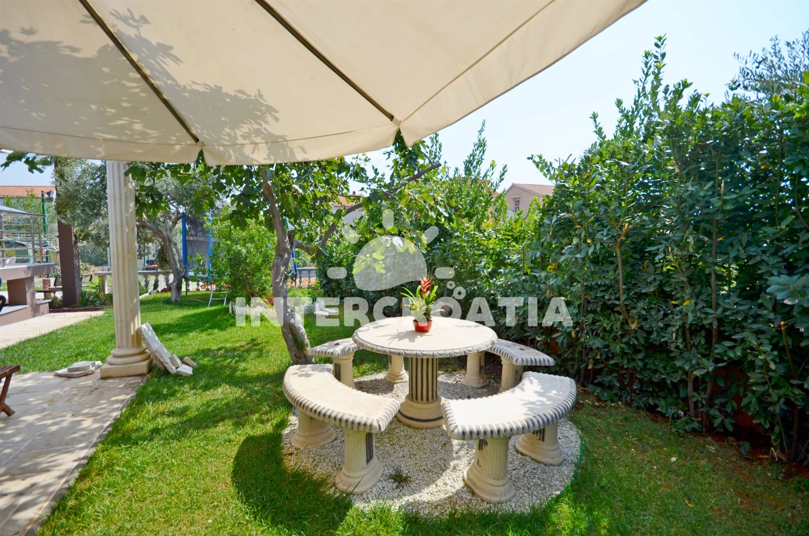 Apartmán se nachází 900 m od moře a pláže. Pláž je oblázková a betonové desky. Apartmán disponuje bazénem s lehátky pro ubytované hosty.