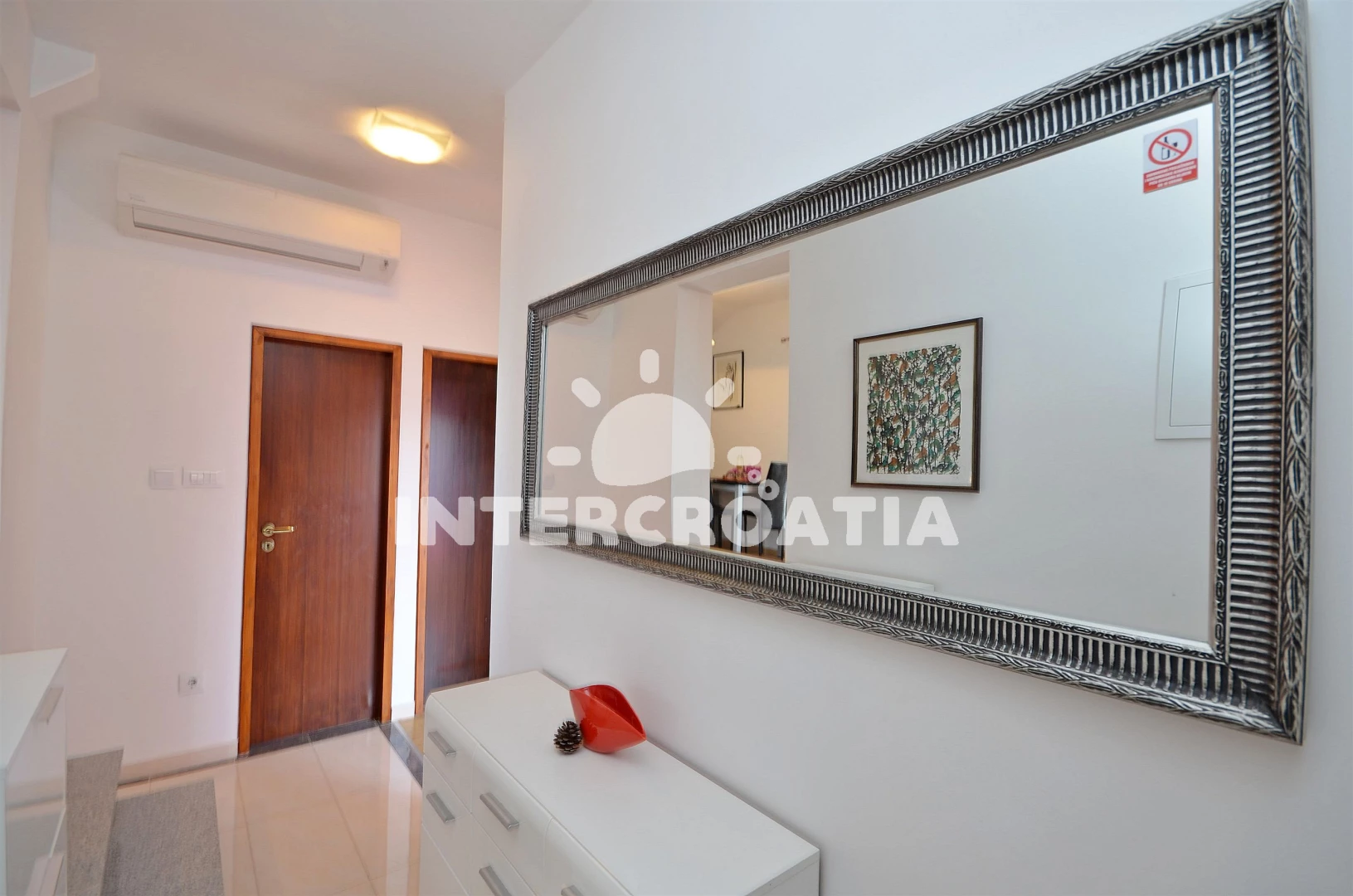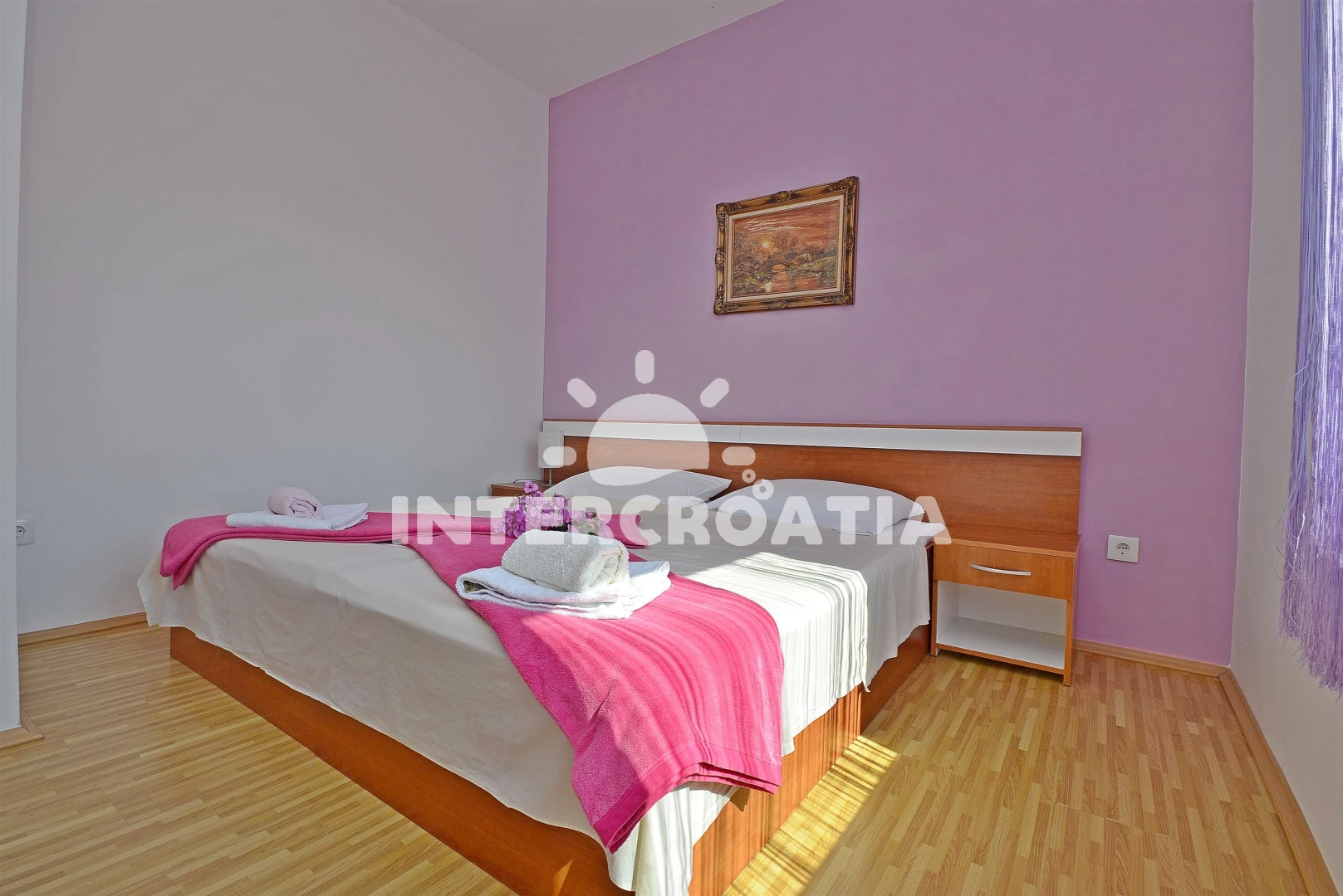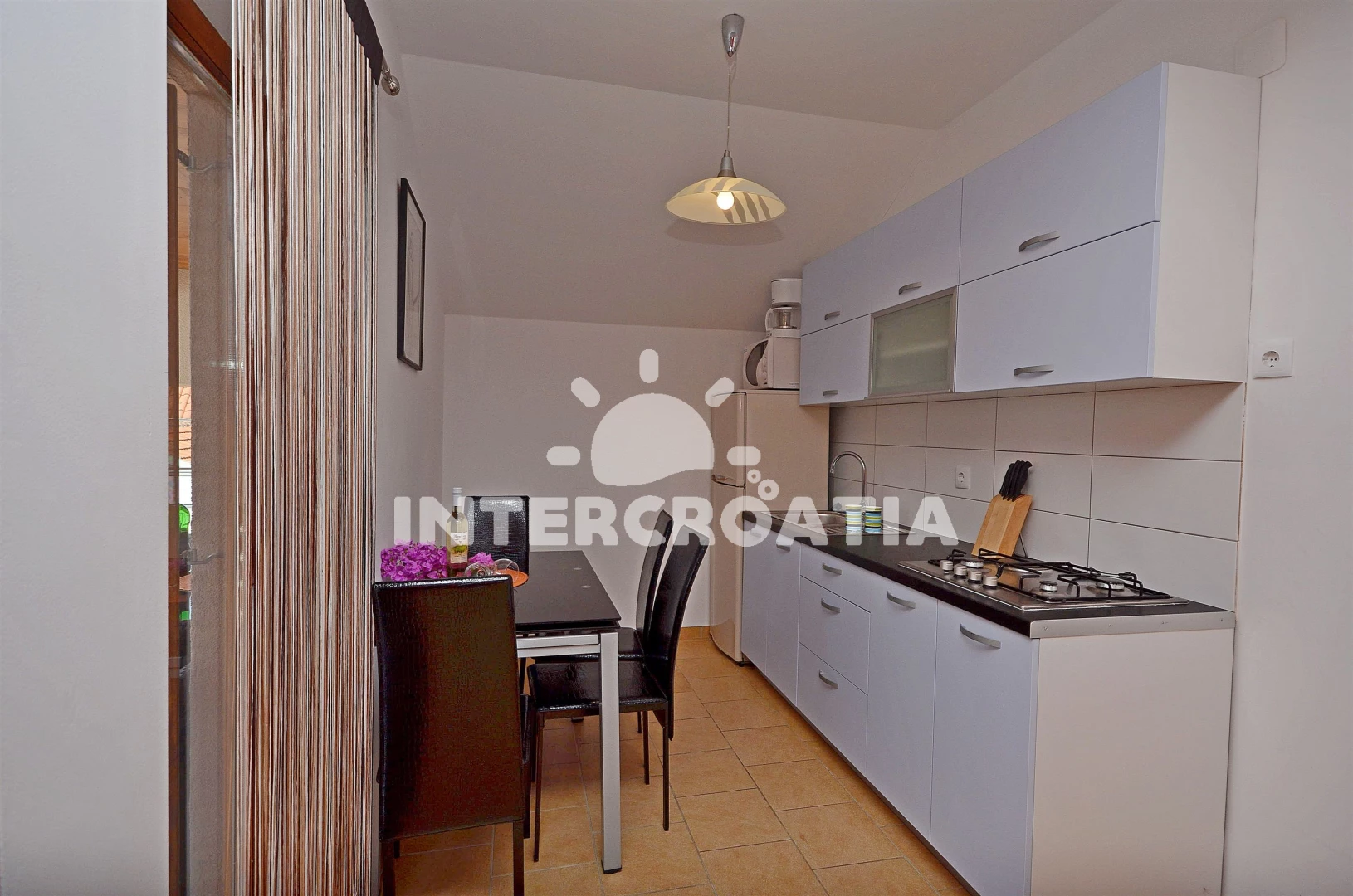 Vzdálenosti: Moře 400 m, pláž 900 m (oblázková a betonové desky), centrum 400 m, supermarket 400 m, bar 500 m, restaurace 500 m, banka 500 m, pošta 500 m, lékárna 500 m, ambulance 500 m, směnárna 500 m, veřejná doprava 500 m, čerpací stanice 3,5 km, letiště (Zadar) 60,0 km,