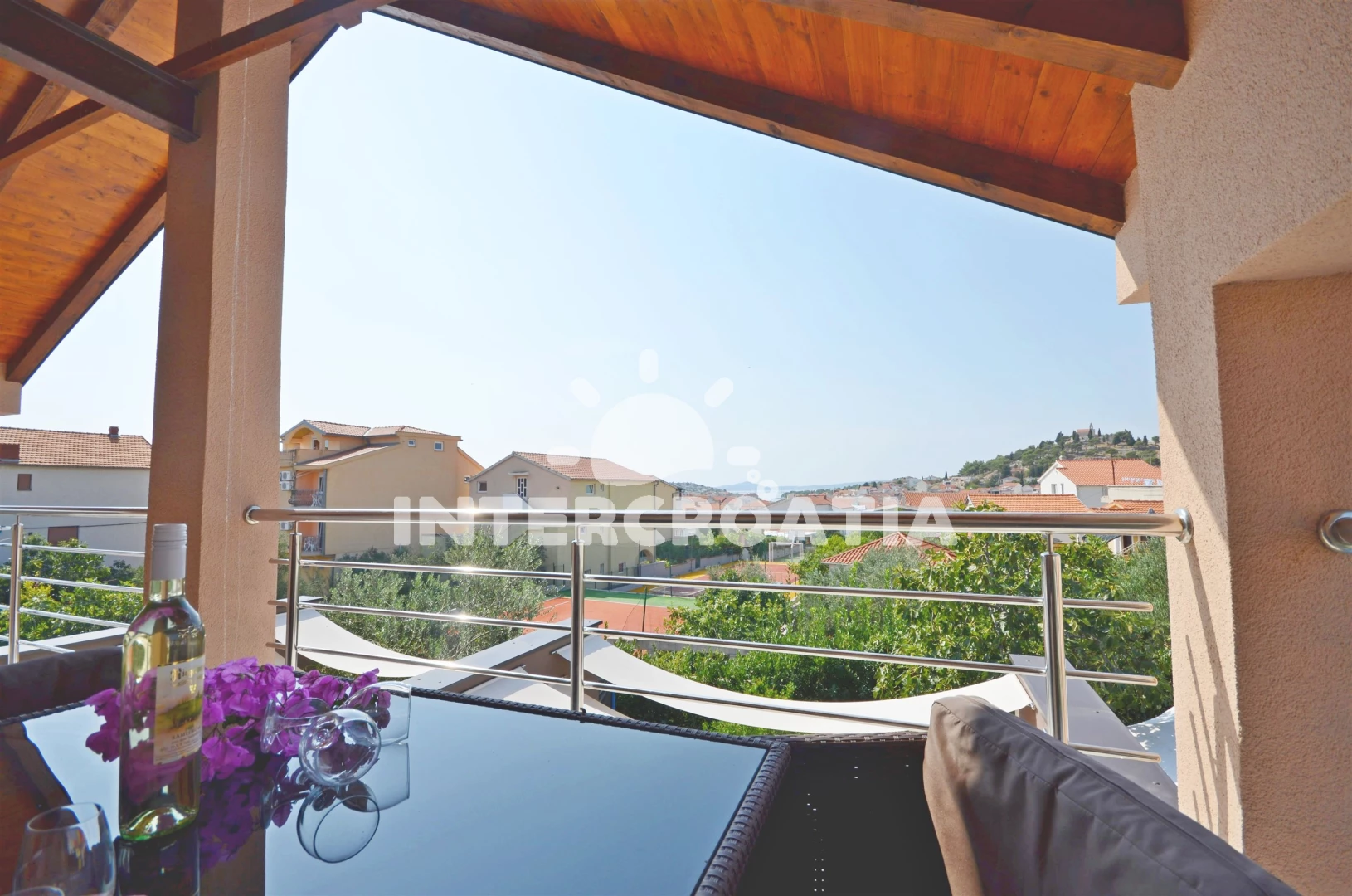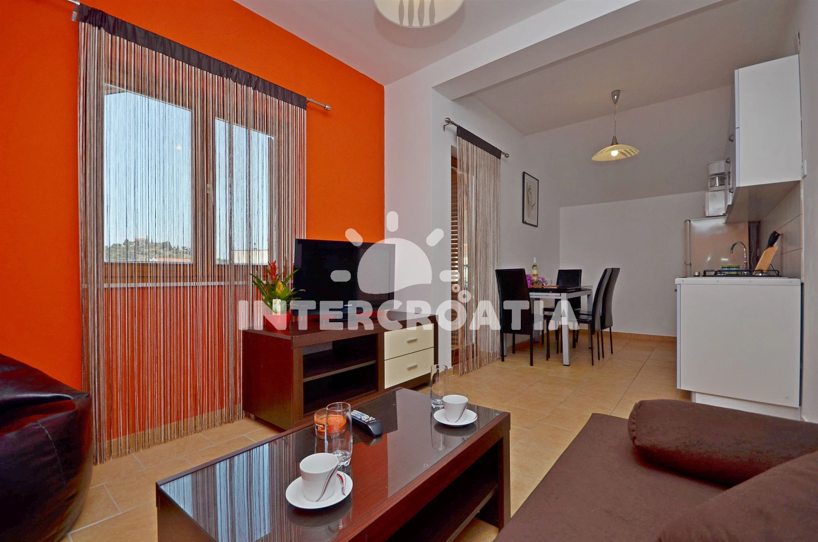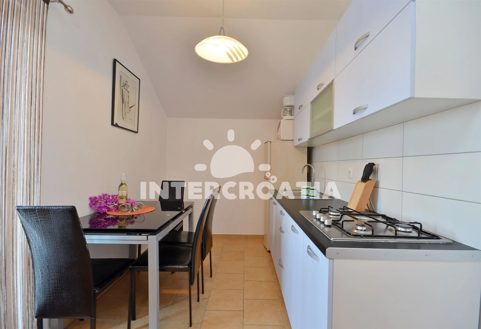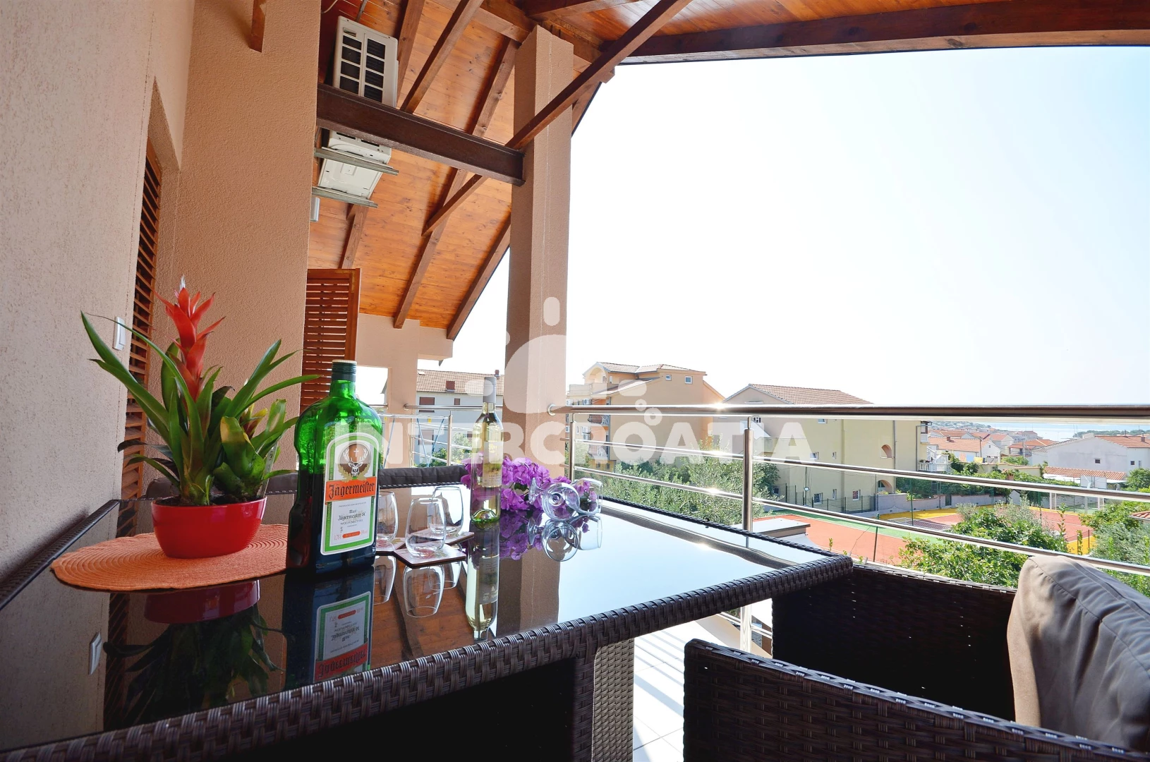 Vzdálenosti: Moře 400 m, pláž 900 m (oblázková a betonové desky), centrum 400 m, supermarket 400 m, bar 500 m, restaurace 500 m, banka 500 m, pošta 500 m, lékárna 500 m, ambulance 500 m, směnárna 500 m, veřejná doprava 500 m, čerpací stanice 3,5 km, letiště (Zadar) 60,0 km,