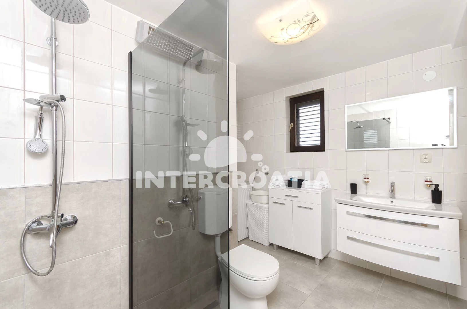 Vzdálenosti: Moře 200 m, pláž 600 m (oblázková a betonové desky), supermarket 120 m, směnárna 120 m, banka 130 m, centrum 200 m, marina 200 m, bar 200 m, restaurace 200 m, lékárna 500 m, park Plitvice 25 km, letiště (Zadar) 65 km, trajekt (Zadar) 65 km,