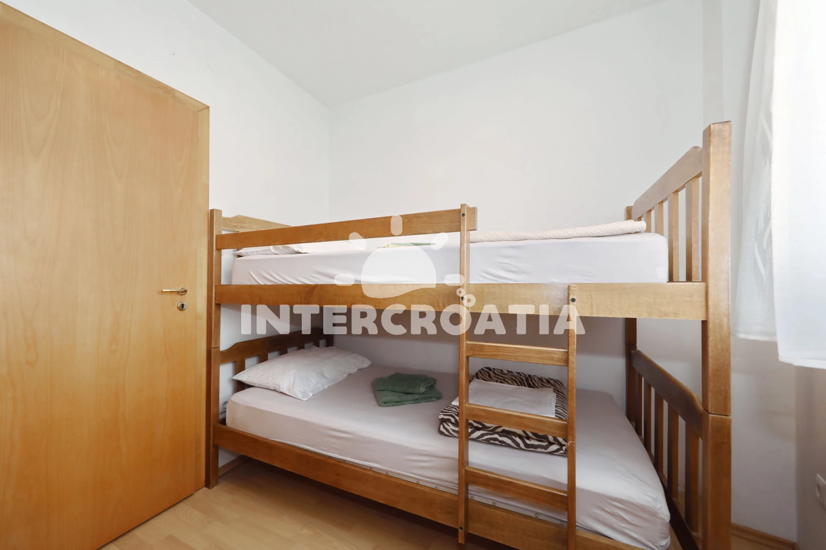 Apartmán (52 m2) s výhledem na moře. Nachází se v 1. patře objektu. Apartmán má 2 ložnice a je vhodný pro až 4 osoby. Kuchyňská linka je vybavena varnou deskou, mikrovlnnou troubou, nádobím, lednicí,…