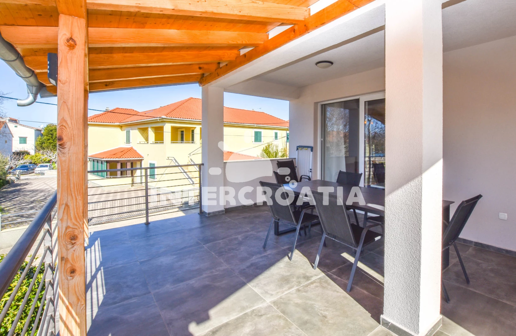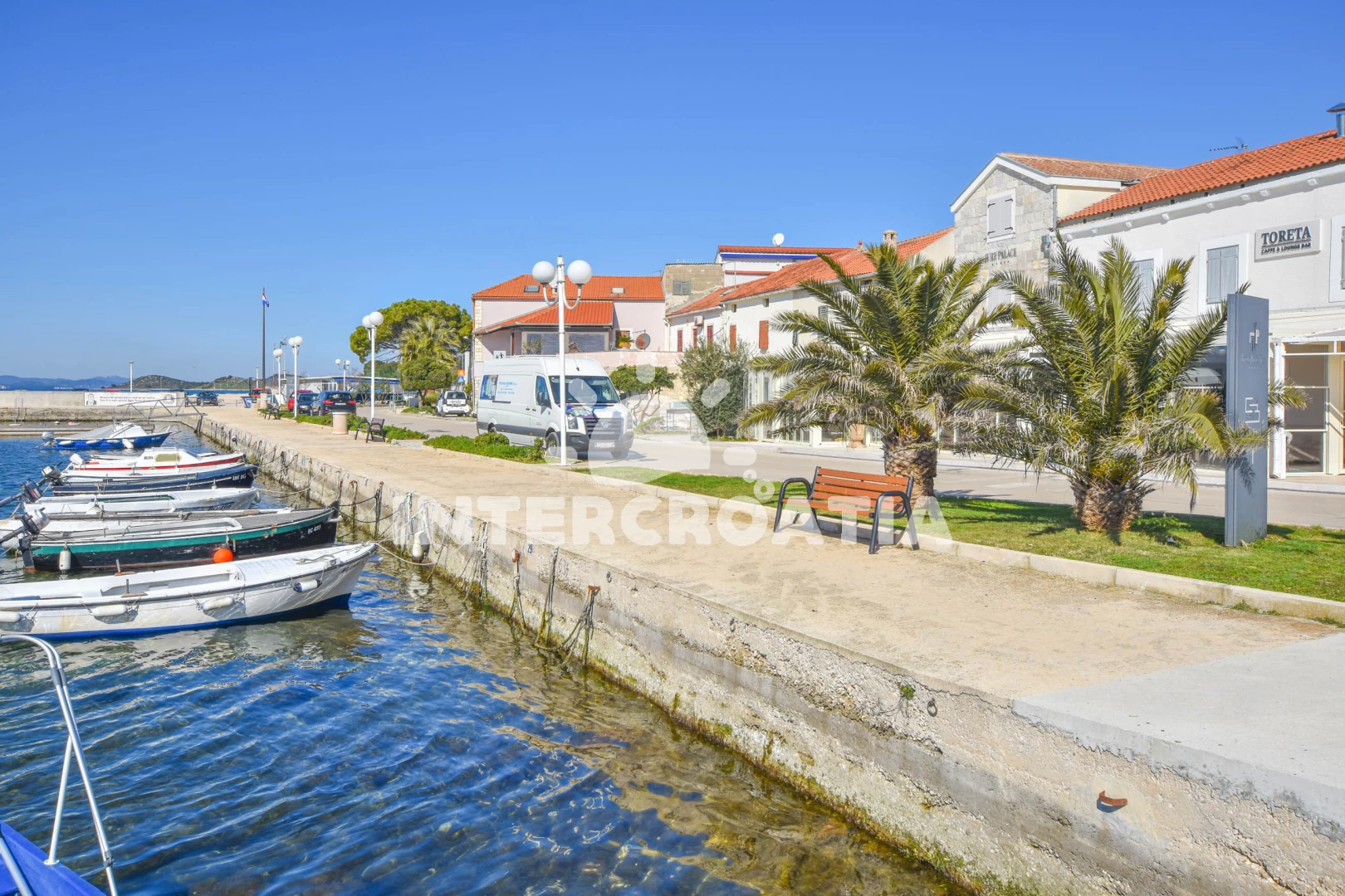 Vzdálenosti: Moře 50 m, pláž 50 m (oblázky), centrum 100 m, restaurace 120 m, bar 120 m, supermarket 200 m, veřejná doprava 200 m, směnárna 200 m, lékárna 700 m, ambulance 800 m, pošta 1,5 km, čerpací stanice 5 km, banka 7 km, marina 7 km, trajekt (Biograd) 10 km, park Plitvice 18 km, letiště (Zadar) 20 km,