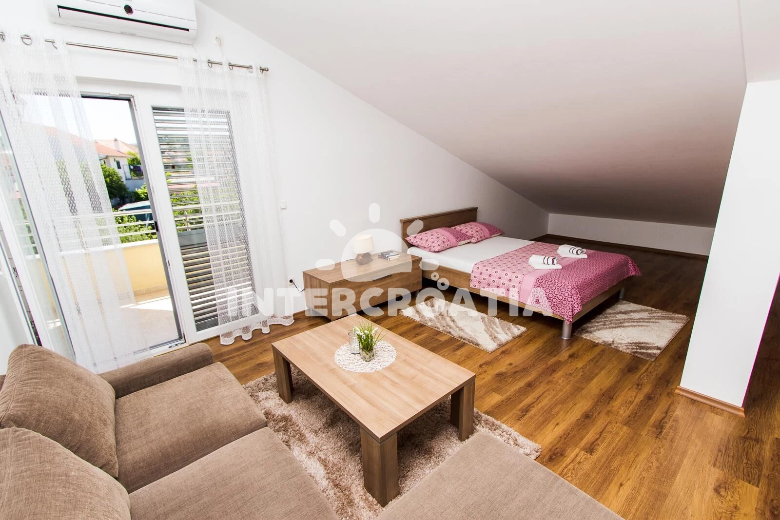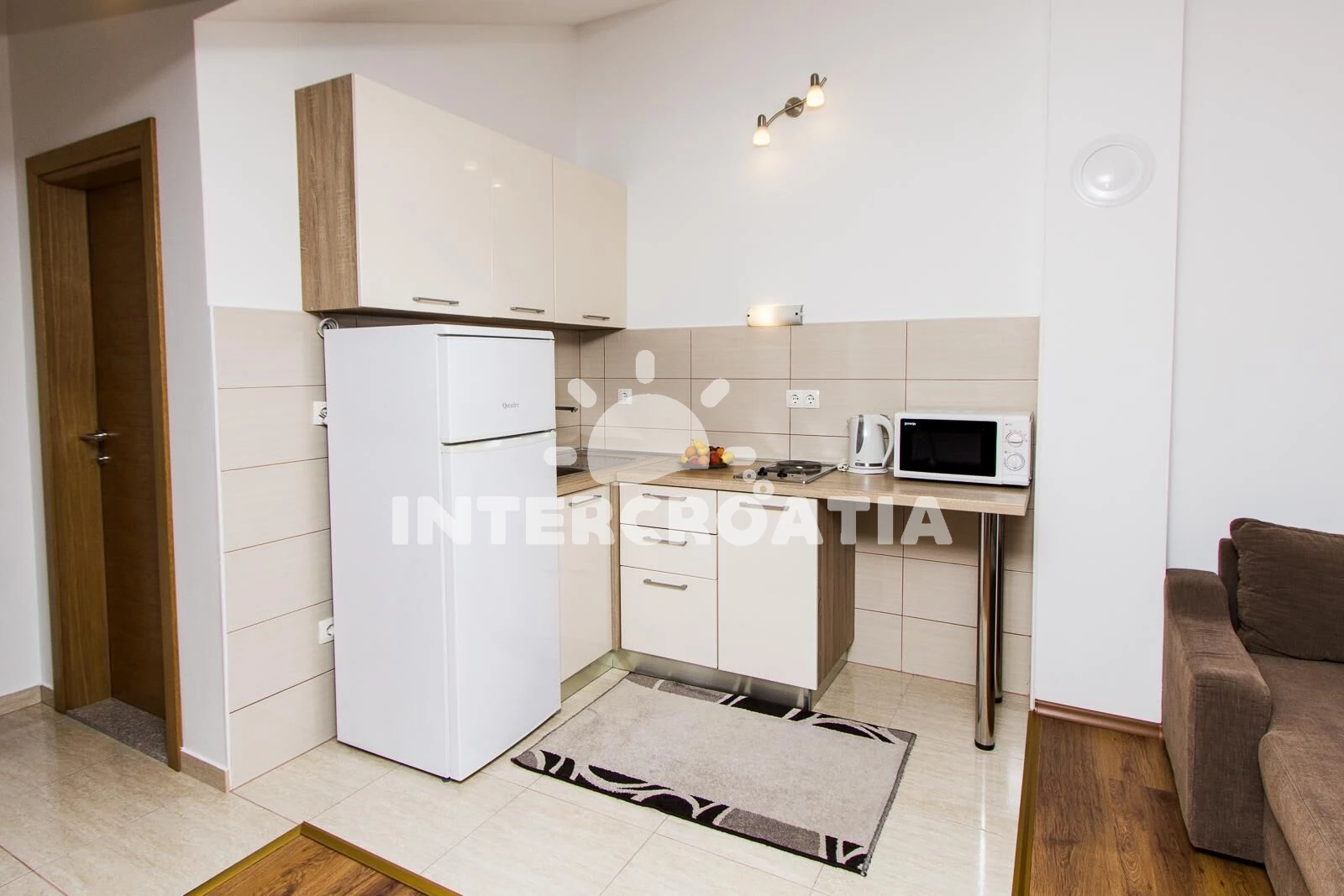 Vzdálenosti: Moře 192 m, pláž 450 m (oblázková a betonové desky), supermarket 135 m, lékárna 150 m, ambulance 150 m, směnárna 150 m, banka 150 m, centrum 200 m, marina 200 m, bar 260 m, restaurace 260 m, pošta 300 m, park Plitvice 25 km, letiště (Zadar) 65 km,