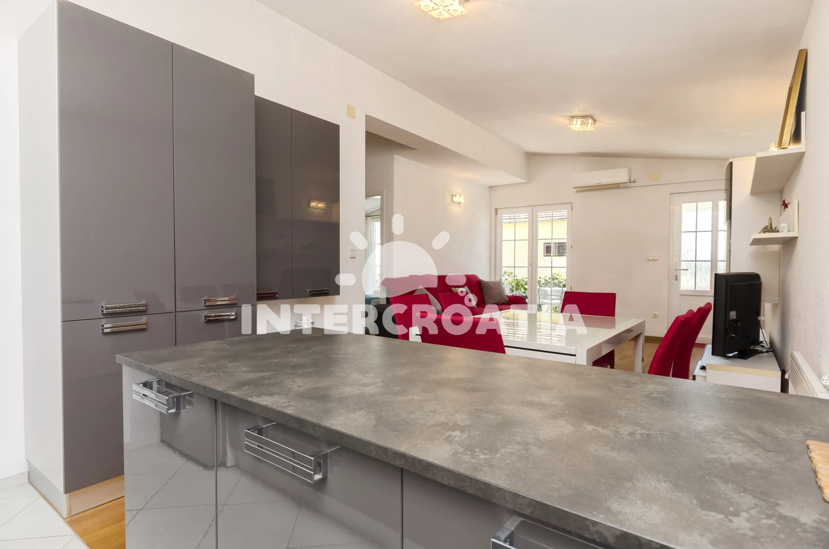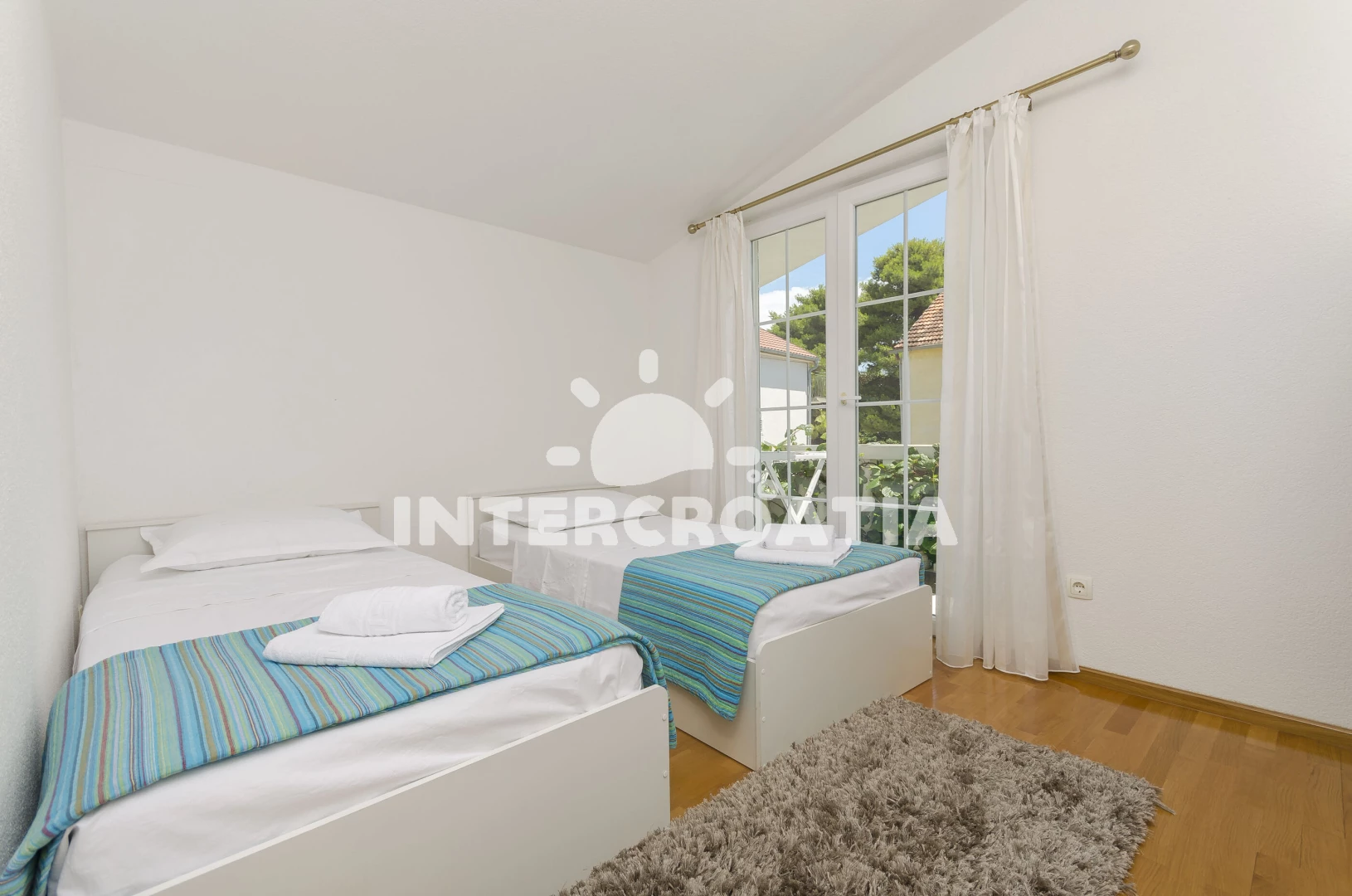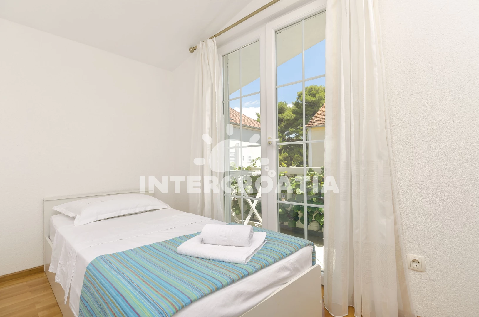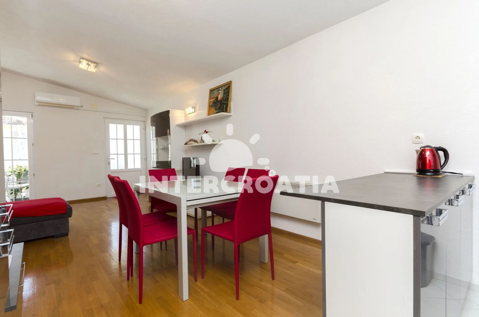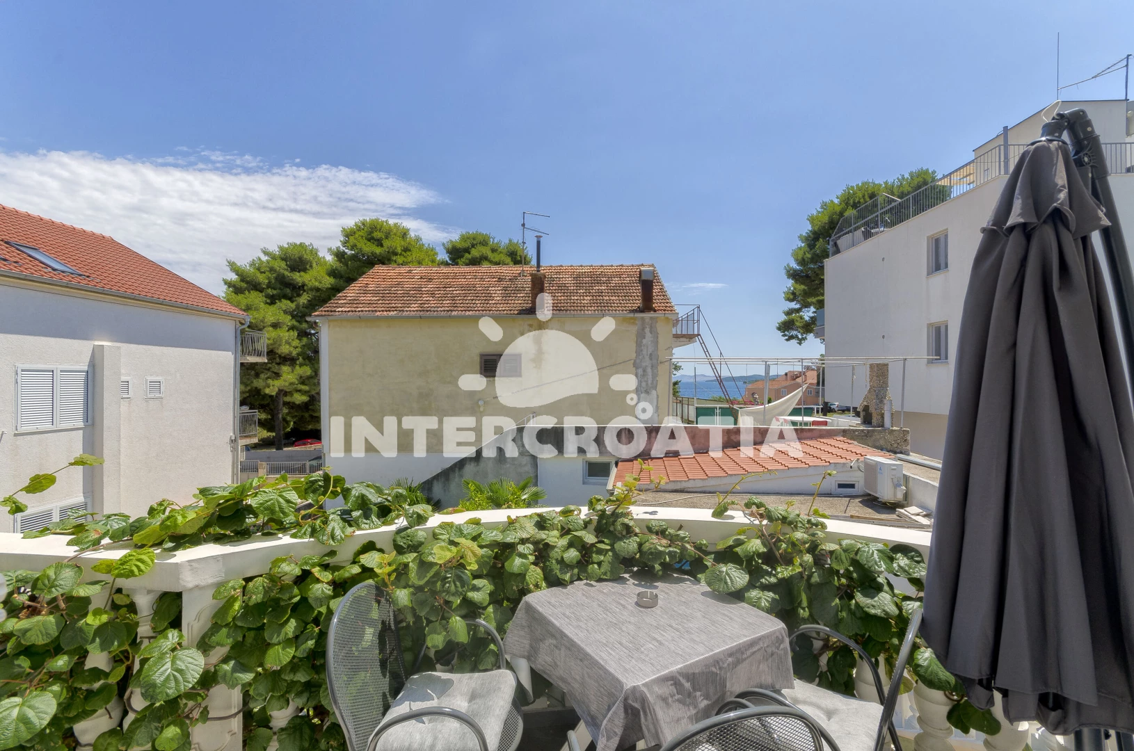 Vzdálenosti: Moře 90 m, pláž 90 m (oblázková a betonové desky), centrum 100 m, bar 200 m, restaurace 200 m, supermarket 400 m, směnárna 400 m, lékárna 500 m, ambulance 500 m, pošta 500 m, marina 700 m, banka 700 m, veřejná doprava 700 m, letiště (Split) 75 km, trajekt (Split) 75 km,