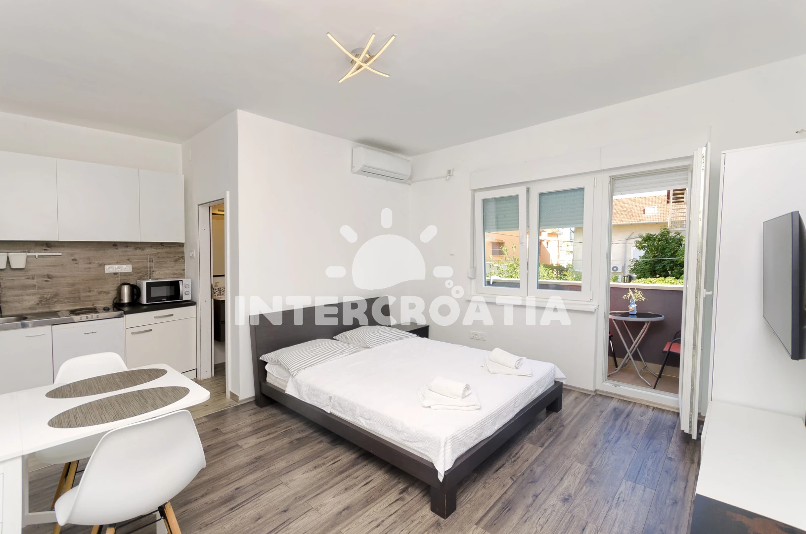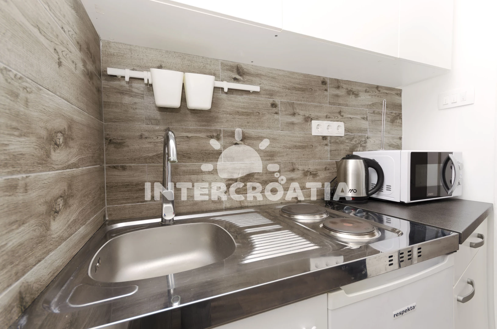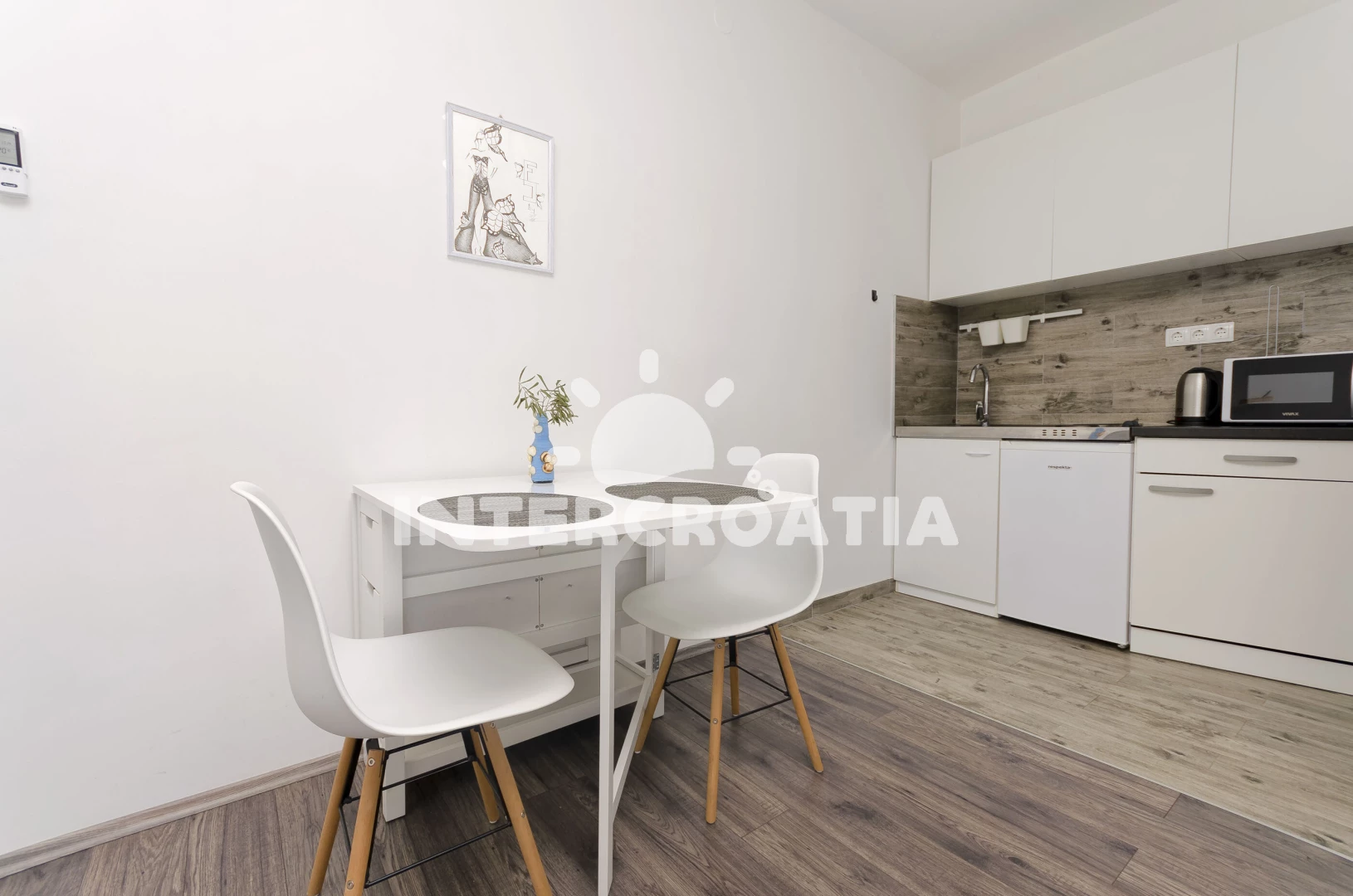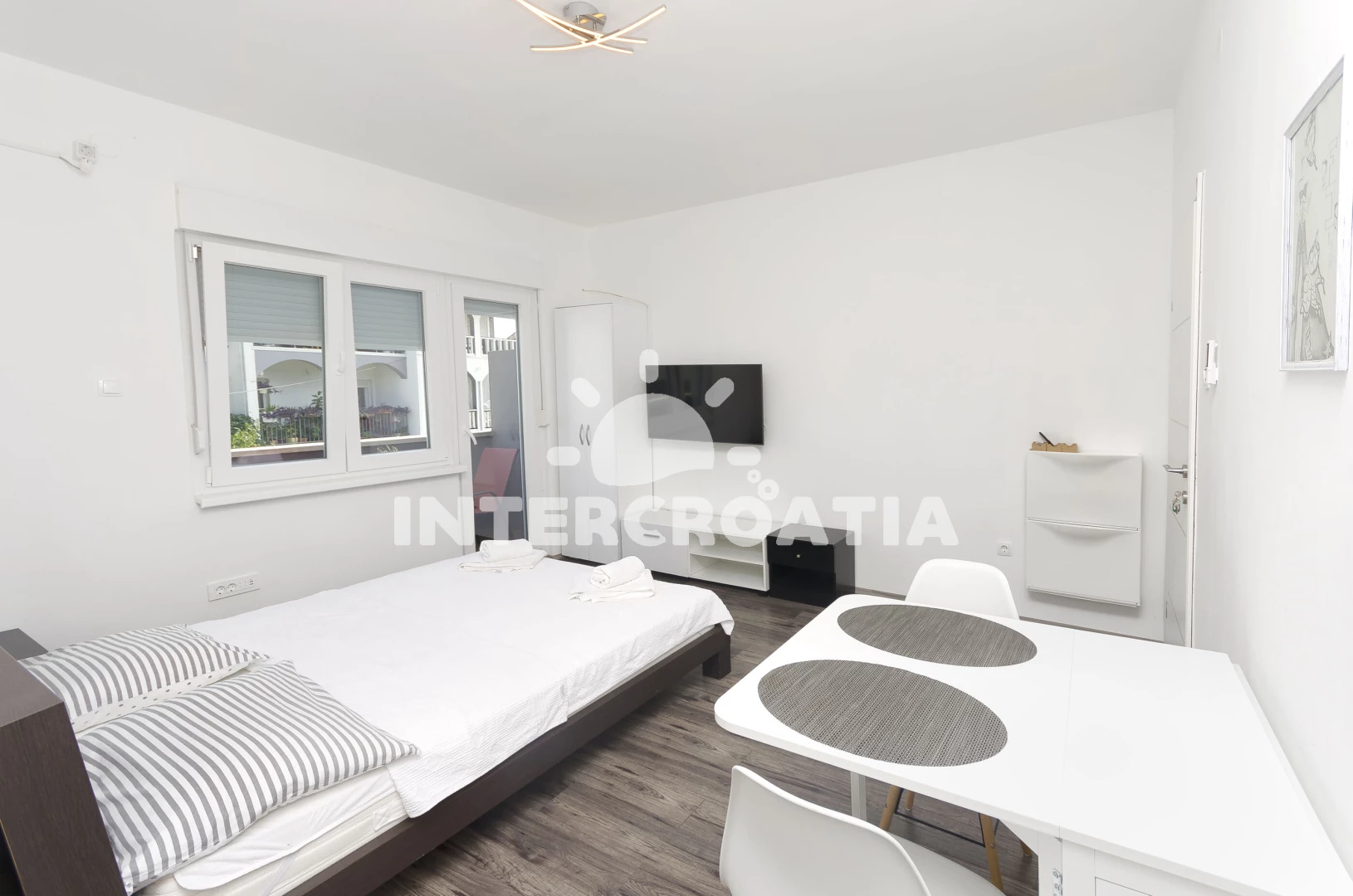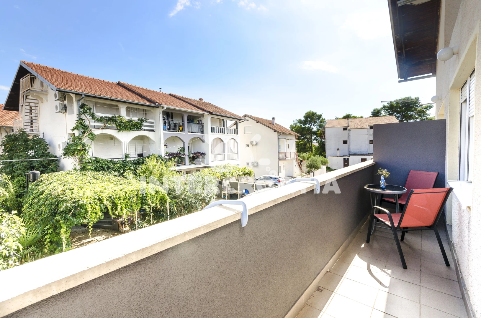 Vzdálenosti: Moře 480 m, pláž 580 m (oblázková a větší kamení), supermarket 300 m, bar 500 m, restaurace 500 m, směnárna 550 m, marina 800 m, banka 900 m, centrum 900 m, lékárna 950 m, ambulance 950 m, půjčovna motorových člunů 25 km, letiště (Zadar) 65 km,