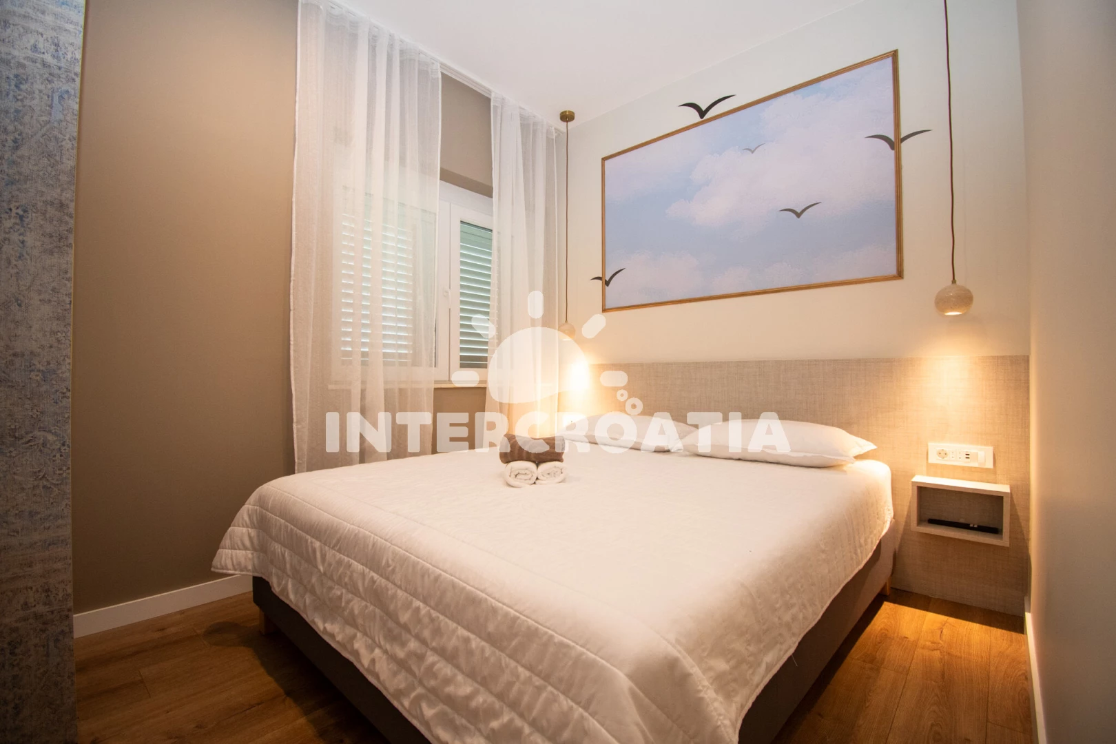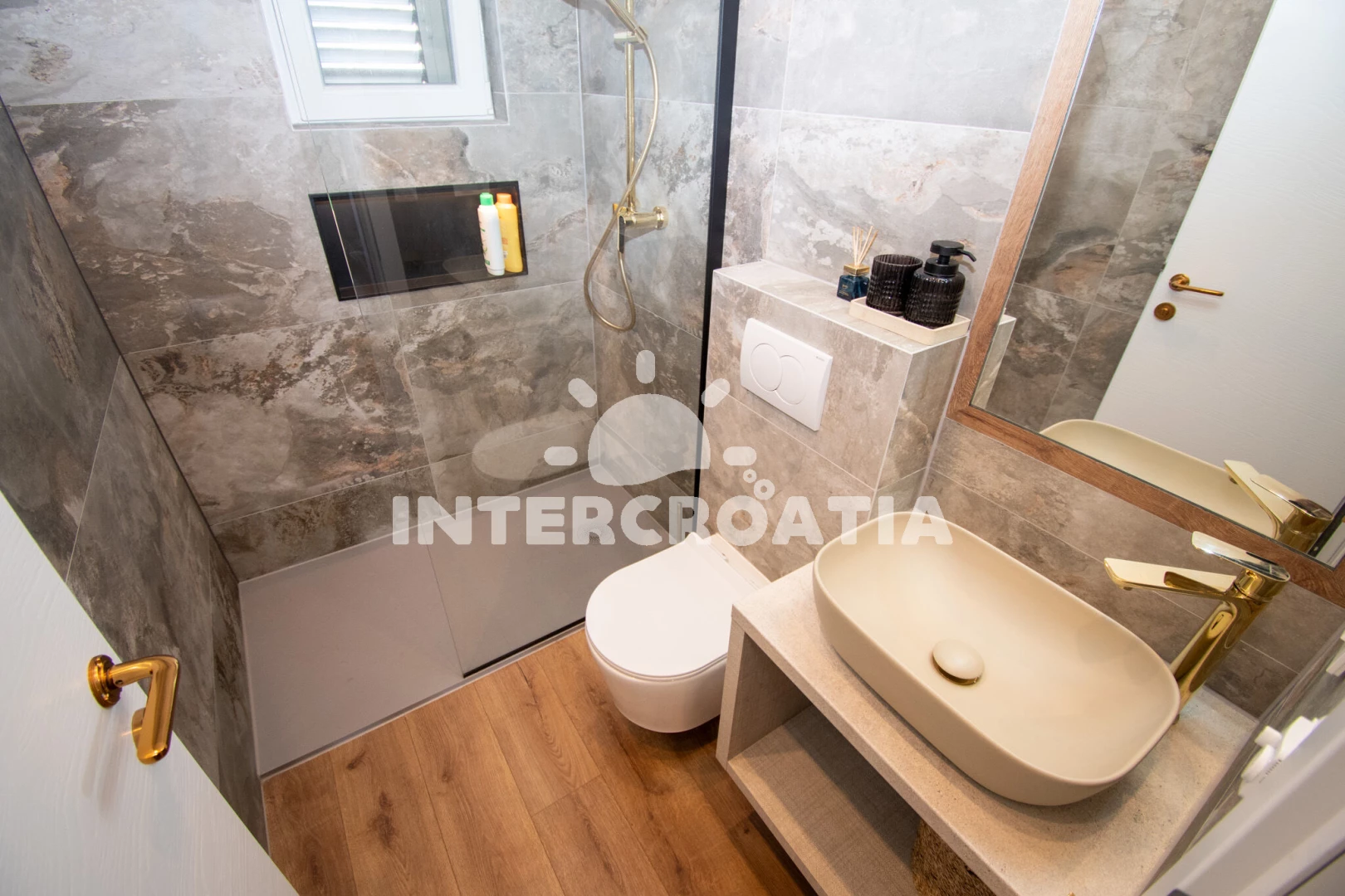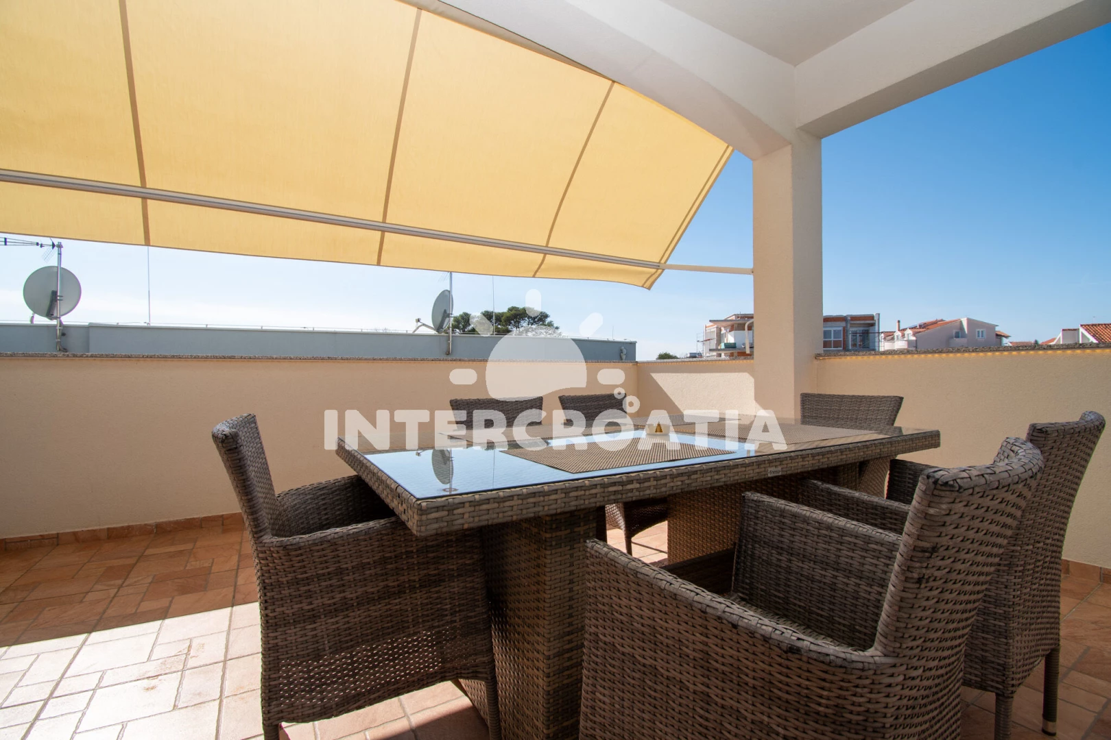 Vzdálenosti: Moře 60 m, pláž 60 m (písčitá a oblázková), restaurace 80 m, bar 80 m, supermarket 120 m, centrum 200 m, marina 650 m, banka 670 m, pošta 700 m, lékárna 800 m, ambulance 800 m, čerpací stanice 1,3 km, letiště (Zadar) 65 km,