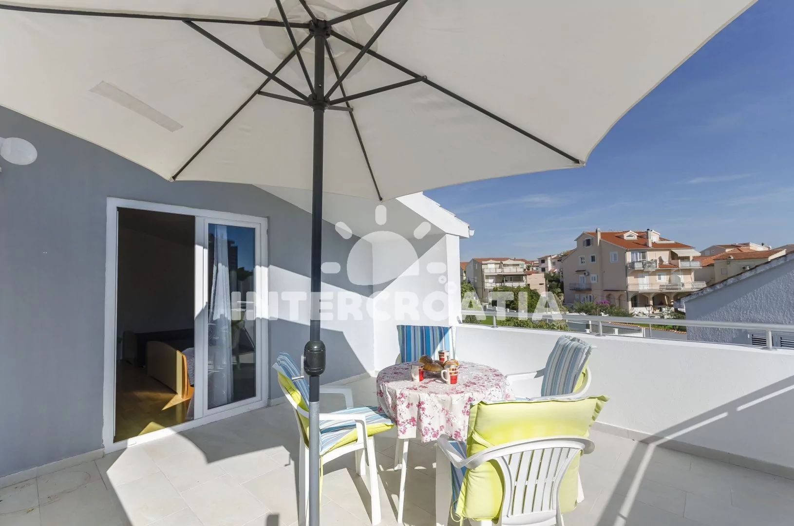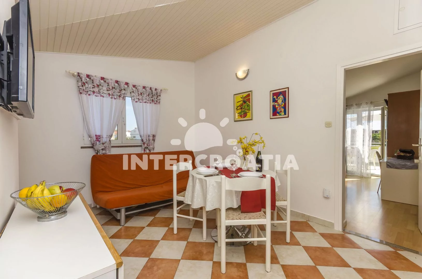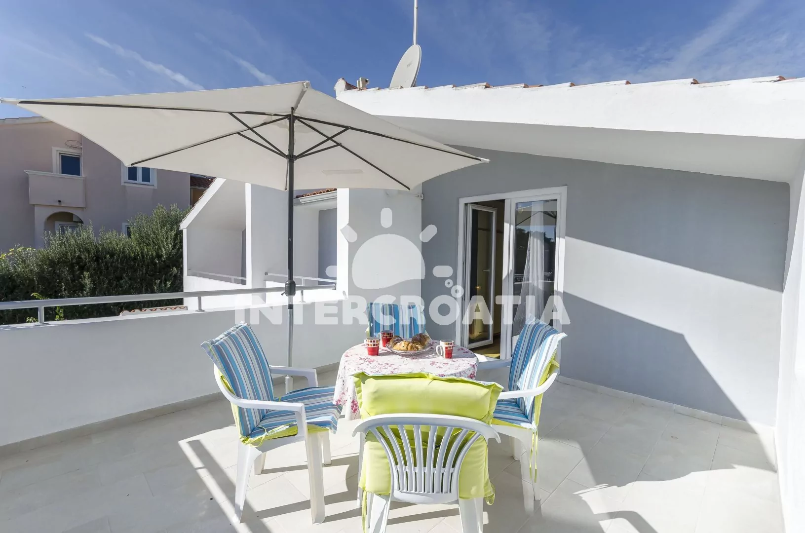 V Severní Dalmácii, 2,5 km západním směrem od destinace Tribunj a 4 km na severozápad od dalmatského letoviska Srima. Objekt leží 70 m od pláže.