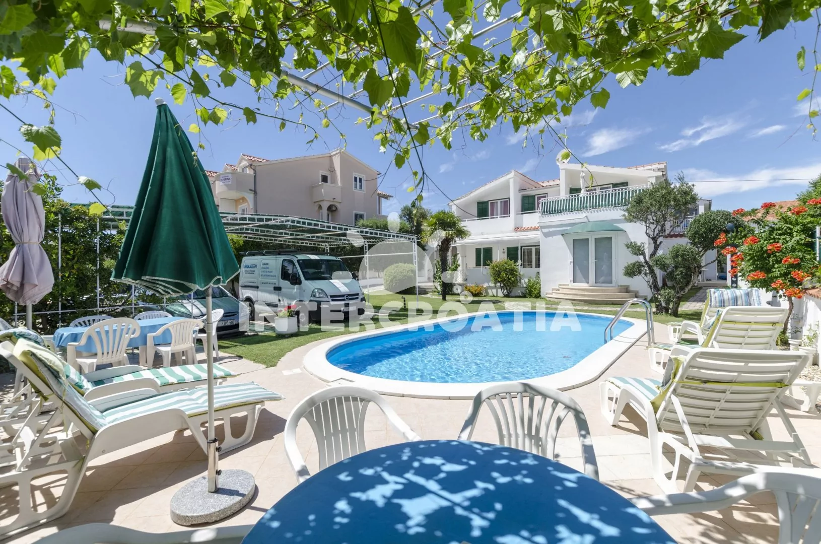 Dvoupodlažní apartmánový dům se zapuštěným bazénem a skvělou polohou téměř u pláže a centra.