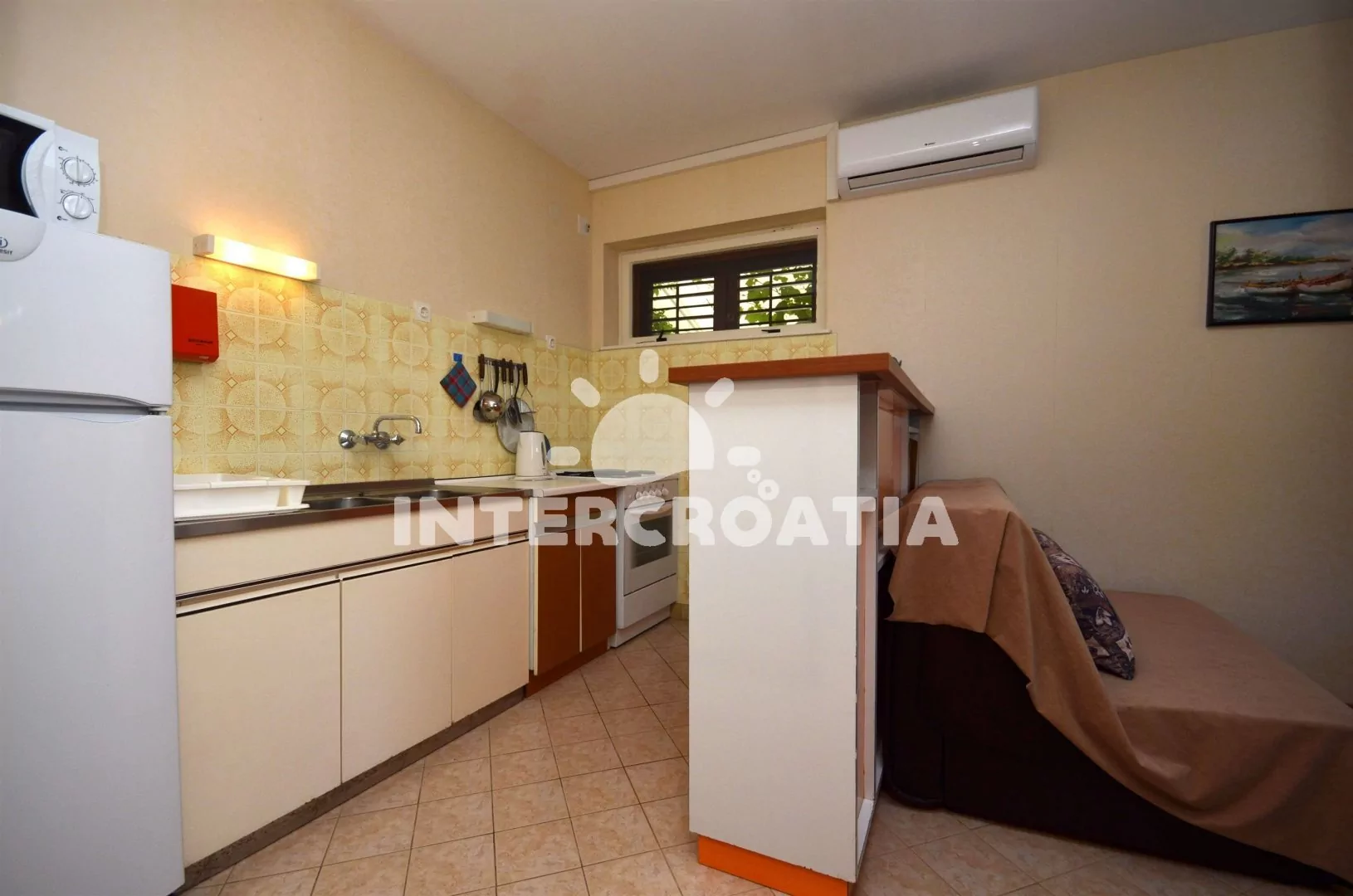 Vzdálenosti: Moře a pláž 130 m, centrum 600 m, supermarket 30 m, restaurace, bar 40 m, půjčovna motorových člunů 400 m, směnárna 500 m, pošta, přístav 800 m, ambulance, lékárna 900 m, letiště 68 km, trajekt 89 km.