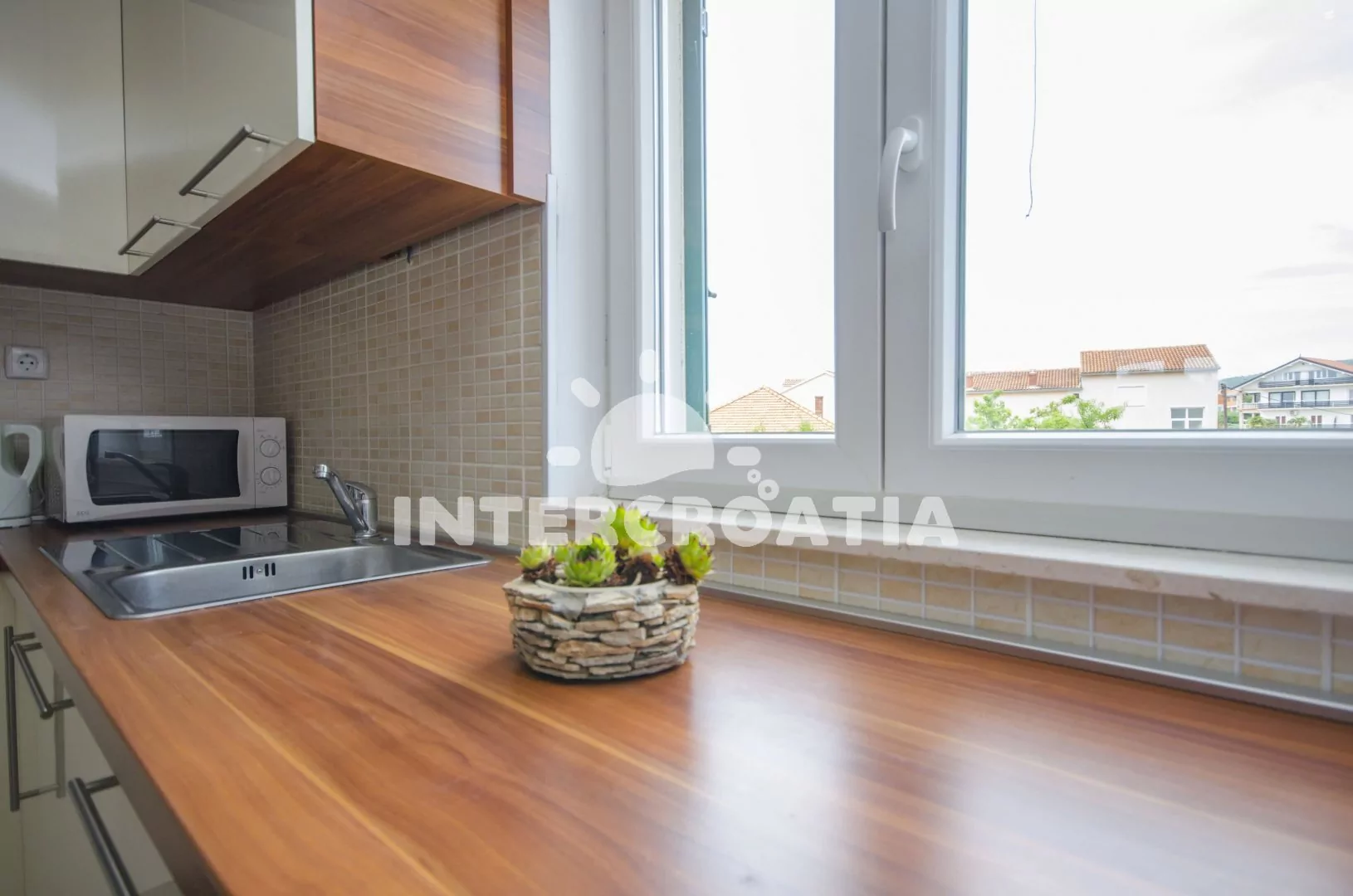 Vzdálenosti: Moře a pláž 85 m, centrum 200 m, lékárna, ambulance 800 m, supermarket 120 m, restaurace 330 m, letiště 65 km.