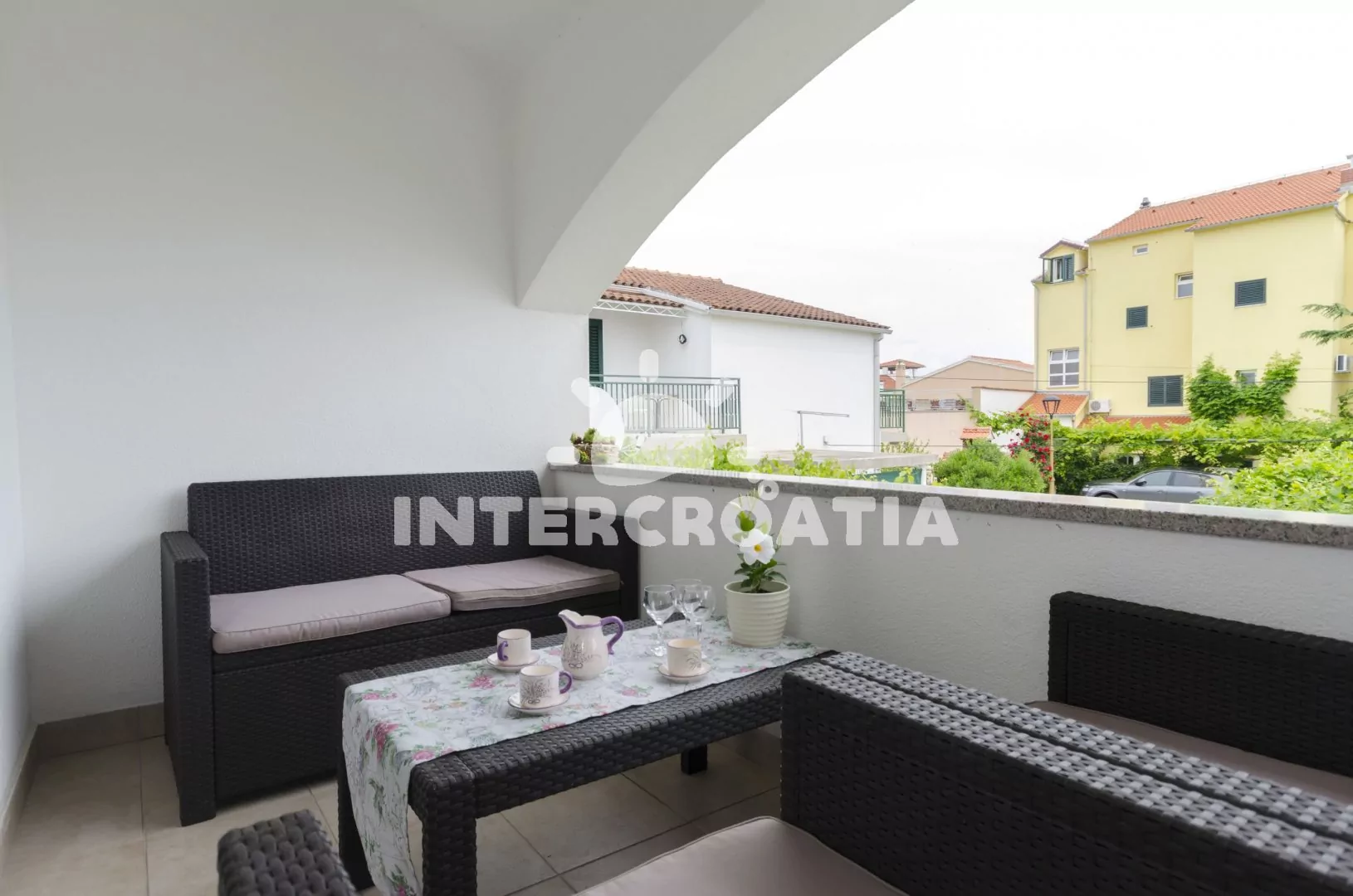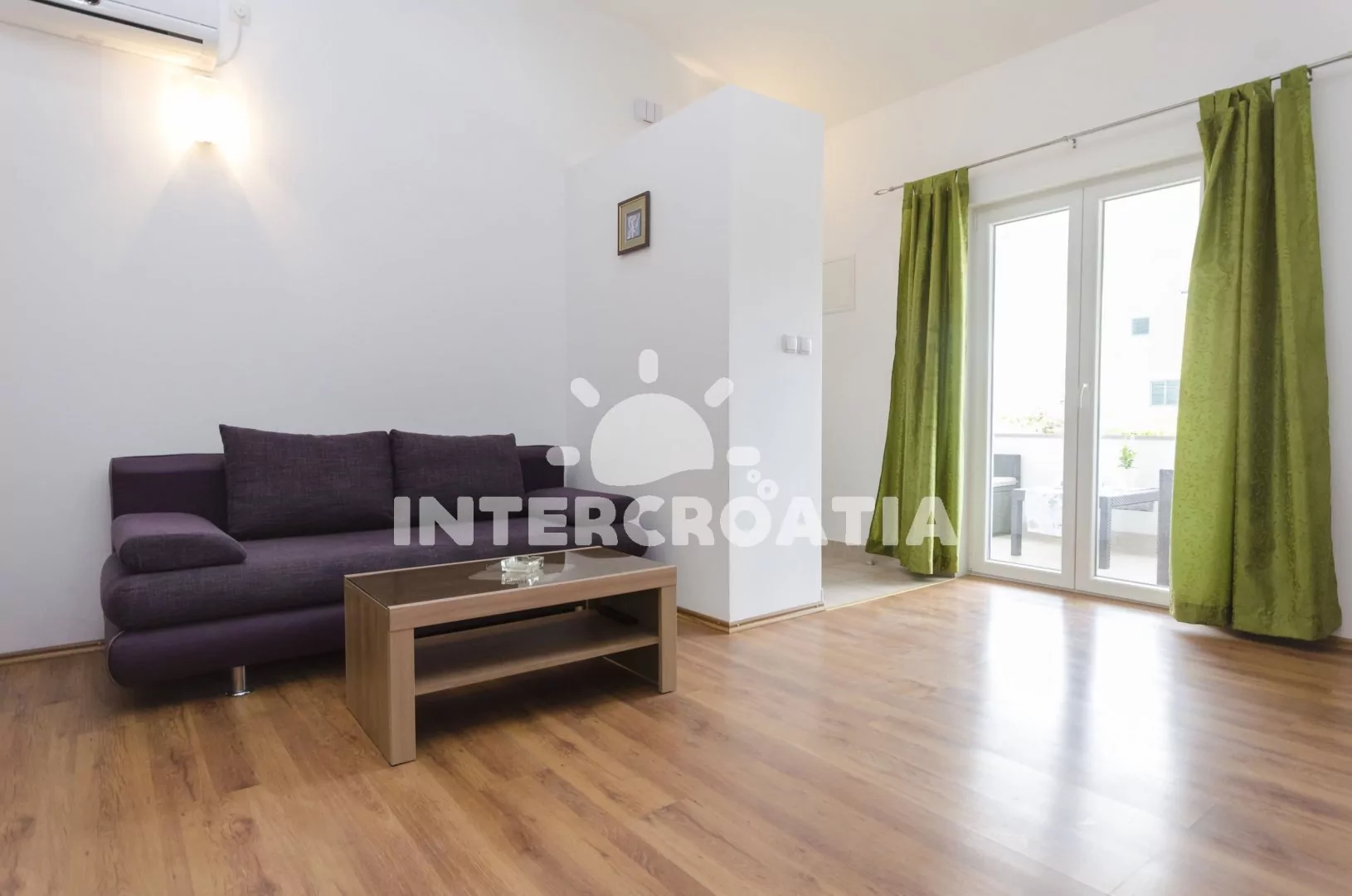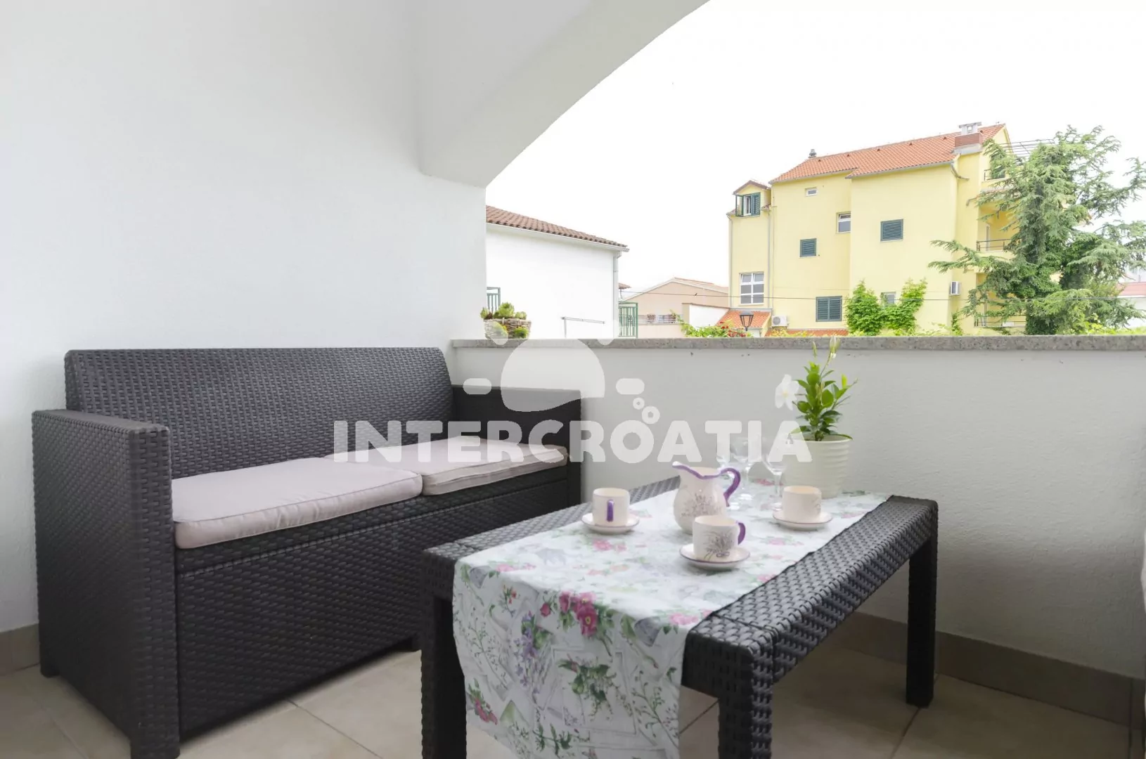 Moderně zařízený apartmán s terasou, pouze 85 m od moře a oblázkovo - písčité pláže.