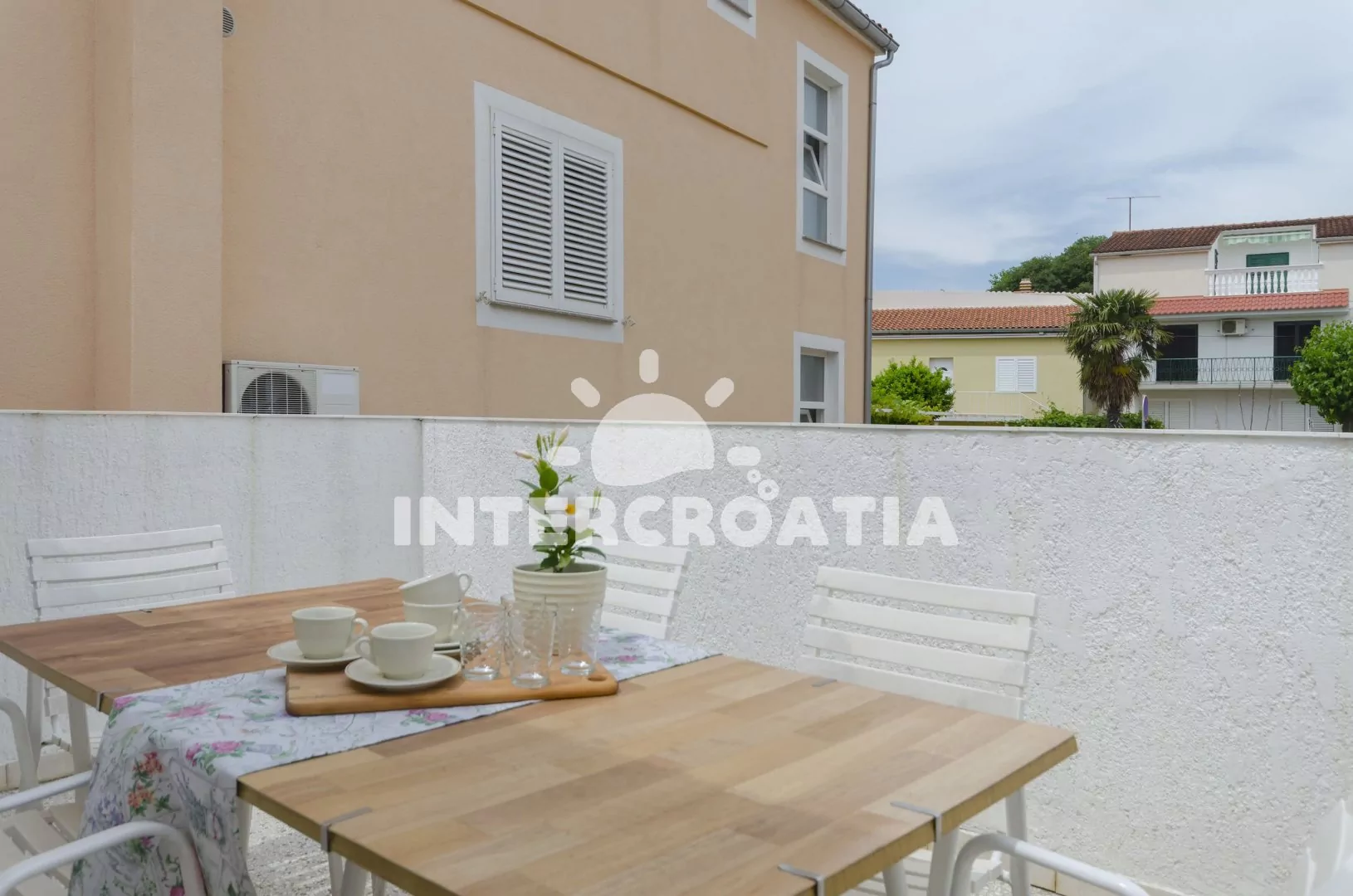 Vzdálenosti: Moře a pláž 85 m, centrum 200 m, lékárna, ambulance 800 m, supermarket 120 m, restaurace 330 m, letiště 65 km.