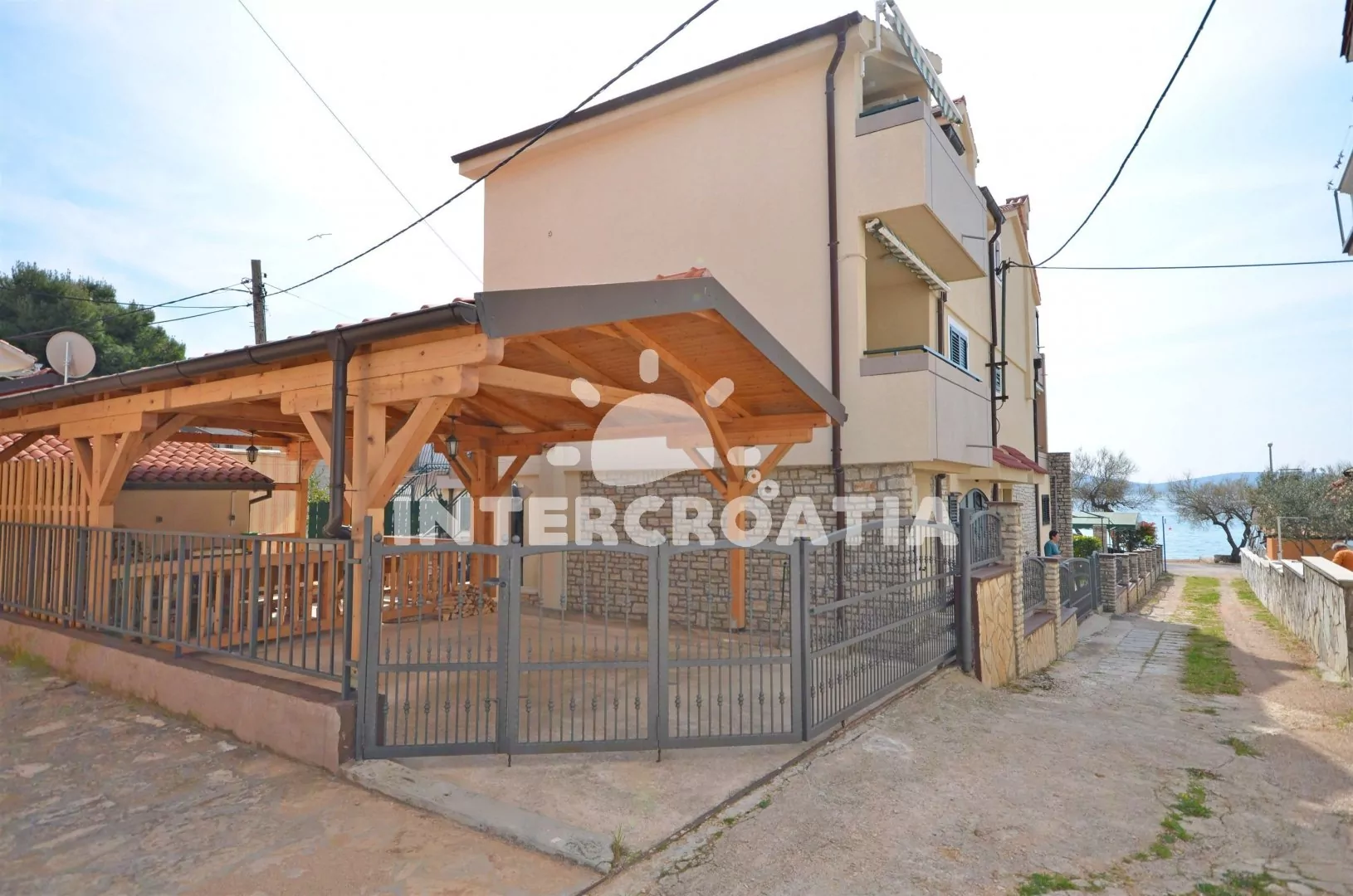Vzdálenosti: Moře a pláž 10 m, centrum 1 km, restaurace, bar 200 m, supermarket 300 m, lékárna, ambulance 1,5 km, park Plitvice 25 km, letiště 65 km, trajekt 85 km.