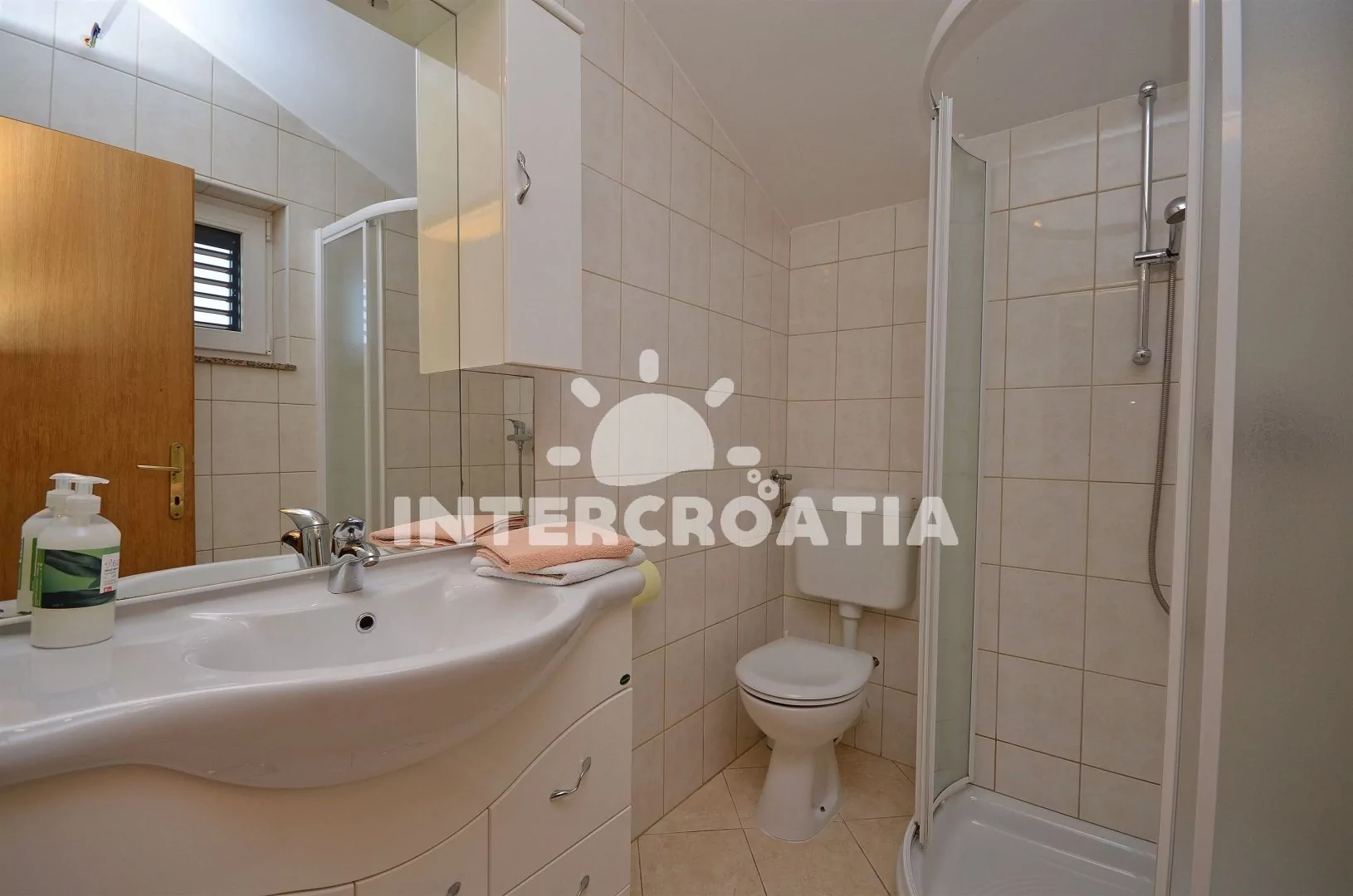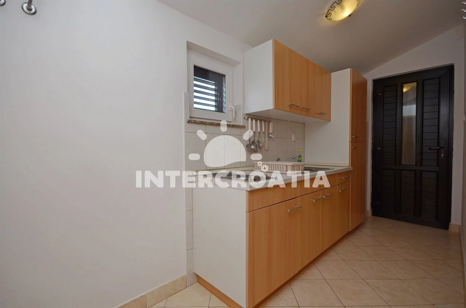 Apartmán (45 m2) s krytou terasou a výhledem na moře, se nachází v druhém patře domu. Obývací pokoj je spojený s kuchyní. Kuchyňská linka je vybavena dvouplotýnkovým sporákem, rychlovarnou konvicí,…