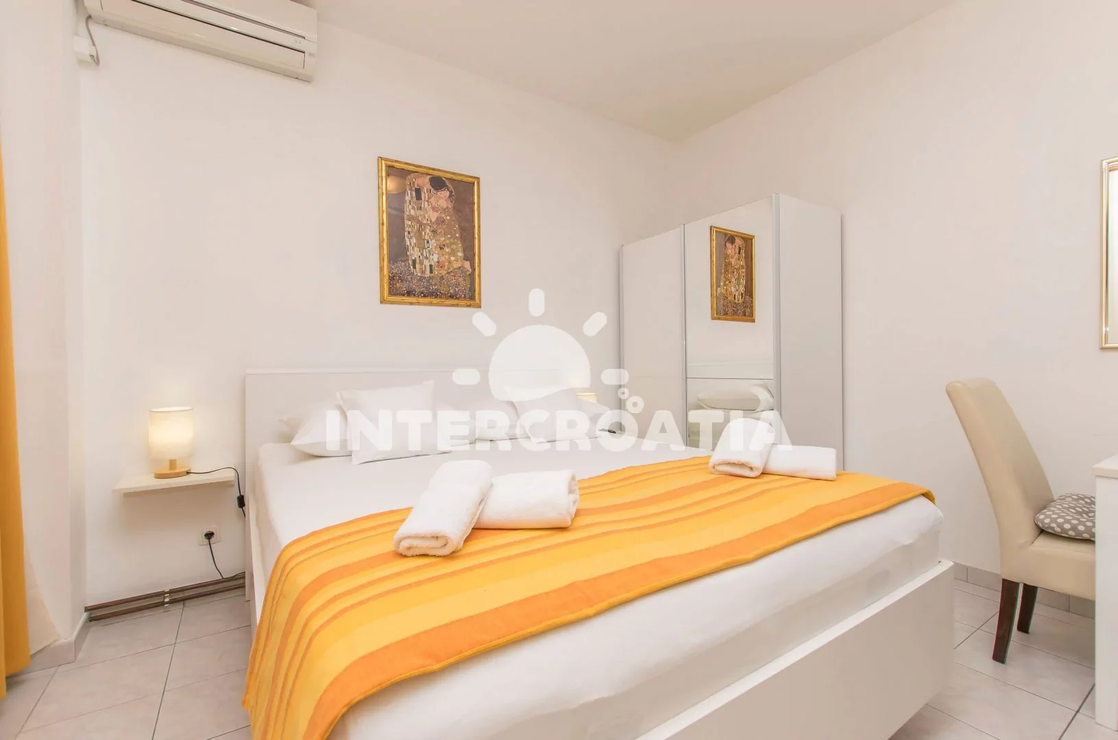 Pobyt w apartamencie bardzo udany. Przemiła właścicielka, na mapie wytłumaczyła nam gdzie są sklepy, atrakcje, plaża itp. Wszystkie atrakcje bardzo blisko - centrum właściwie 10 min pieszo, plaża 5 min, sklepy 3-5 min. Piękny, duży budynek, apartamenty z osobnym wejściem, można posiedzieć w ogródku, są suszarki na ubrania. Parking świetny, zewnętrzny, ale jest wiata która chroni przed deszczem czy gradem. Dam apartament bardzo czysty, super wyposażenie aneksu kuchennego, są nawet podstawowe przyprawy. Można codziennie spokojnie gotować obiad lub wybrać się do pobliskich restauracji, które są bardzo blisko i oferują wiele dań od fast-food po wykwintne dania, zwłaszcza rybne czy owoce morza. Okolica apartamentu bardzo spokojna, mili uśmiechnięci ludzie w sąsiedztwie, nas codziennie witała właścicielka kiedy wychodziliśmy na zewnątrz i pytała czy wszystko w porządku, w dniu przyjazdu ugościła nas chorwackim piwem, miała również do wyboru wino. Co mi się podobało to TV z dostępem wielu kanałów, praktycznie w każdym języku. Pobyt był bardzo udany i chętnie polecę apartament rodzinie i znajomym. Cena bardzo adekwatna do udogodnień.