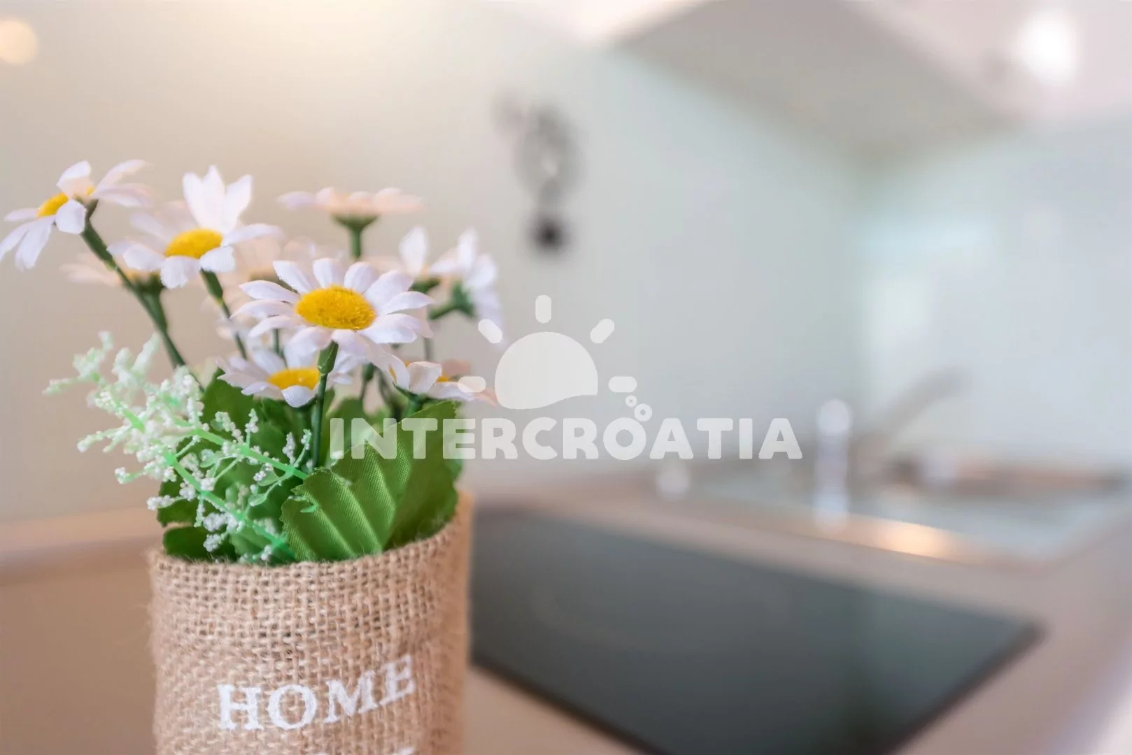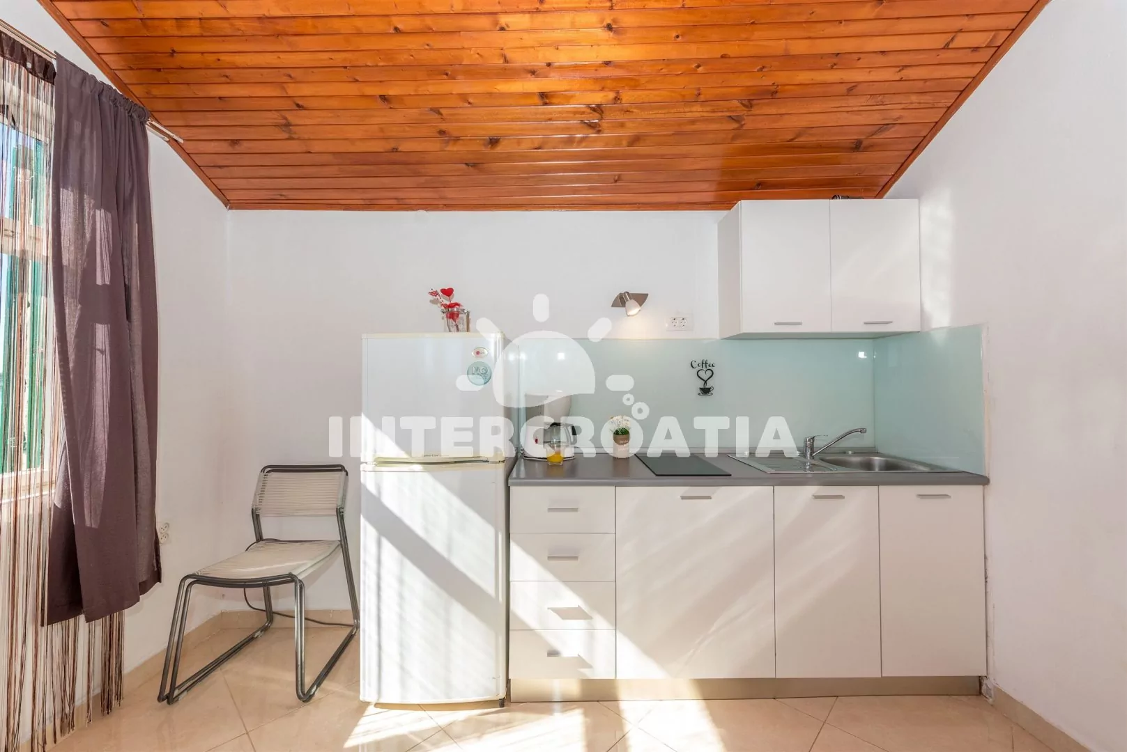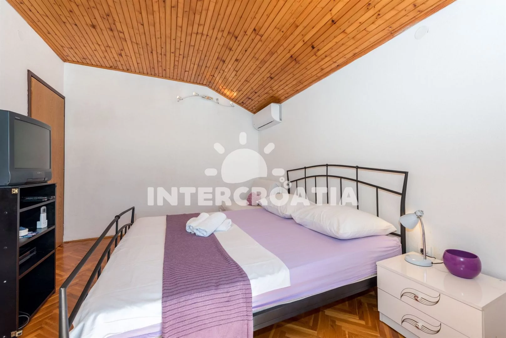 Vzdálenosti: Moře a pláž 150 m, centrum 50 m, ambulance, lékárna, směnárna 2 km, centrum, pošta, bar 50 m, restaurace 150 m, supermarket 30 m, letiště 65 km, trajekt 85 km.