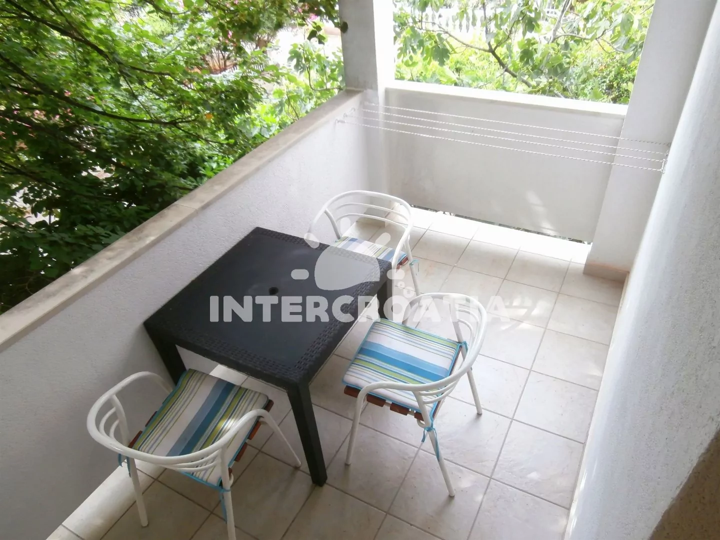 Apartmán s balkonem a posezením se nachází v prvním patře a je vhodný pro 2 až 3 osoby. Kuchyň je vybavena kuchyňskou linkou s dvouplotýnkovým sporákem, nádobím a lednicí s mrazákem. Obývací pokoj s jídelním stolem, jedním dvoulůžkem, pohovkou (rozložitelná na extra lůžko pro 1 osobu) a televizí. Koupelna se sprchovým koutem, umyvadlem a wc. Hostům je k dispozici parkování u objektu zdarma.