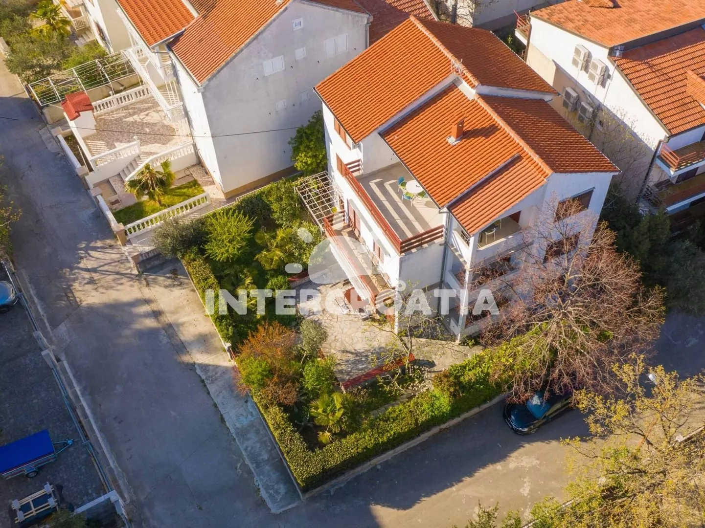 Rohový dům ve vyhledávané lokalitě města Vodice, 450 m od oblázkové pláže a v dobré dostupnosti centra města. Apartmány disponují lodžiemi, nebo terasami s venkovním posezením.