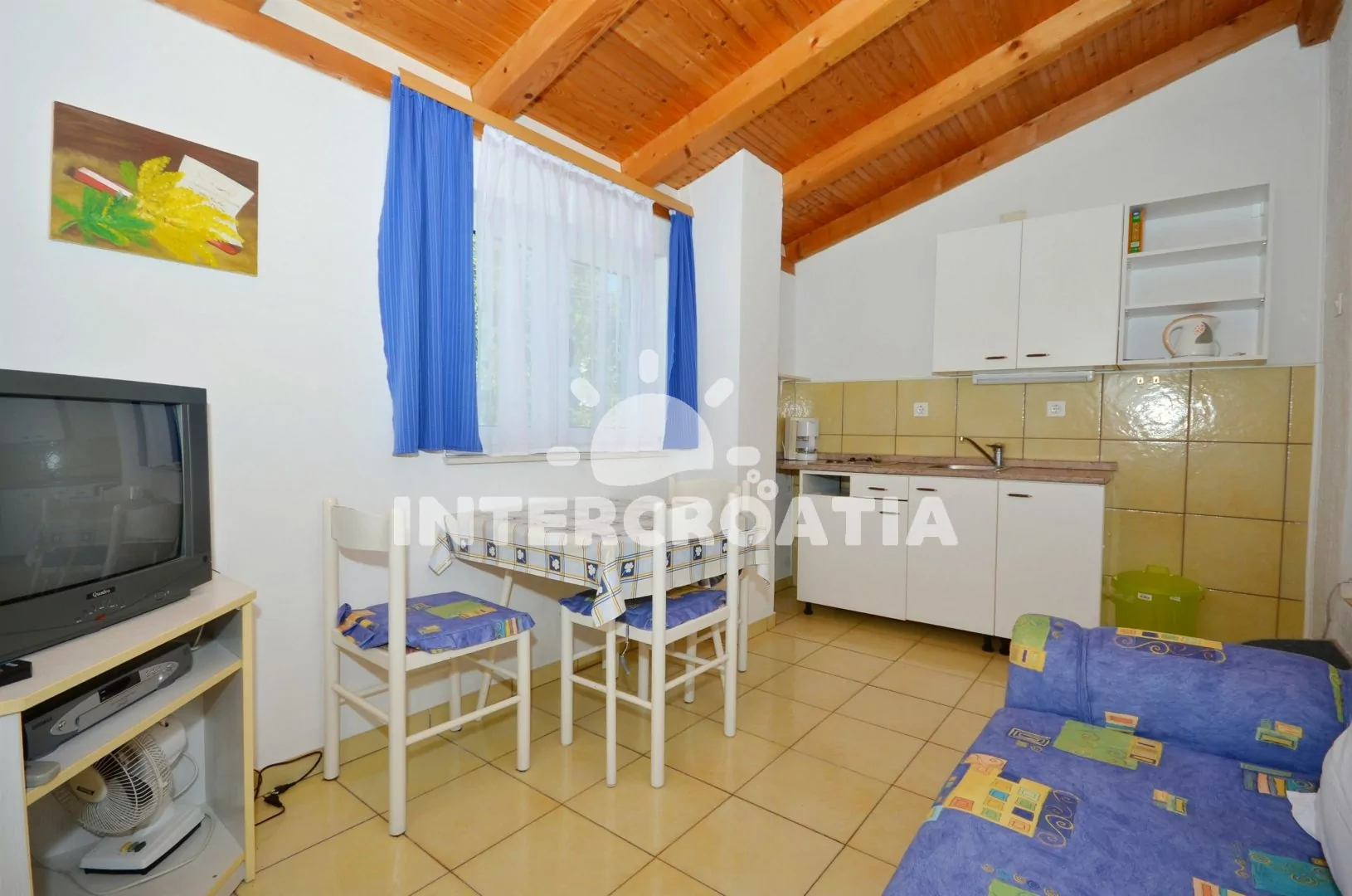 Apartmán typu studio s vlastním balkonem a výhledem do zahrady je vhodný pro 2 až 3 osoby. Obývací pokoj je spojený s kuchyní. Kuchyňská linka je vybavena dvouplotýnkovým sporákem, kávovarem, nádobím a lednicí s mrazákem. Obývací pokoj s jídelním stolem pro 3 osoby, pohovkou (rozložitelná na extra lůžko pro 1 osobu) a televizí se satelitním programem. Ložnice je částečně oddělena od obývacího pokoje a je vybavena jedním dvoulůžkem, klimatizaci a vstupem na balkon. Koupelna se sprchovým koutem, umyvadlem a wc. Hostům je k dispozici parkování u objektu zdarma.