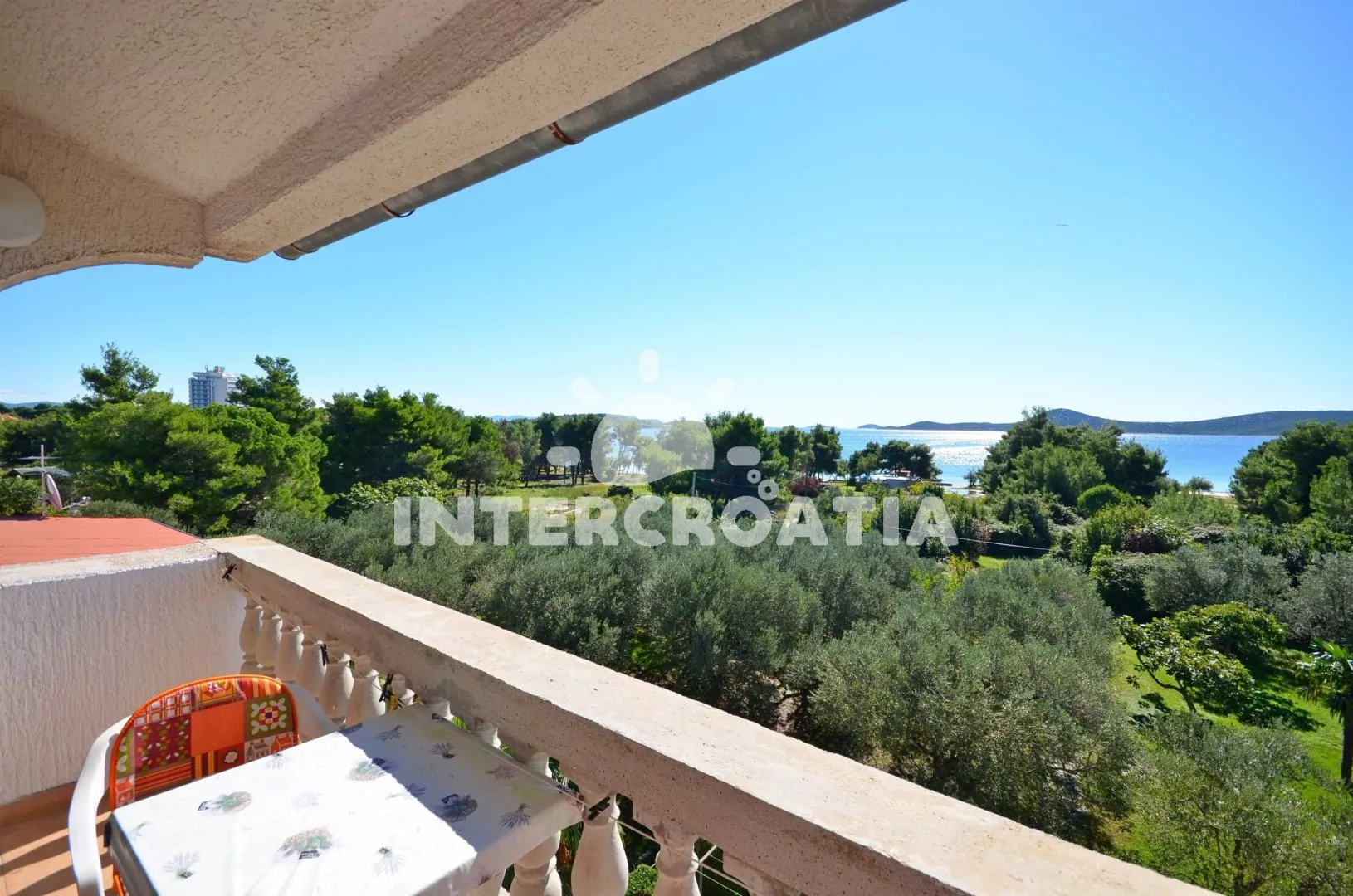 Velmi dobře umístěný apartmánový dům s výhledem na moře a kousek od oblázkové pláže. Dům disponuje vlastním pozemkem, zahradou se zelení, stromy a venkovním posezením. Parkovací místa na pozemku objektu pod částečně krytými přístřešky.