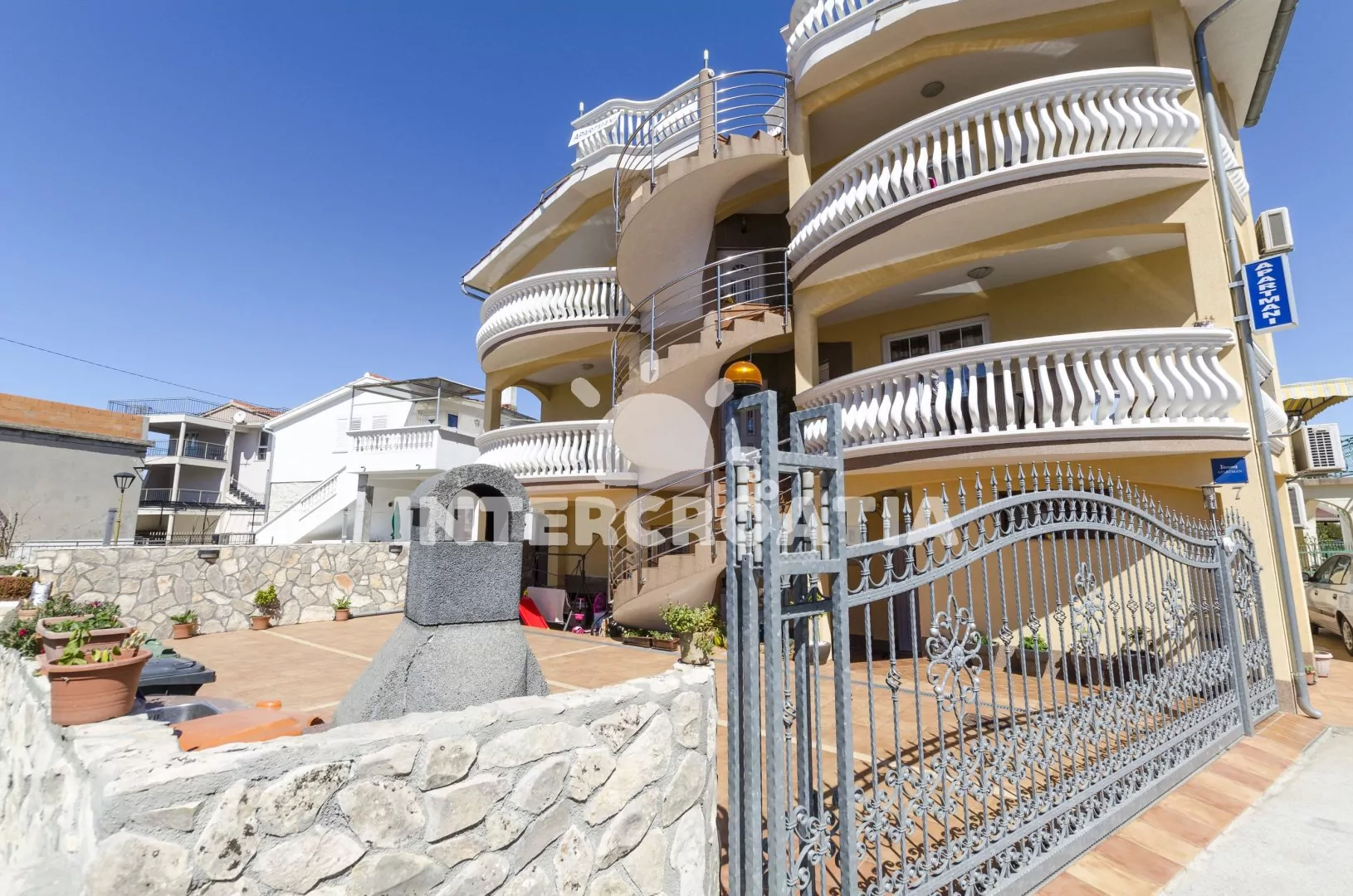 Moderně zařízená apartmánová vila s možností ubytování ve 2 apartmánech s lodžiemi a venkovním posezením. Lze vyjít po schodech až na střechu vily, odkud je výhled na moře, nebo se opalovat na lehátkách. K dispozici parkovací místa u objektu.