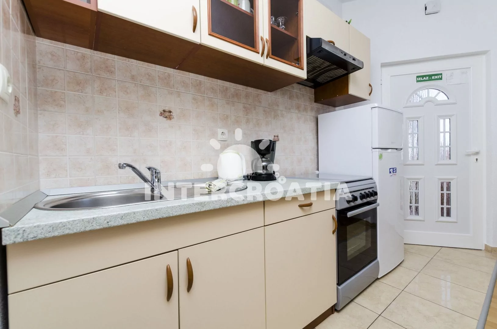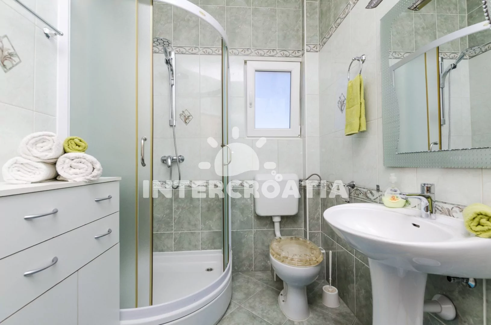 Vzdálenosti: Moře a oblázková pláž 700 m, centrum, restaurace, bar, lékárna, ambulance, přístav, diskotéka, směnárna, čerpací stanice, banka, pošta 400 m, supermarket 200 m, veřejná doprava 350 m, trajekt 15 km, letiště 65 km.