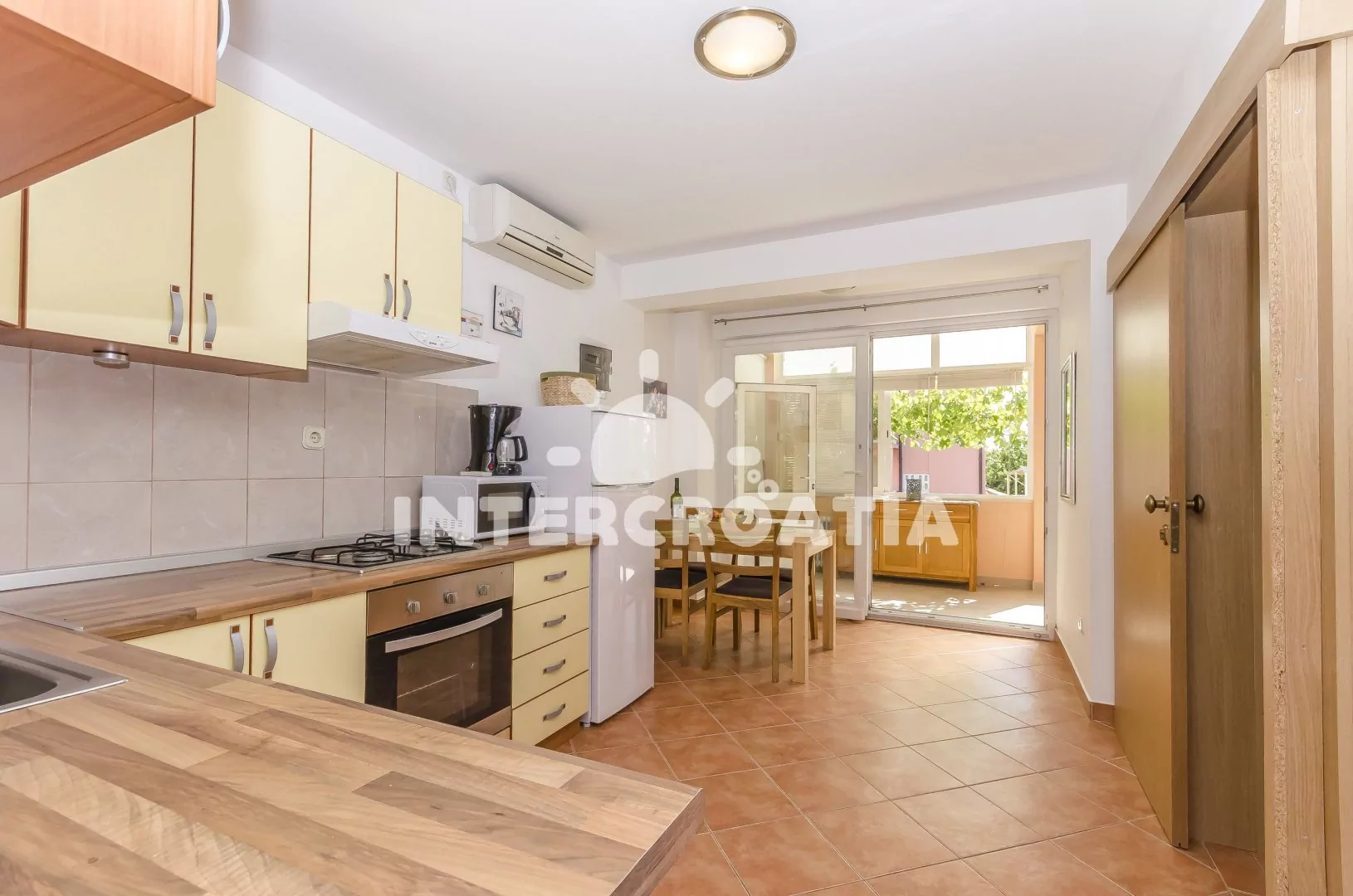 Skvěle umístěný apartmánový dům v klidnější části města Vodice. Dům se nachází ve slepé a klidné ulici, vlastní pozemek s plotem a parkovacími místy u objektu. Ubytování je možné ve třech apartmánech s lodžiemi a venkovním posezením.