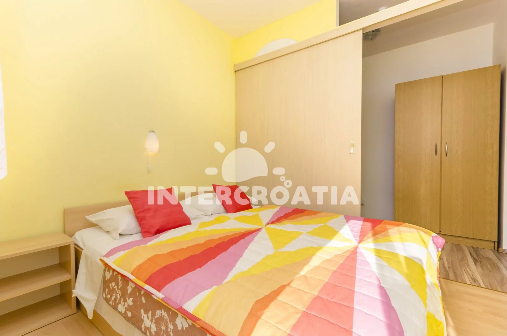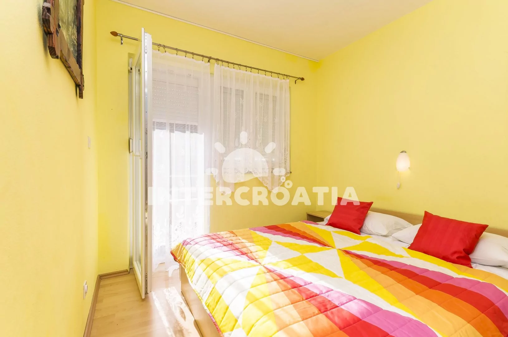 Apartmán (50 m2) s balkonem a venkovním posezením, nachází se v 1. patře domu a je vhodný pro 4 osoby. Obývací místnost je spojena s kuchyní. Kuchyňská linka je vybavena varnou deskou, digestoří, troubou, rychlovarnou konvicí, mikrovlnnou troubou, nádobím a lednicí s mrazákem. Obývací místnost s jídelním stolem pro 4 osoby, televizí se satelitním programem, klimatizací a vstupem na balkon. První i druhá ložnice je vybavena vždy s jedním dvoulůžkem a vstupem na balkon. Koupelna se sprchovým koutem, umyvadlem a wc. Hostům je k dispozici parkování u objektu zdarma.