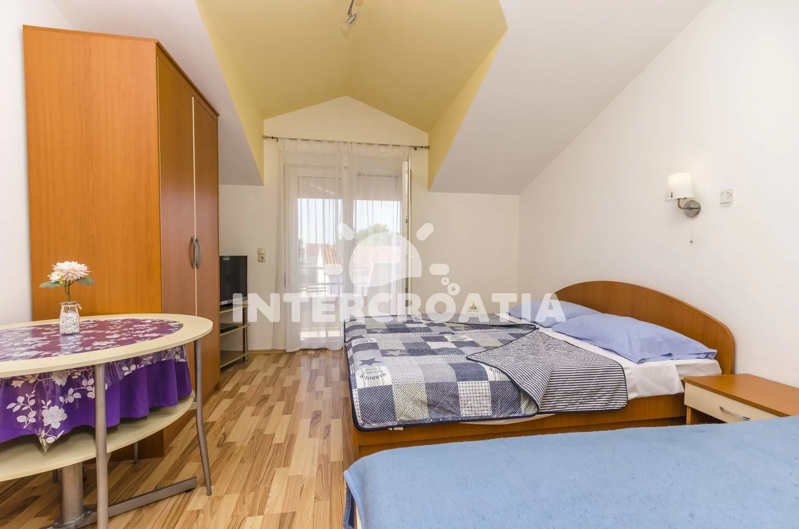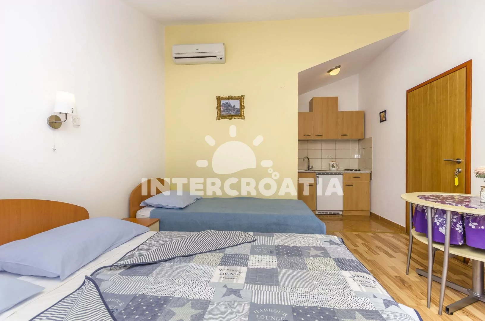 Vodice je ideálním letoviskem pro všechny věkové kategorie, které hledají nádherné oblázkové pláže, kulturní a sportovní vyžití. Vaše ubytování se nachází 6 minut pěší chůze od smaragdového moře a oblázkové pláže Hangar. Rodiny s dětmi ocení pozvolný přístup do moře a stinná místa k ležení pod stromy. Po ochlazujícím koupání v azurovém moři si můžete vychutnat jídlo a pití ve stánku s občerstvením, restauraci a kavárně. Letovisko potěší širokou sportovní nabídkou milovníky vodních aktivit. Sportovci rádi vyzkouší jízdu na vodních lyžích, potápění, windsurfing a jízdu na motorových člunech. Stavba obranné věže Čarićev z 16. století a kostela Nalezení sv. Kříže z 18. století vypovídají o historii letoviska. Volný čas neváhejte využít k návštěvě Akvária a muzea námořní tradice. Zábavné dění, poznání chorvatských tradic a gastronomie turistům slibuje slavnost Panny Marie Karmelské, Vodické hry a Vodička fešta. Jedním z nejkrásnějších výletů, který můžete zažít, je návštěva Národního parku Krka. Celému území vévodí panenská příroda a ohromující Skradinské vodopády. Živou atmosféru metropole nabízí historický Šibenik. Během sezóny se konají rozmanité společenské události jako věhlasné Šibenické léto, středověké trhy, hudební festivaly a Mezinárodní dětský festival. Centrum Šibeniku zdobí katedrála sv. Jakuba, Mořská brána, Knížecí palác, kostel sv. Jana Křtitele a palác Foscolů.