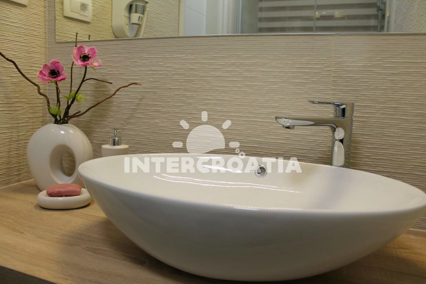 Vzdálenosti: Moře a písčitá-oblázková pláž 100 m, restaurace, bar, venkovní a vnitřní bazén, směnárna 100 m, supermarket 250 m, lékárna, ambulance, pošta, přístav 800 m, centrum 50 m, letiště, trajekt 65 km.