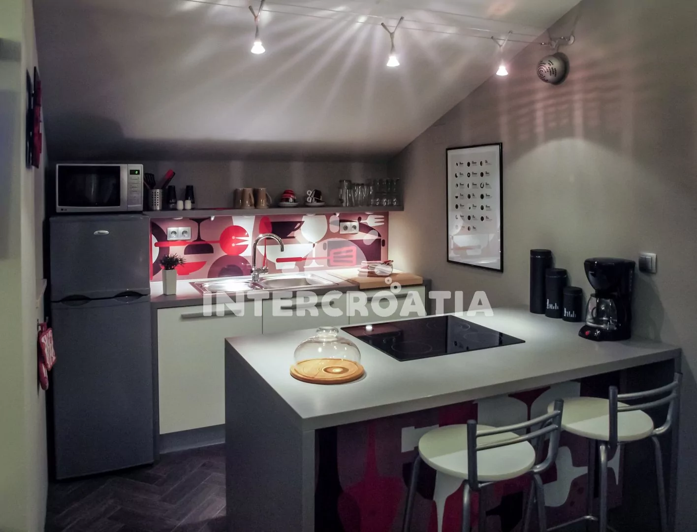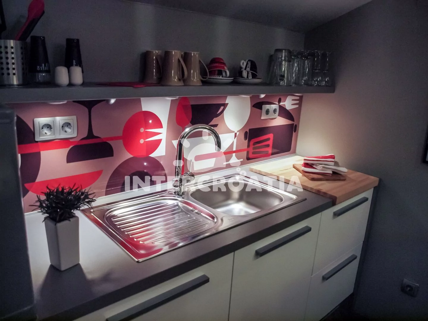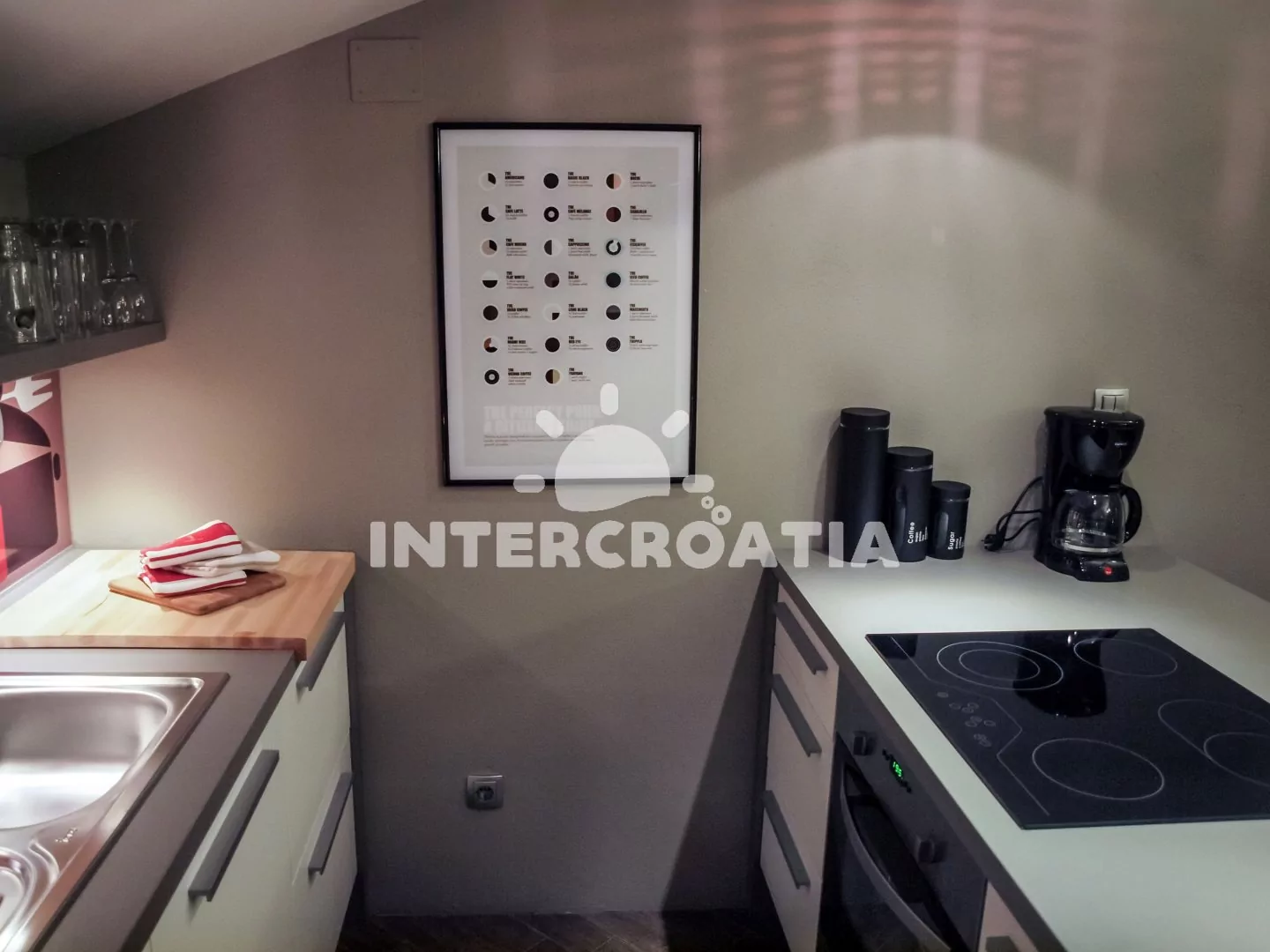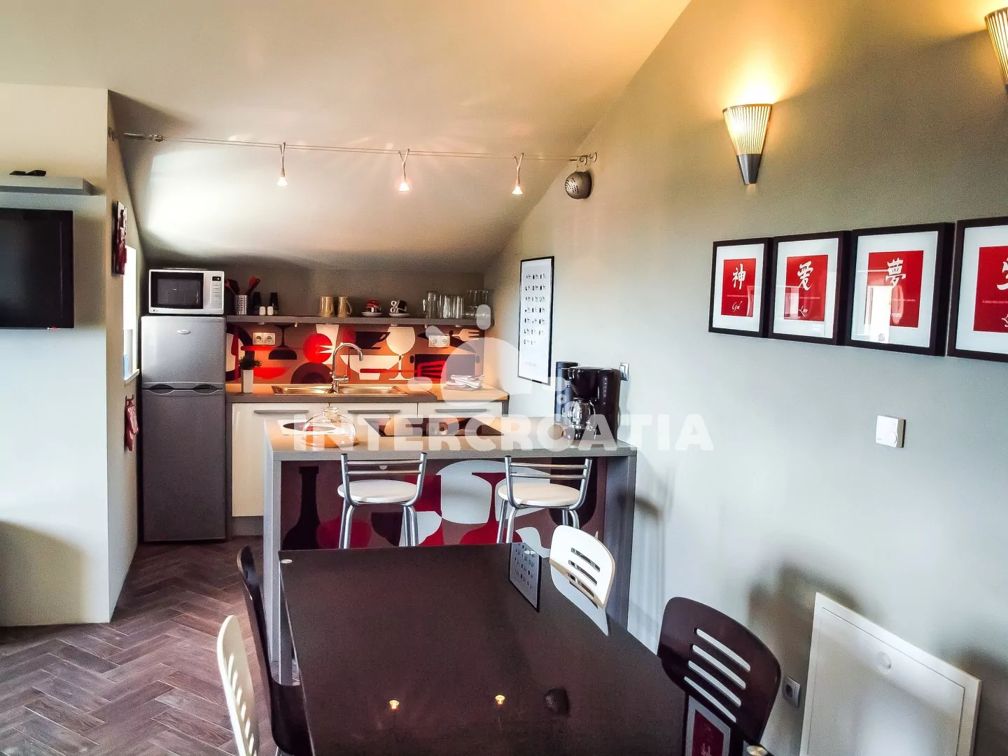 Vkusně zařízený apartmán (43 m) s terasou a výhledem na moře se nachází v přízemí vily a je vhodný pro 2 až 4 osoby. Obývací pokoj je spojený s kuchyní. Kuchyňská linka je vybavena sklokeramickou…