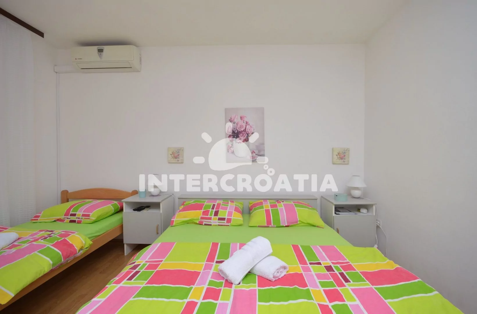 Velmi vhodně umístěný apartmánový dům v docházkové vzdálenosti od moře, oblázkové pláže a centra města. K dispozici 3 klimatizované apartmány s lodžiemi a venkovním posezením. U domu zahrada se společnou terasou, pergolou a grilem. Před domem pozemek s parkovacími místy.