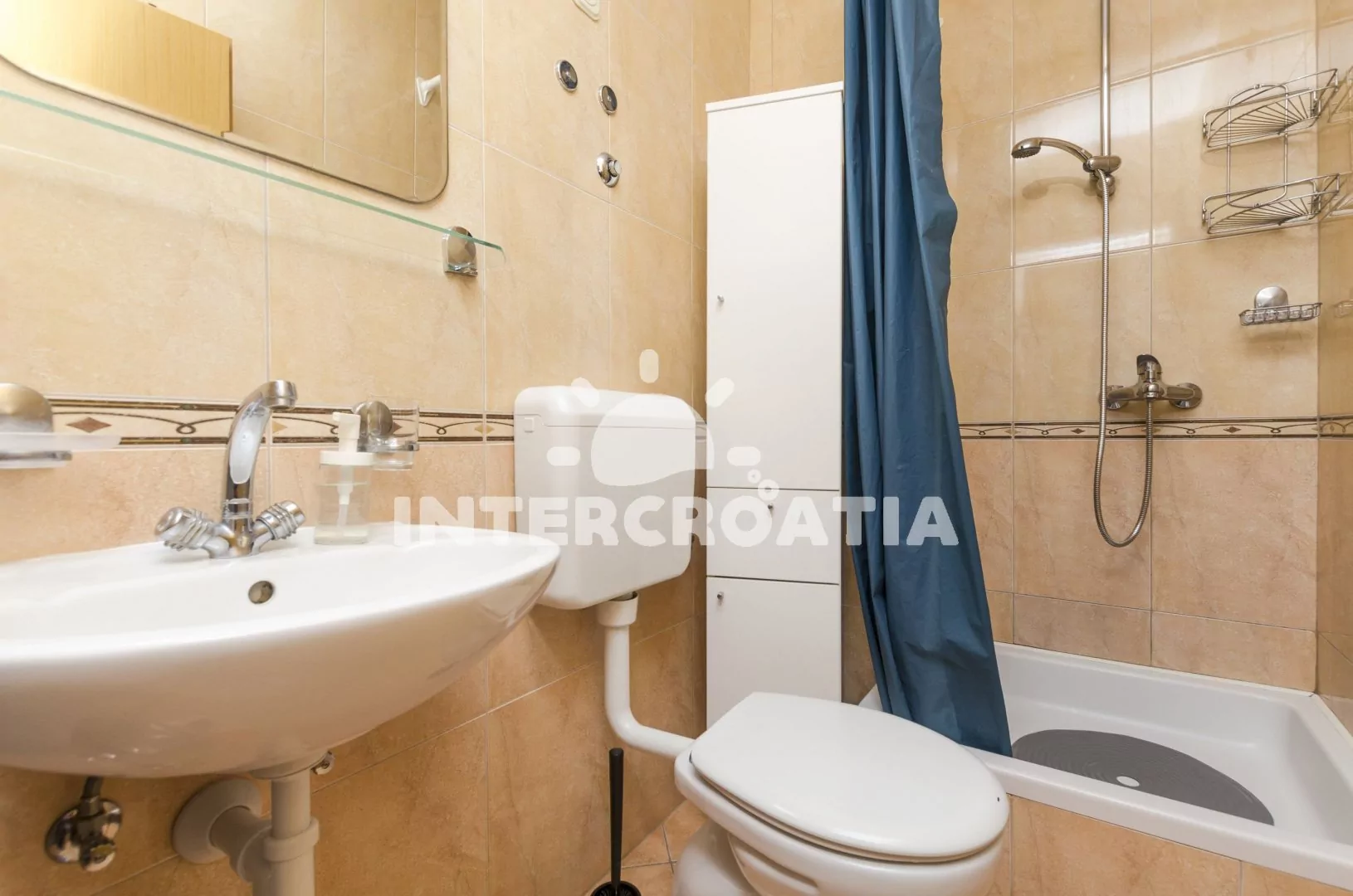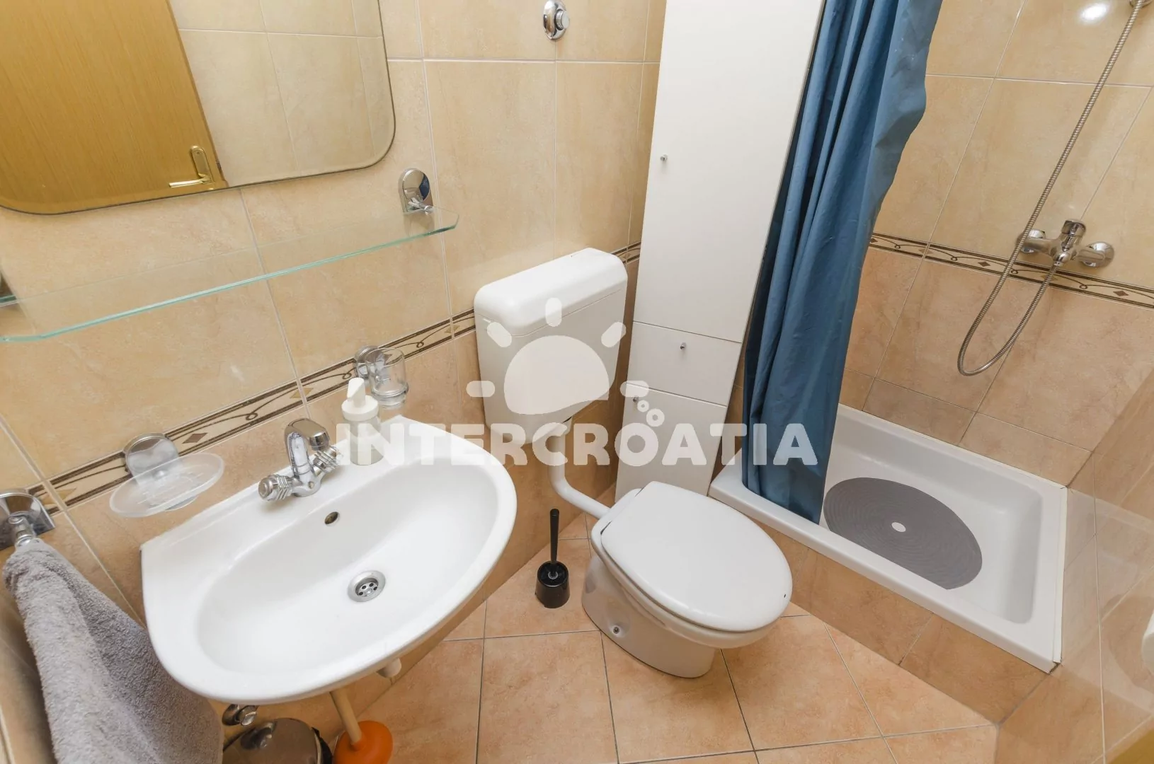 Apartmán (45 m2) s terasou a venkovním posezením se nachází v 1. patře domu a je vhodný pro 4 až 5 osob. Obývací místnost je spojena s kuchyní. Kuchyňská linka je vybavena varnou deskou, digestoří, vestavěnou troubou, rychlovarnou konvicí, nádobím a lednicí s mrazákem. Obývací místnost s jídelním stolem pro 4 osoby, televizí se satelitním programem, klimatizací a vstupem na terasu. První ložnice s dvoulůžkem. Druhá ložnice s dvoulůžkem, jedním jednolůžkem a vstupem na terasu. Koupelna se sprchovým koutem, umyvadlem, fénem a wc. Hostům je k dispozici parkování u objektu zdarma.