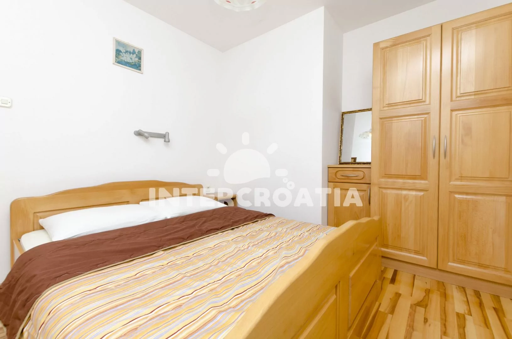 Vodice je vyhledávané severodalmátské letovisko, které nabízí bohaté turistické vyžití. Apartmánový dům se nachází 30 m od moře a oblázkové pláže Lovetovo. Pláž poskytuje klidné prostředí k odpočinku a celodennímu koupání. Pobřeží lemují borovice, u kterých najdete krásný chládek. Milovníci opalování naopak ocení betonové plochy, na kterých mohou pohodlně ležet. Po vydatném plavání neváhejte posedět v kavárnách a restauracích. Rodinám s dětmi doporučujeme navštívit oblíbenou oblázkovou pláž Hangar. Pláž má velmi pozvolný přístup do moře, který ocení všechny věkové kategorie. Podle vašeho přání si můžete užívat poklidný oddech nebo sportovní program. Zajímají-li vás historické stavby, navštivte obrannou věž Čarićev z 16. století, kostel Nalezení sv. Kříže a kostel sv. Kříže. Rádi poznáváte nové kultury a jejich zvyklosti? Pokud ano, zaručeně si užijete událost Vodické hry, slavnost Panny Marie Karmelské a akci Vodička fešta. Akvárium a muzeum námořní tradice přivítá turisty, kteří obdivují podmořský svět. Okolí letoviska vyzývá k pěším a cyklistickým výletům. Nádherný pohled na hory, vnitrozemí a nedaleké ostrovy vás nemine na vrcholu Okit. Výlet do Šibeniku slibuje krásné památky jako jsou katedrála sv. Jakuba, městské pevnosti, kostel sv. Jana Křtitele, Mořská brána a palác Orsiniů. Přírodní bohatství stojí za vidění v Národním parku Krka a Národním parku Plitvice.