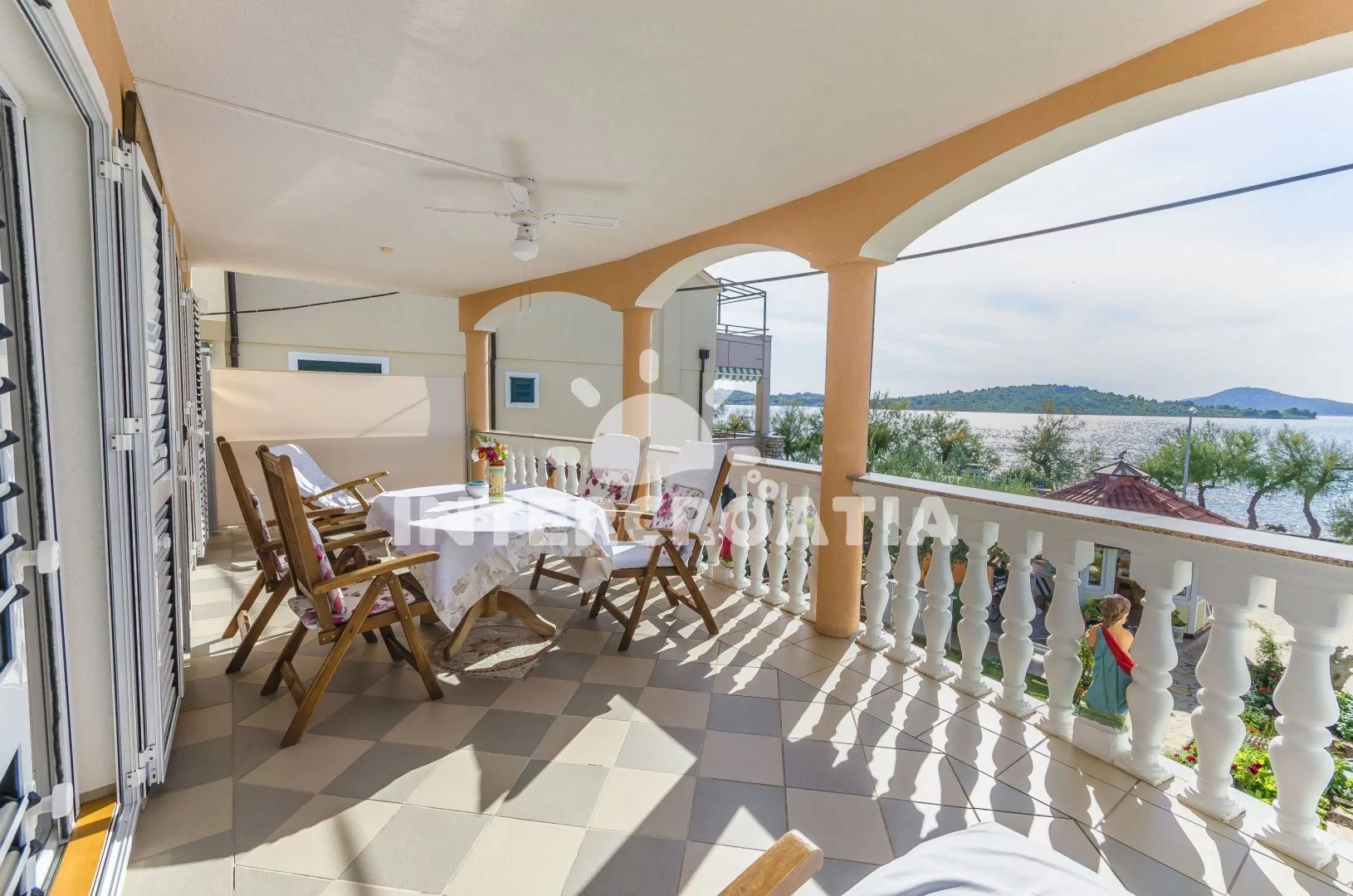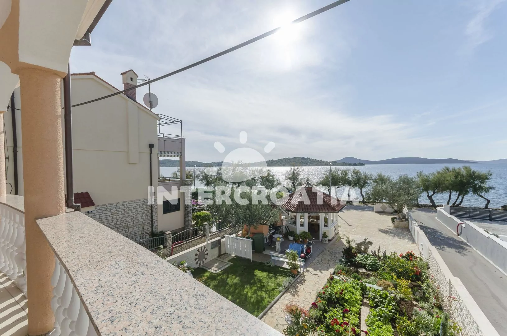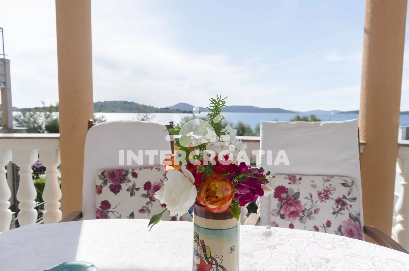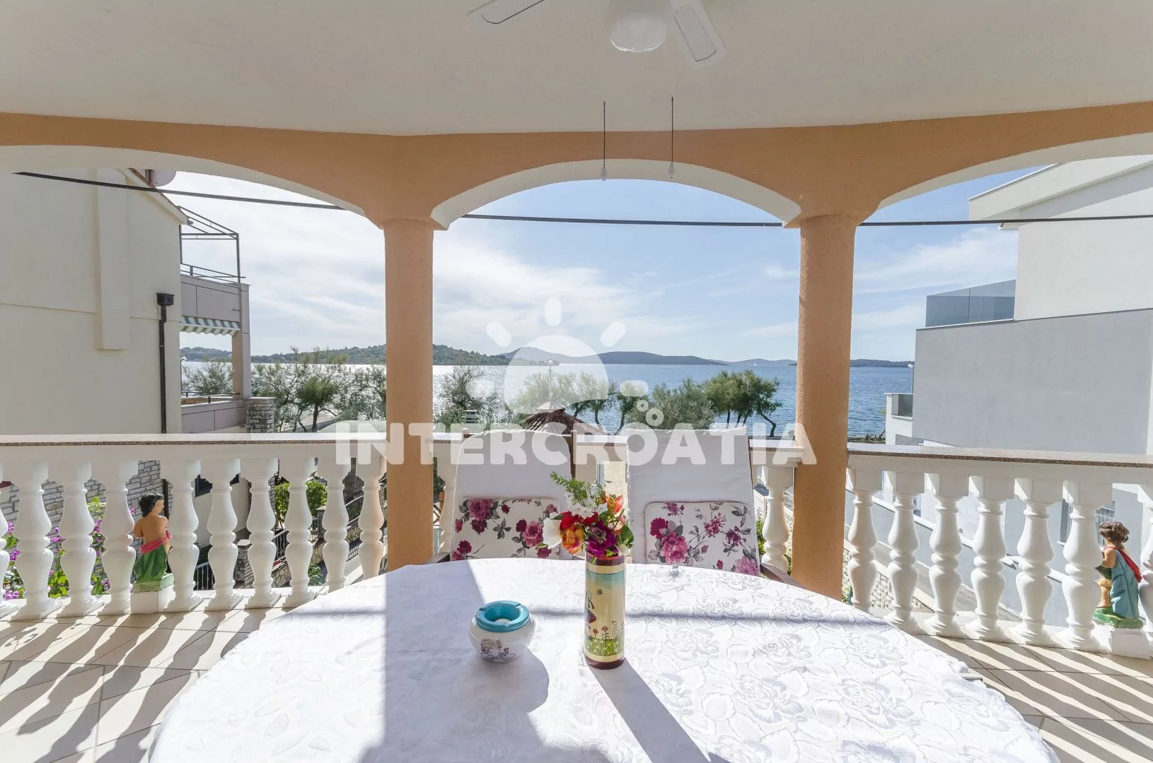 Skvěle umístěný dům v první linii u moře se nachází na okraji města Vodice. Apartmány jsou klimatizované a disponují lodžiemi s posezením. Od domu vyjdete přímo na oblázkové pláži. Dům má vlastní oplocený pozemek se zahrádkou, terasou s posezením a grilem. Parkovací místa u domu.