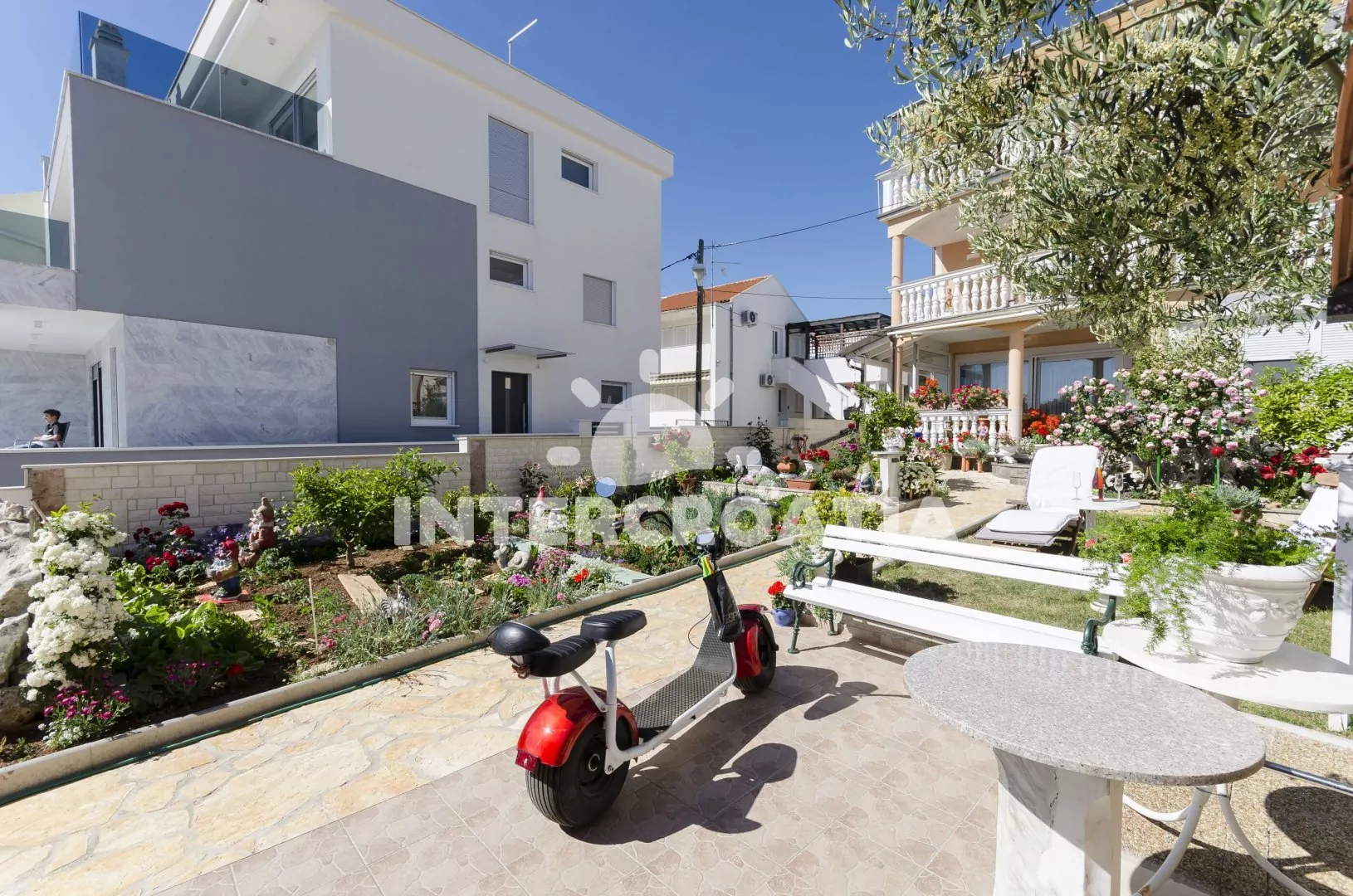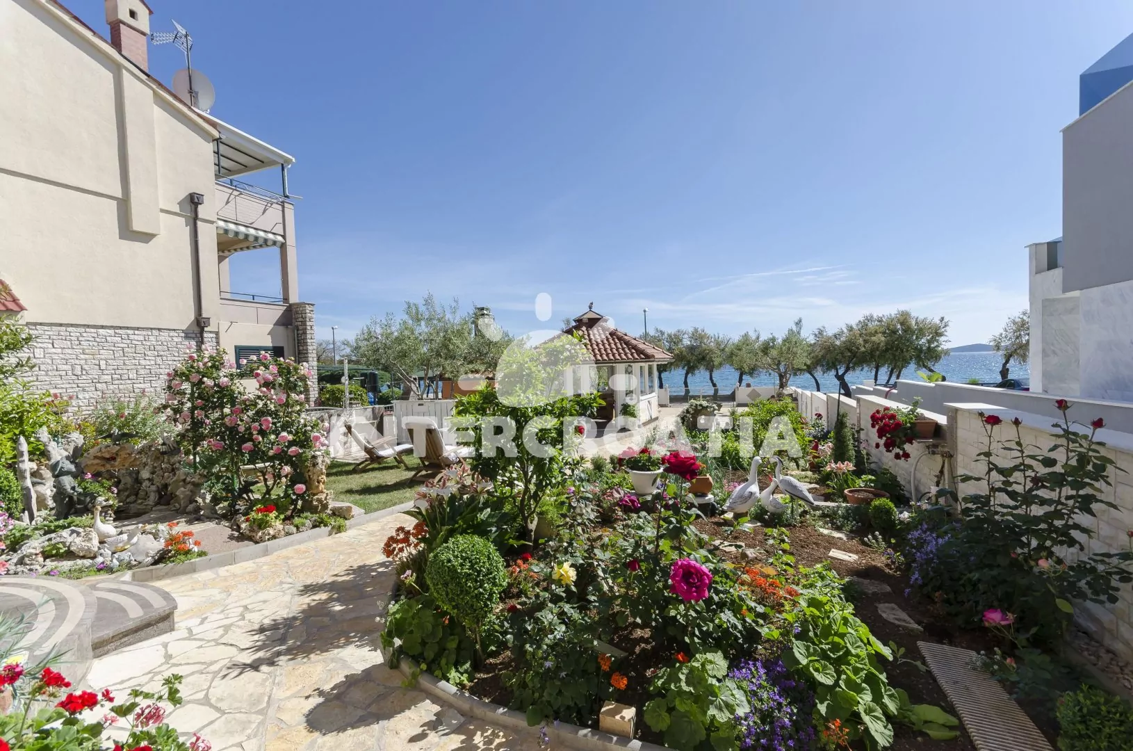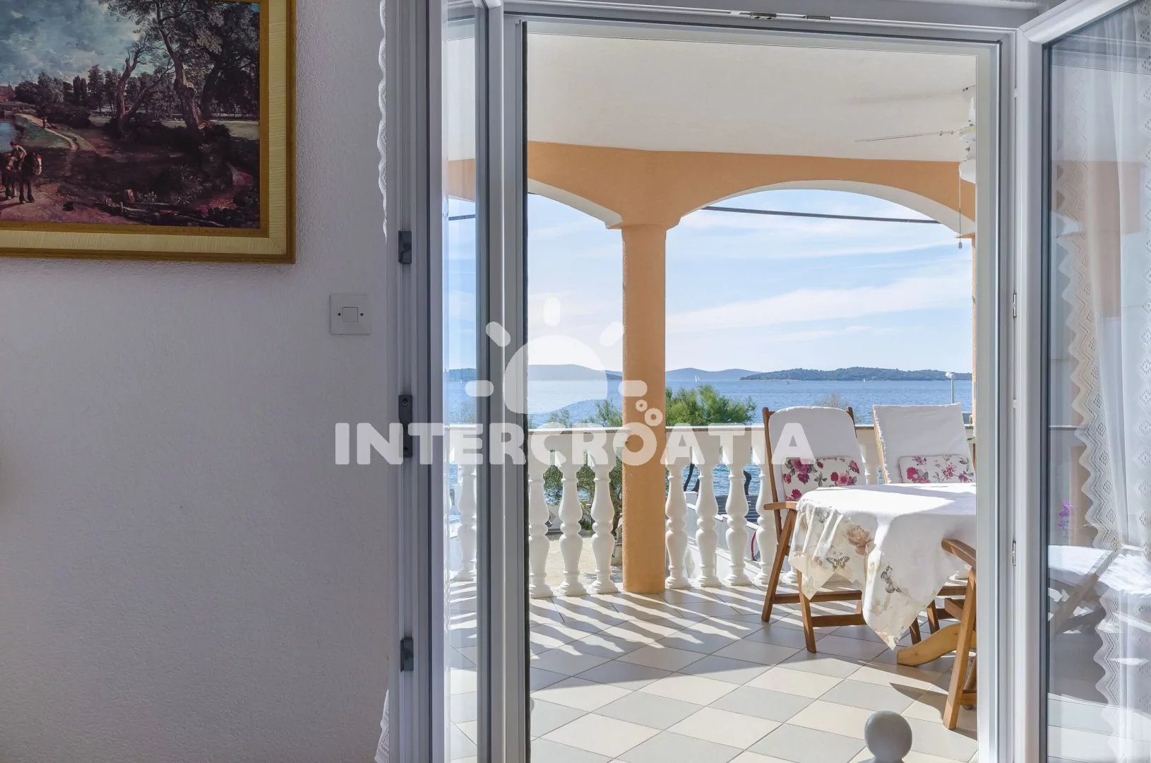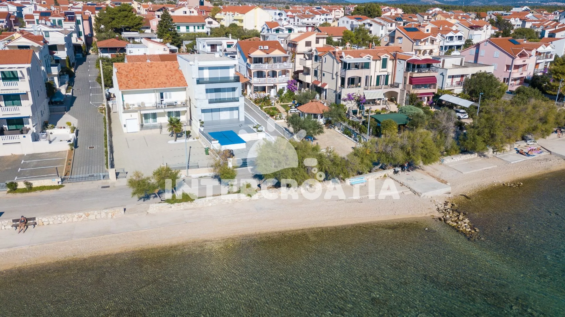 Skvěle umístěný dům v první linii u moře se nachází na okraji města Vodice. Apartmány jsou klimatizované a disponují lodžiemi s posezením. Od domu vyjdete přímo na oblázkové pláži. Dům má vlastní oplocený pozemek se zahrádkou, terasou s posezením a grilem. Parkovací místa u domu.