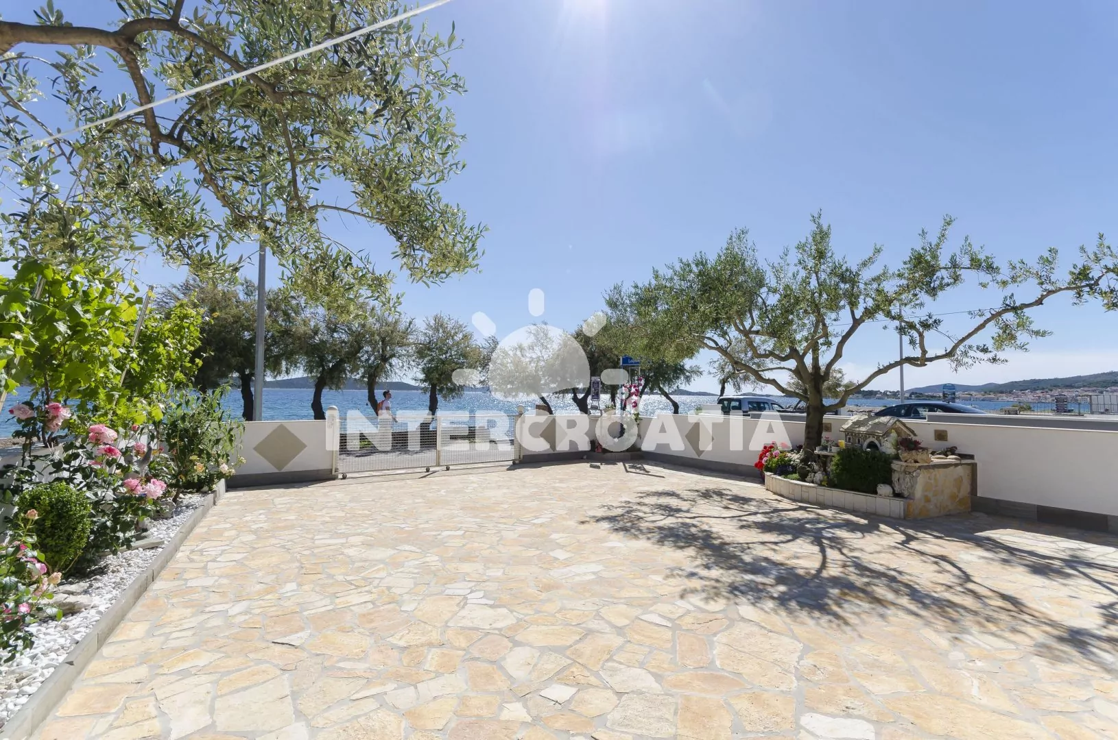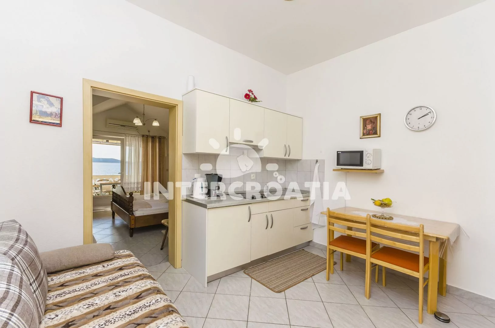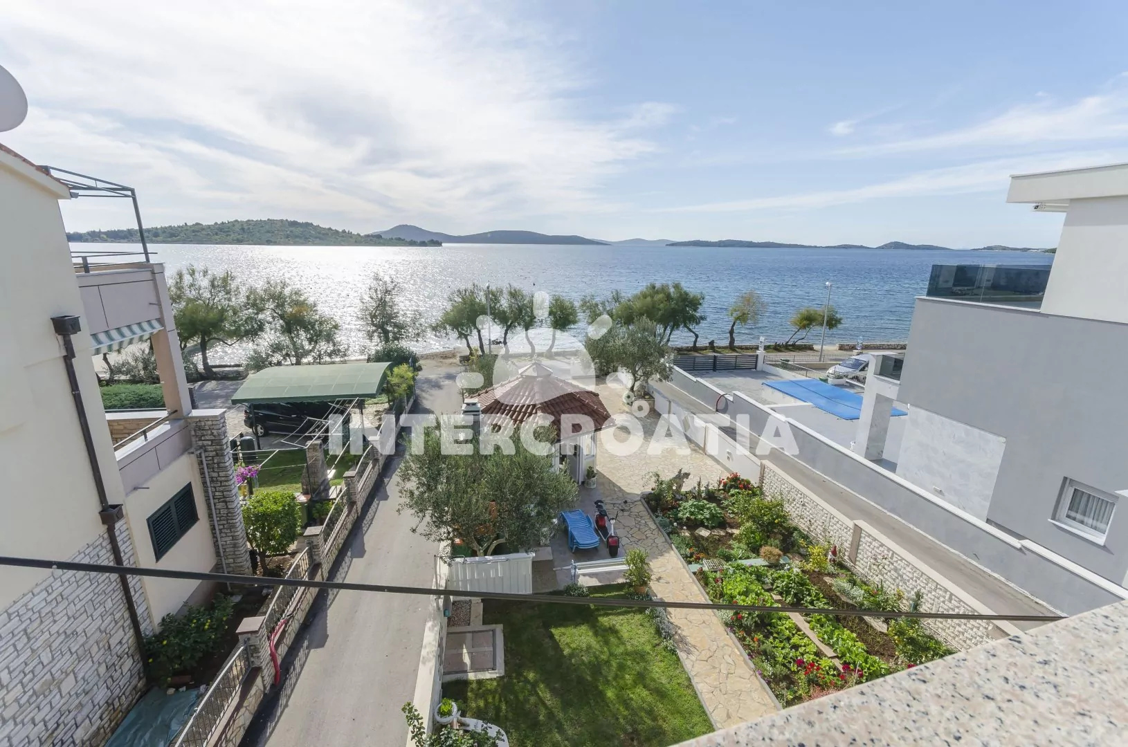 Vzdálenosti: Moře a oblázková pláž 30 m, centrum 1,3 km, tenis 180 m, restaurace 200 m, bar 300 m, supermarket, veřejná doprava, půjčovna motorových člunů 500 m, půjčovna cyklistických kol 600 m, směnárna, potápění, přístav 1 km, banka 1,1 km, ambulance, lékárna, pošta 1,3 km, čerpací stanice 1,2 km, diskotéka 1,5 km, letiště 69 km, trajekt 80 km.
