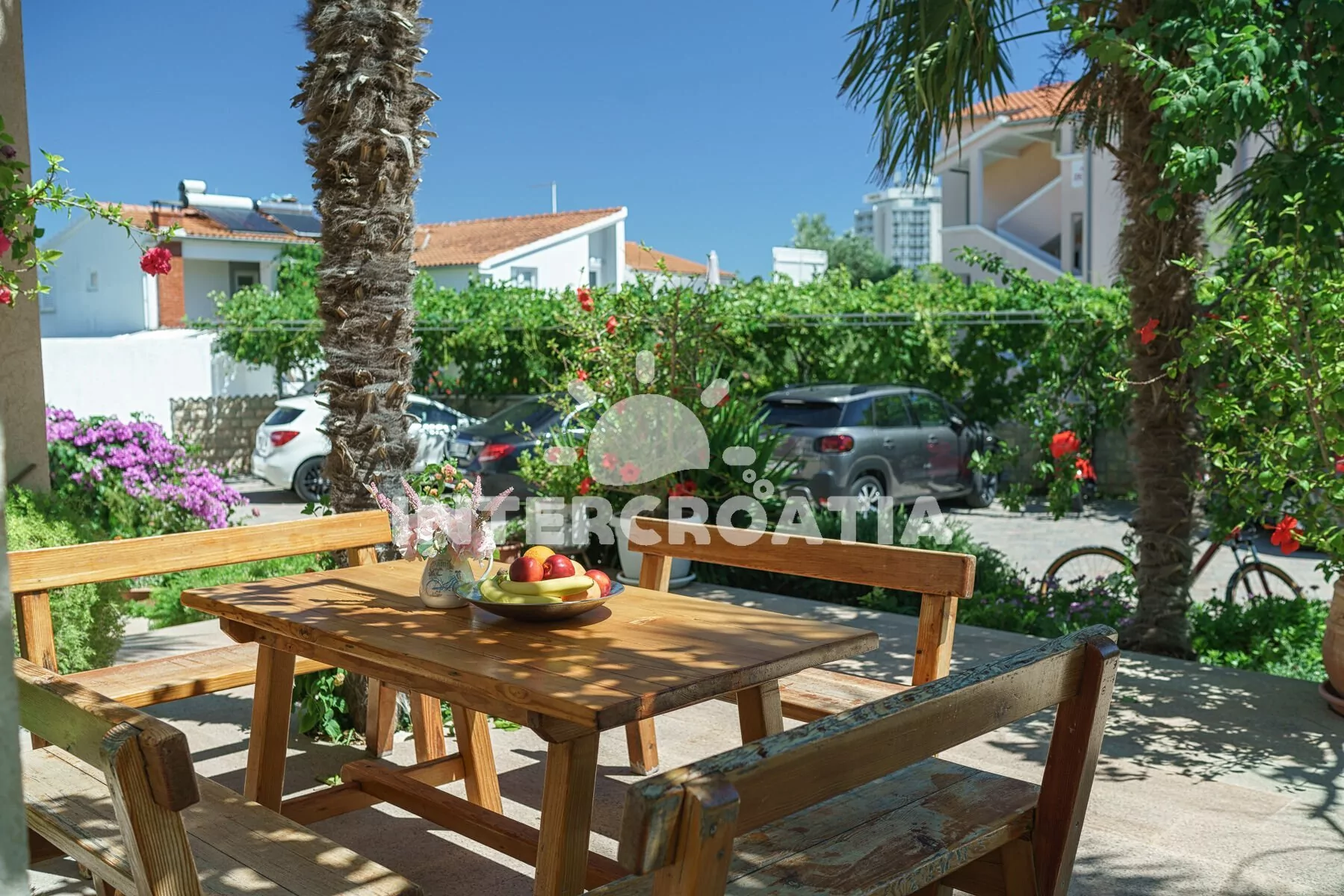 Vzdálenosti: Moře a oblázková pláž 260 m, centrum 400 m, směnárna 150 m, restaurace, bar 200 m, supermarket 250 m, pošta 700 m, ambulance, lékárna, banka 900 m, trajekt, letiště 65 km.
