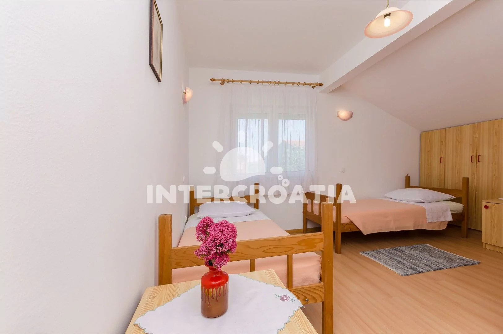 Velmi dobře umístěný apartmánový domek v klidné ulici města Vodice, pouze 200 m pěší chůzí od moře a oblázkové pláže. Dům nabízí ubytování ve 2 klimatizovaných apartmánech s lodžiemi a venkovním posezením. K dispozici zahrádka s terasou a zděným grilem. Parkovací místa u objektu.
