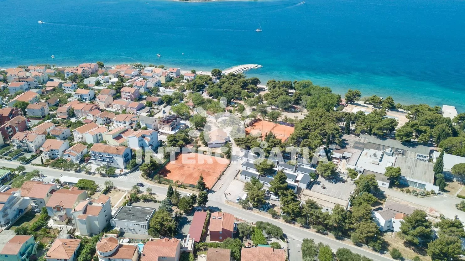 Vzdálenosti: Moře a oblázková pláž 290 m, tenis 80 m, supermarket 150 m, veřejná doprava, bar 250 m, restaurace 300 m, směnárna 500 m, čerpací stanice 950 m, centrum, banka, lékárna, ambulance 1 km, letiště, trajekt 65 km.