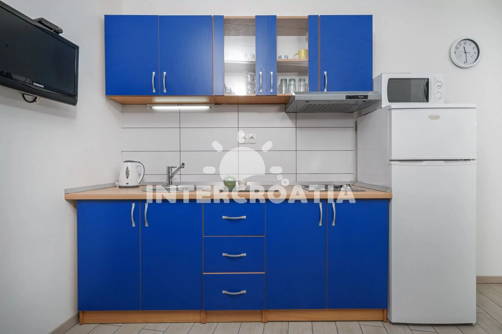 Velmi dobře umístěný apartmánový dům v blízkosti centra města a s krátkou vzdáleností k moři. Menší oblázková pláž je 250 m pěší chůzí a větší oblázkovo-písčitá pláž "Plava" je 300 m pěší chůzí. Dům nabízí ubytování ve 3 moderně zařízených a klimatizovaných apartmánech s lodžiemi. Parkovací místa pro automobily u domu.
