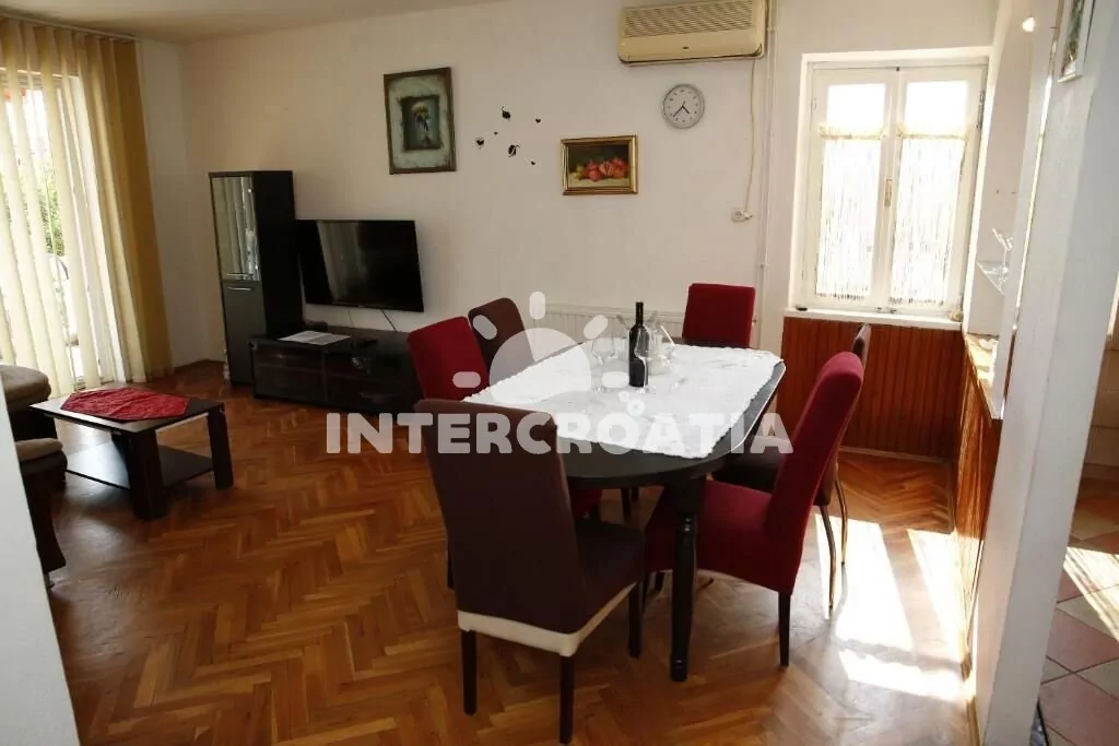 Apartmán (70 m2) s terasou a venkovním posezením se nachází v přízemí domu. Apartmán má 2 ložnice a je vhodný pro 4 až 5 osob. Obývací pokoj je spojený s kuchyní. Kuchyňská linka je vybavena…