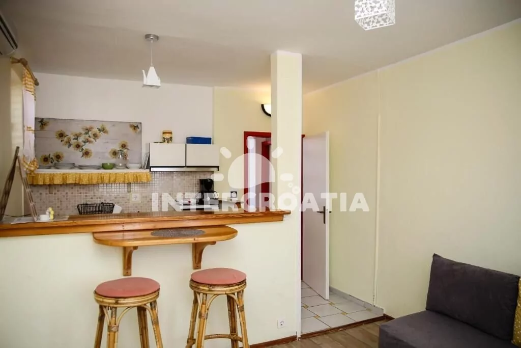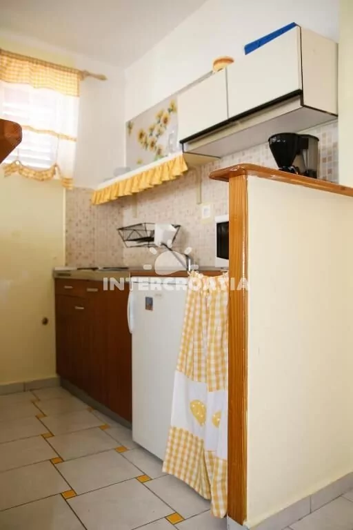 Vzdálenosti: Moře a oblázková pláž 210 m, supermarket 30 m, restaurace 300 m, centrum 350 m, banka, směnárna, pošta, bar 500 m, přístav 650 m, ambulance, lékárna 850 m, veřejná doprava 950 m, čerpací stanice 2 km, trajekt 60 km, letiště 62 km.
