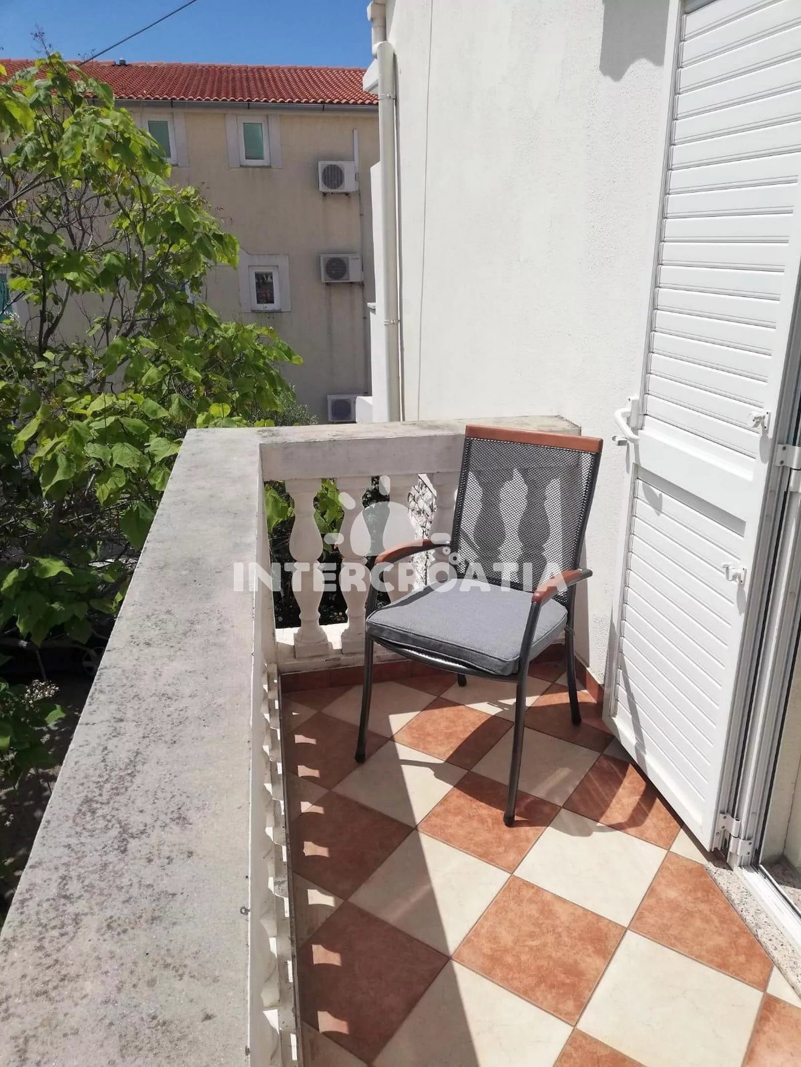 Apartmán (75 m2) s balkonem, venkovním posezením a částečným výhledem na moře se nachází v 1. patře domu. Apartmán má 2 ložnice, 2 koupelny a je vhodný pro až 4 osoby. Obývací pokoj je spojený s kuchyní. Kuchyňská linka je vybavena sklokeramickou varnou deskou, digestoří, vestavěnou troubou, myčkou na nádobí, rychlovarnou konvicí, kávovarem, toustovačem, nádobím a lednicí s mrazákem. Obývací pokoj s jídelním stolem, pohovkou, televizí se satelitním programem a rádiem. Chodba s klimatizací, vstupy do ložnic a koupelen. První i druhá ložnice je vybavena vždy s jedním dvoulůžkem a vstupem na balkon. První koupelna se sprchovým koutem, umyvadlem, fénem, pračkou a wc. Druhá koupelna se sprchovým koutem, umyvadlem a wc. Hostům je k dispozici parkování u objektu zdarma.