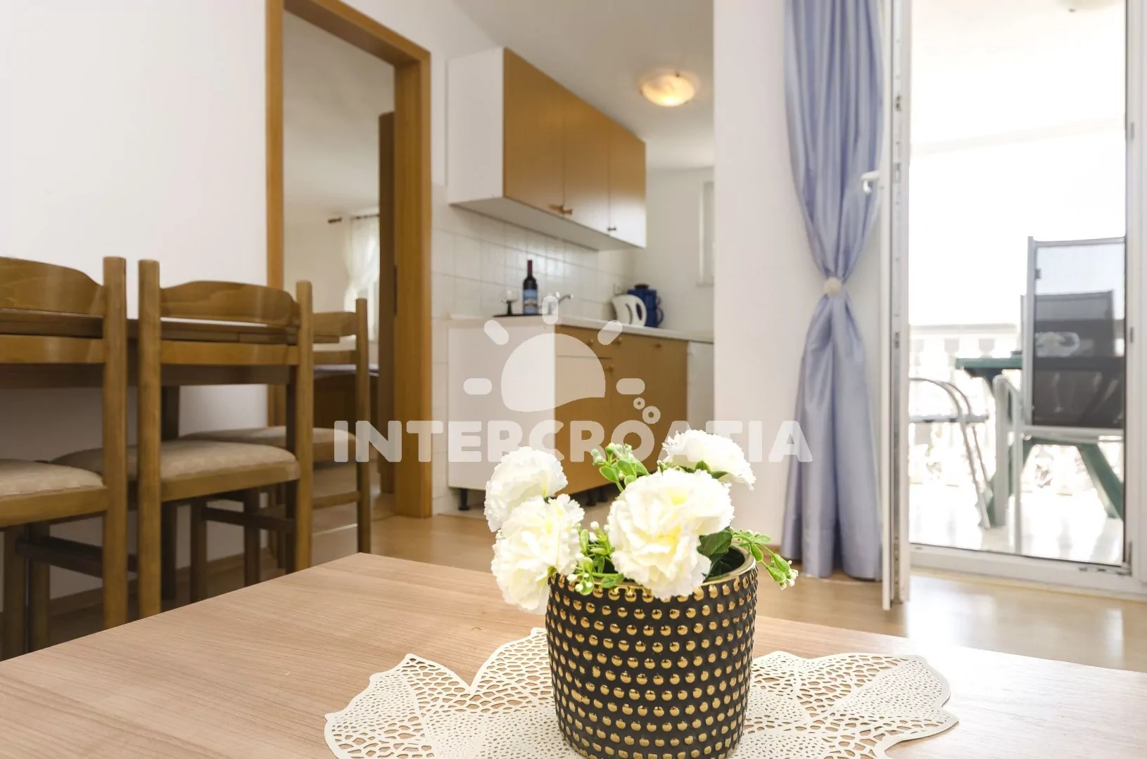 Vzdálenosti: Moře a oblázková pláž 500 m, centrum 600 m, supermarket, ambulance, lékárna a směnárna 300 m, restaurace a bar 400 m, letiště (Zadar) 65 km.